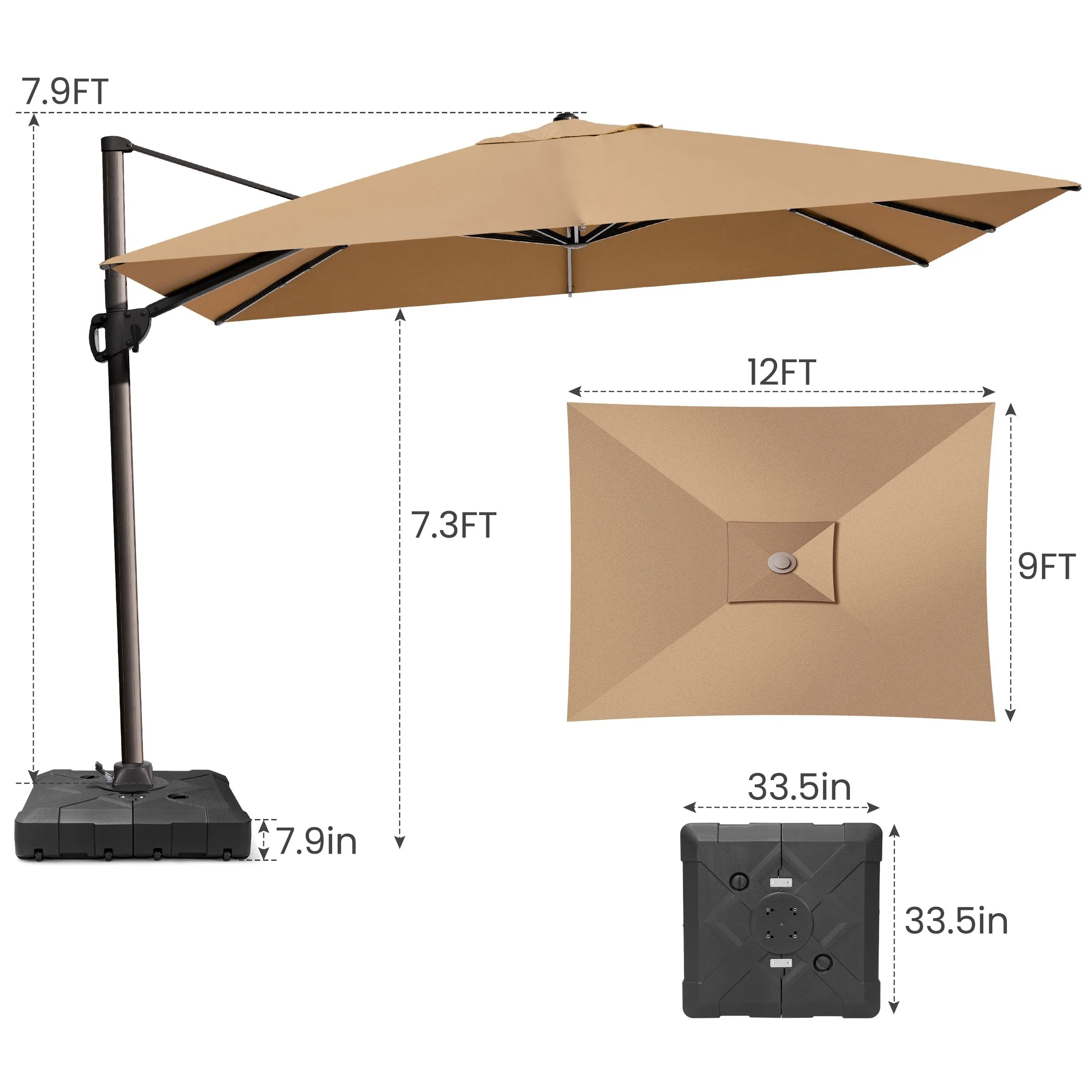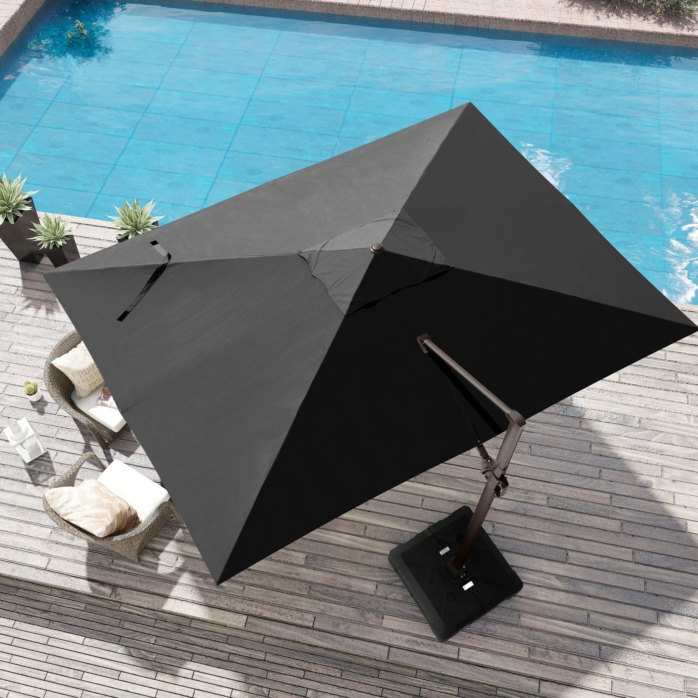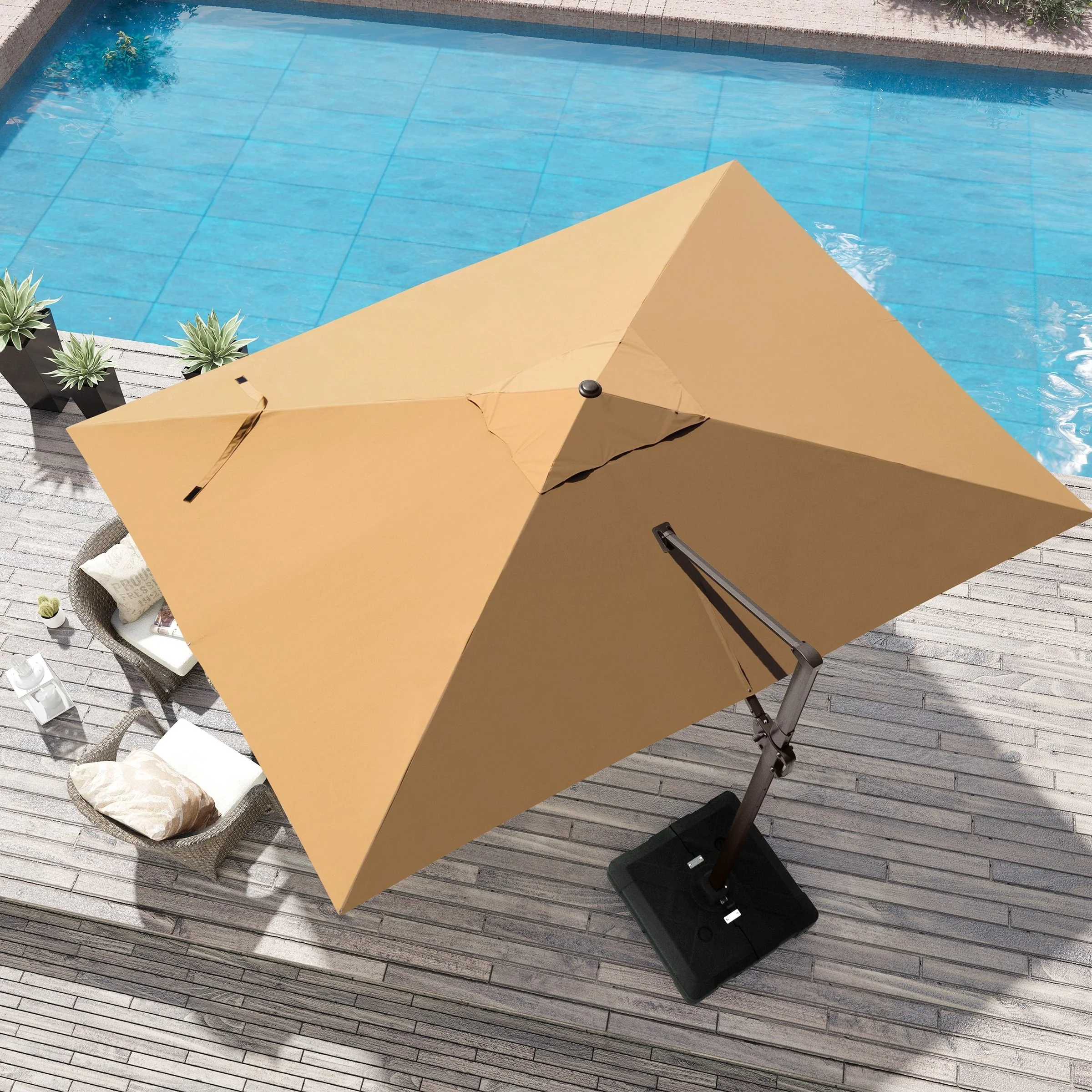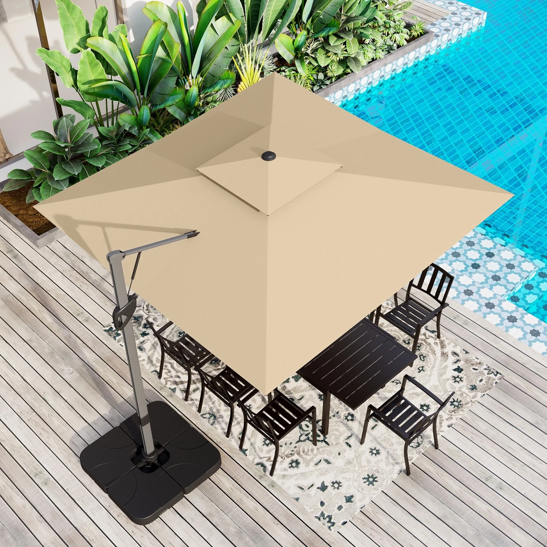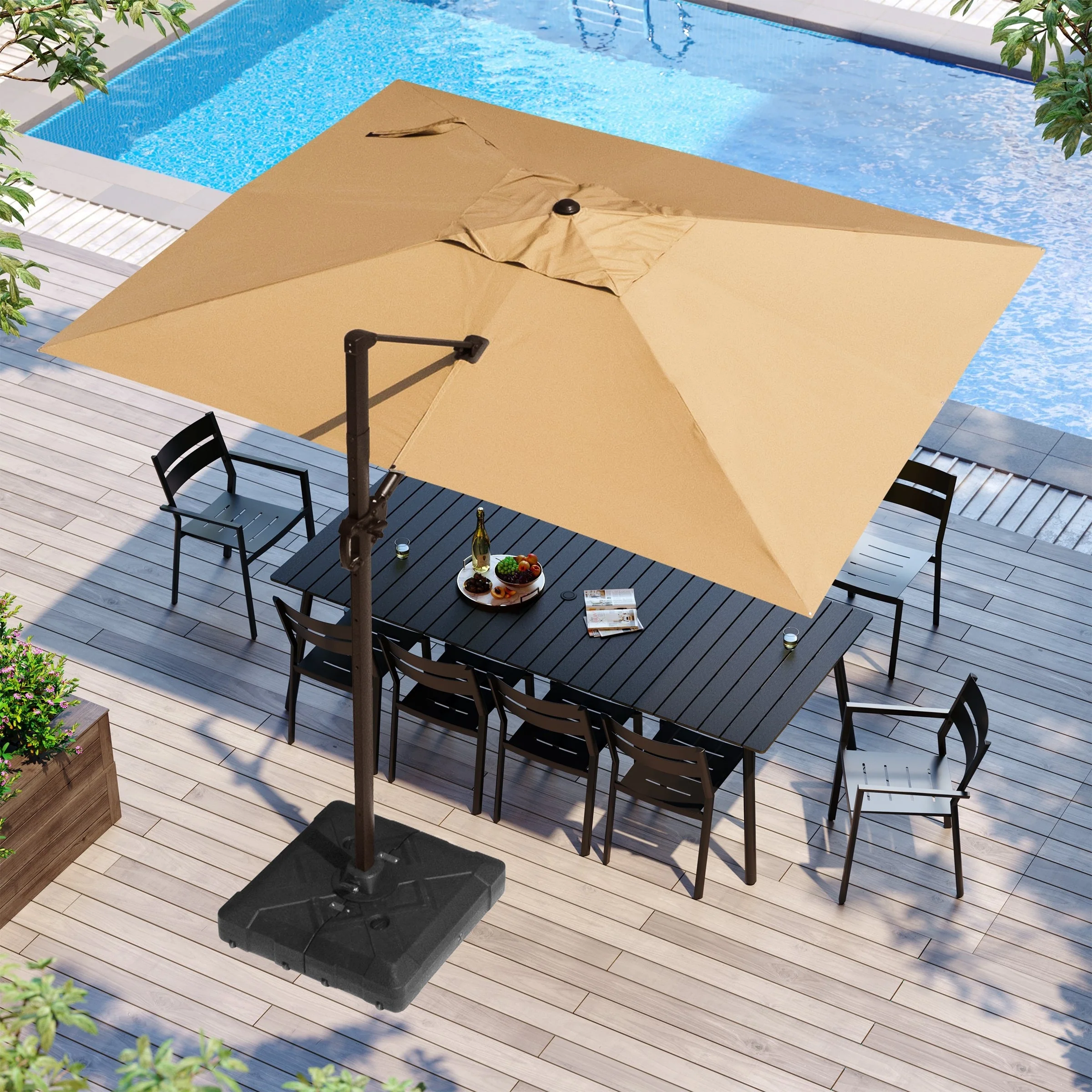 MAISON ARTS 10 FT Automatic Hydraulic Cantilever Umbrella Aluminum Pole 360 Degree Rotation with Weighted Base Included