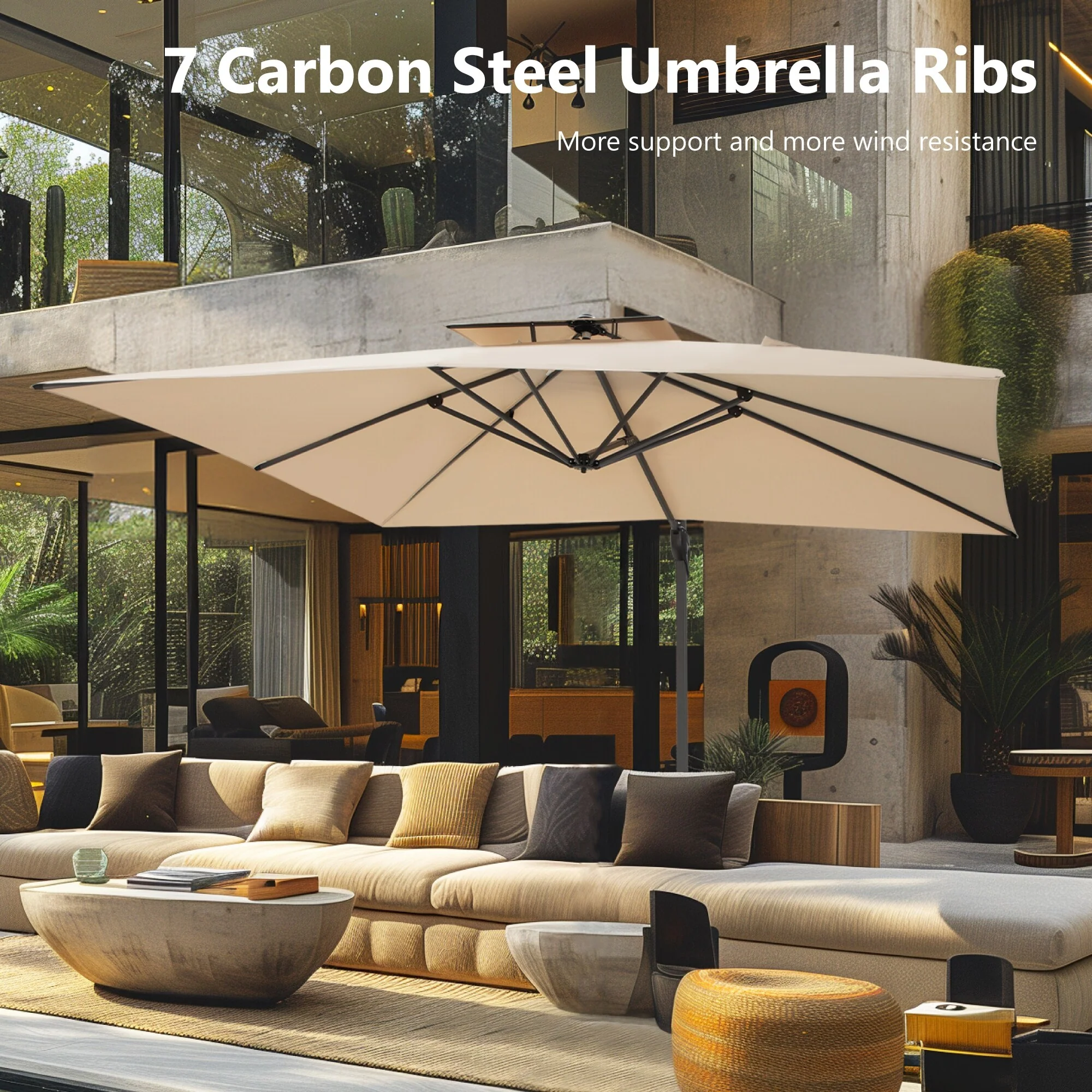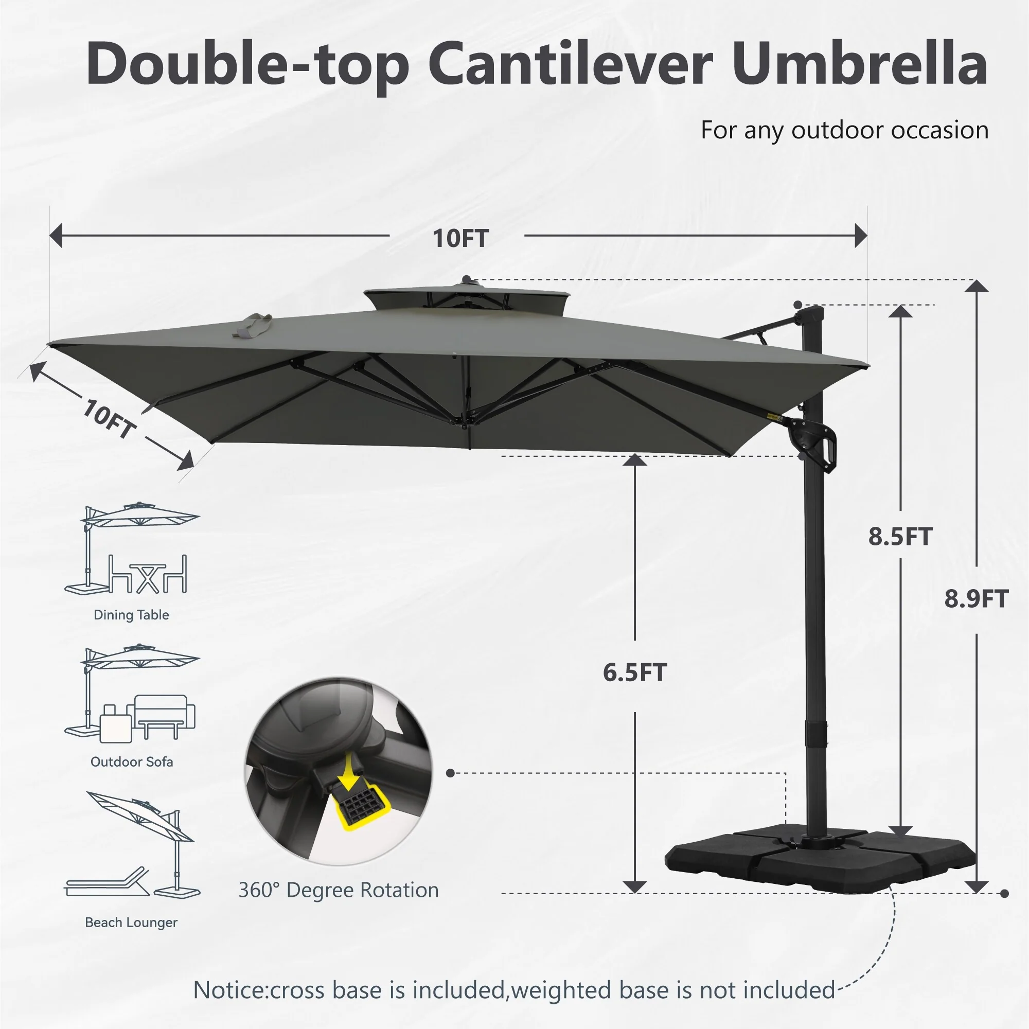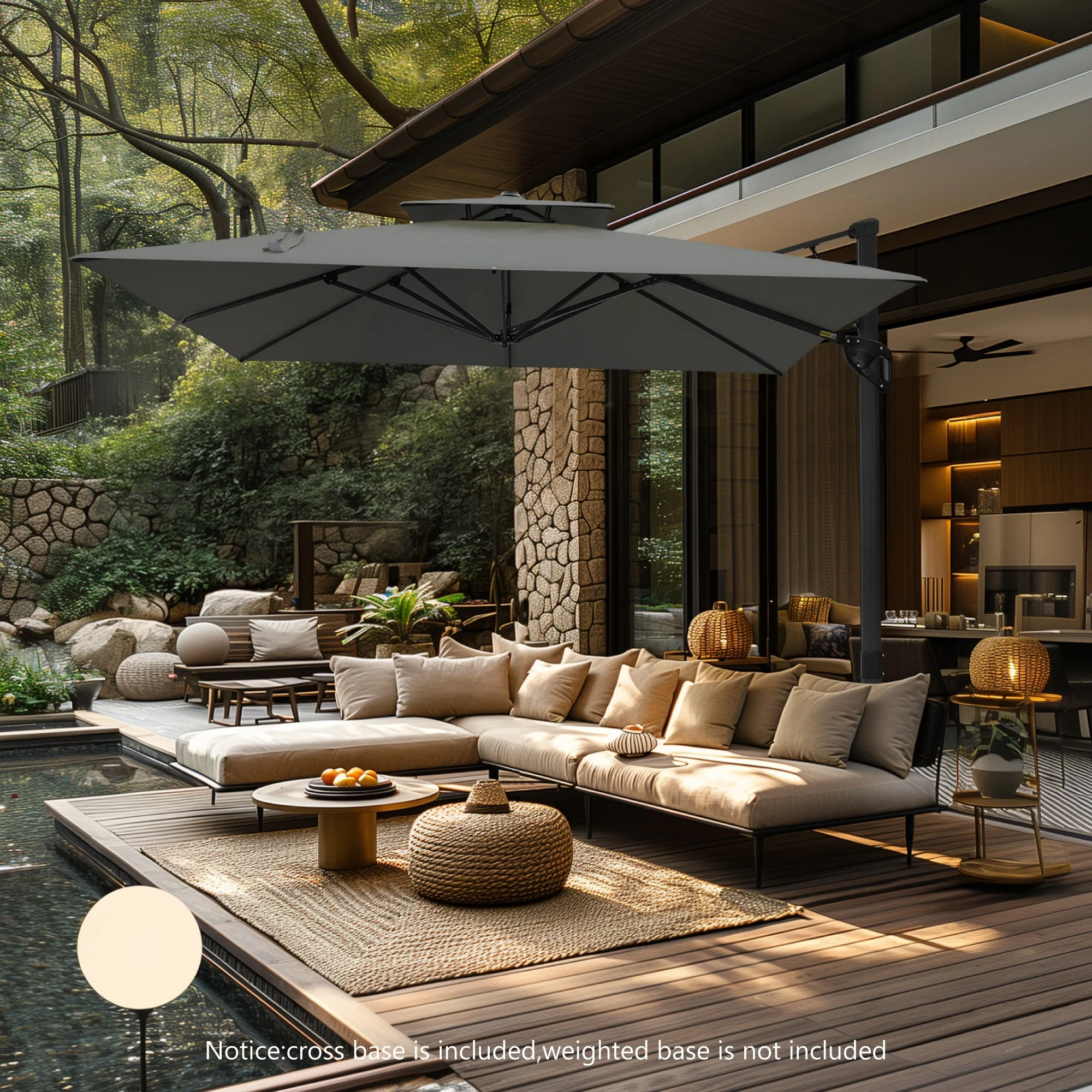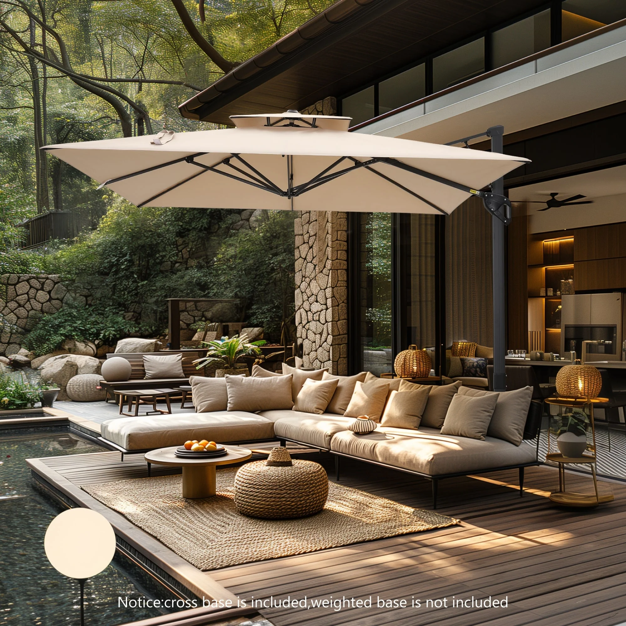 MAISON ARTS 10 FT Automatic Hydraulic Cantilever Umbrella Aluminum Pole 360 Degree Rotation with Weighted Base Included