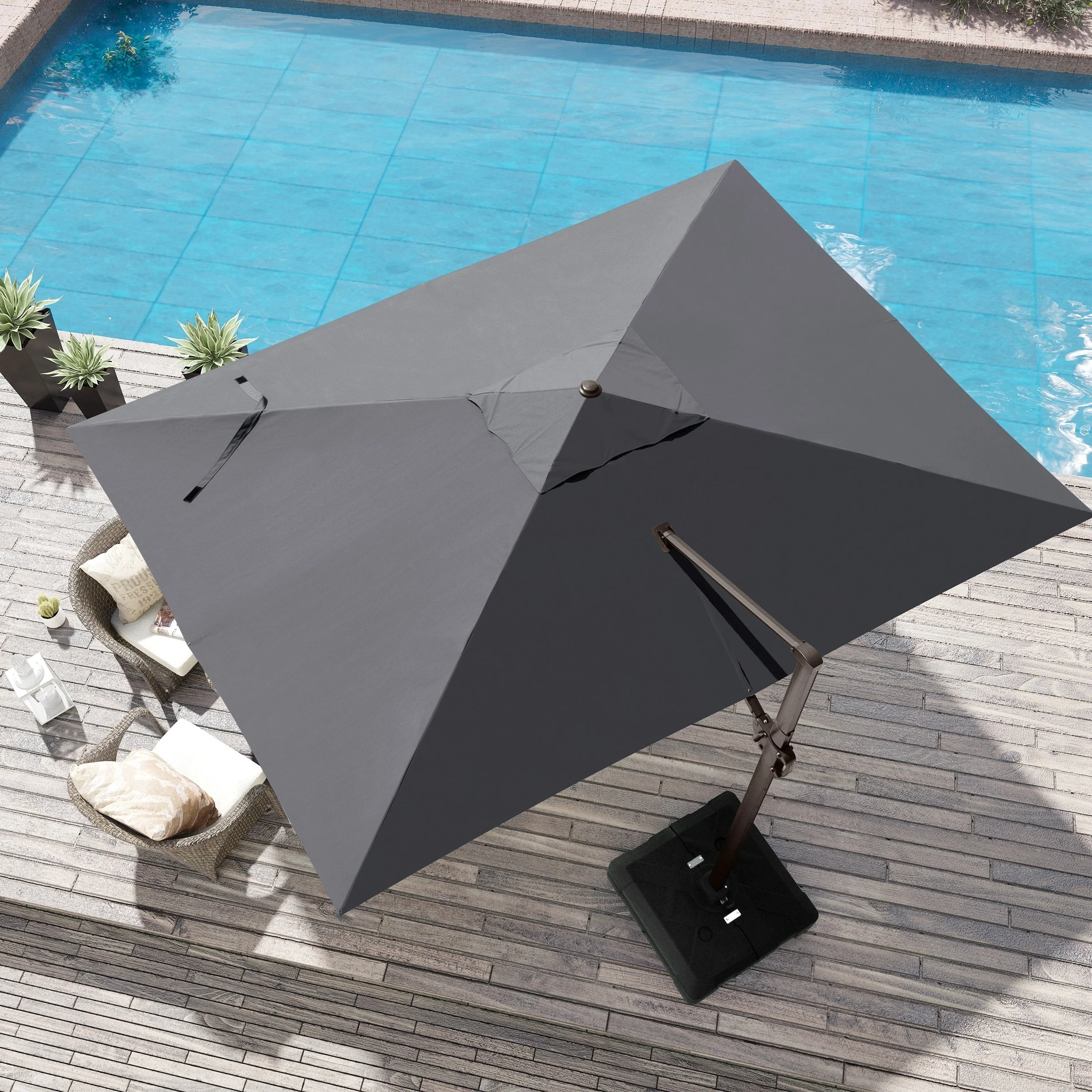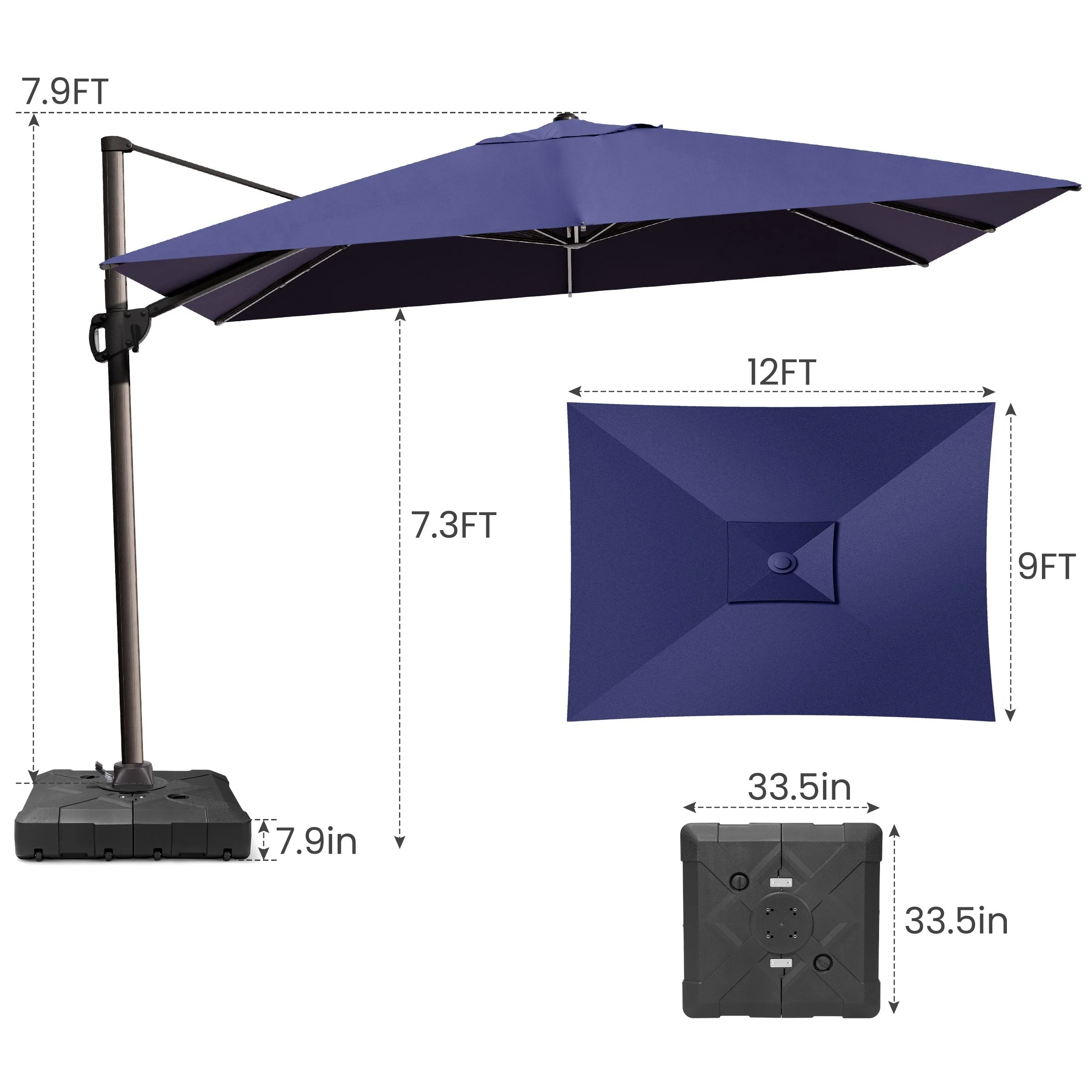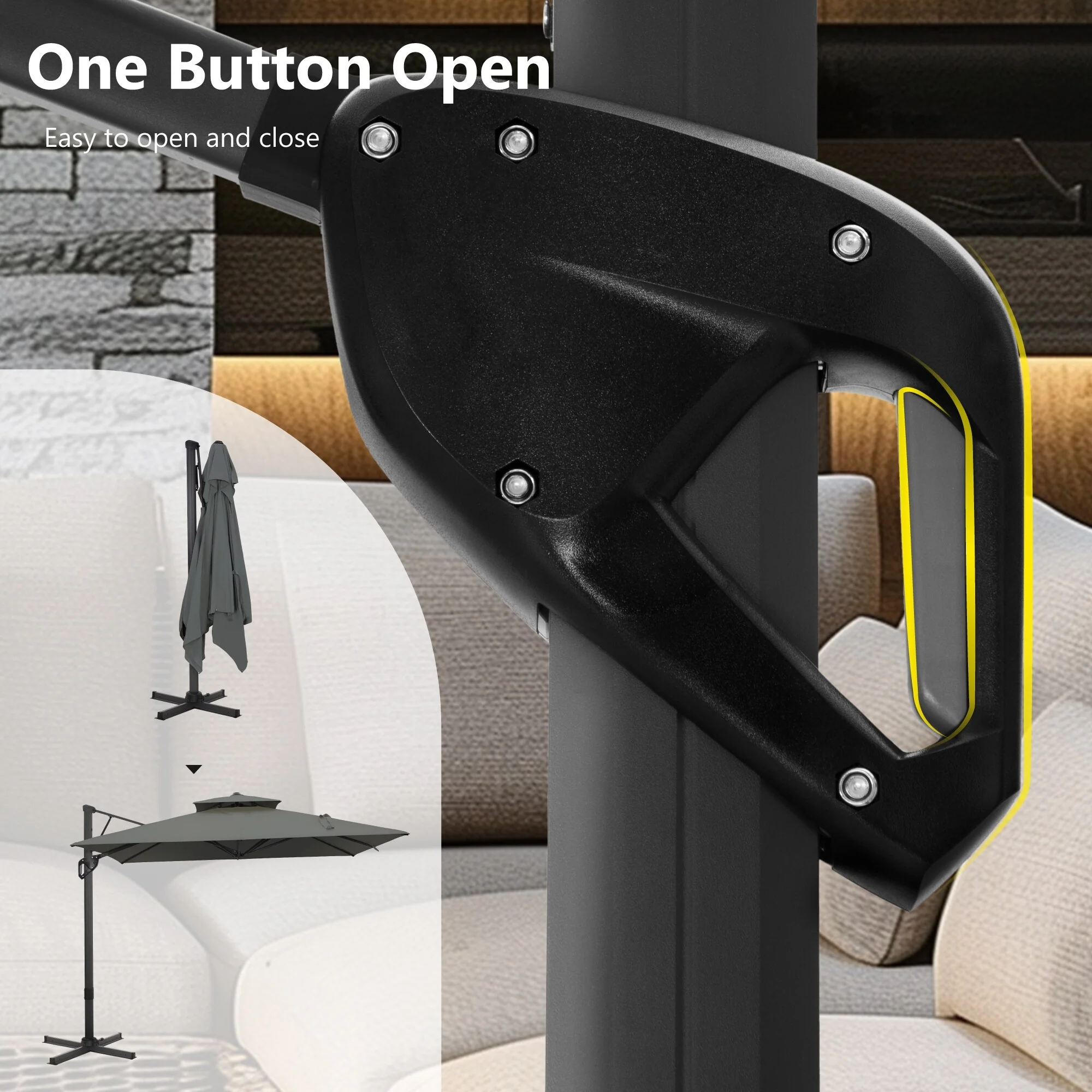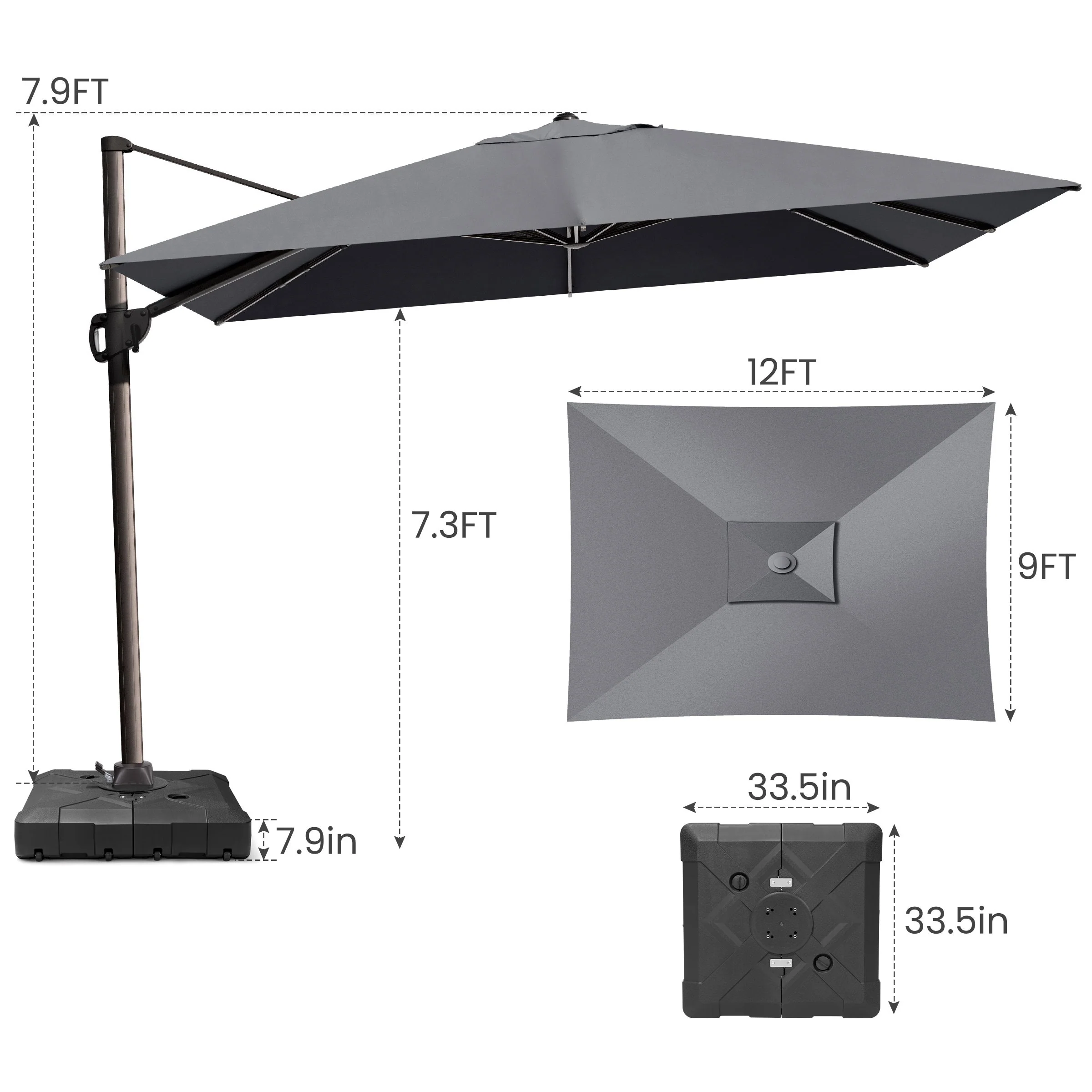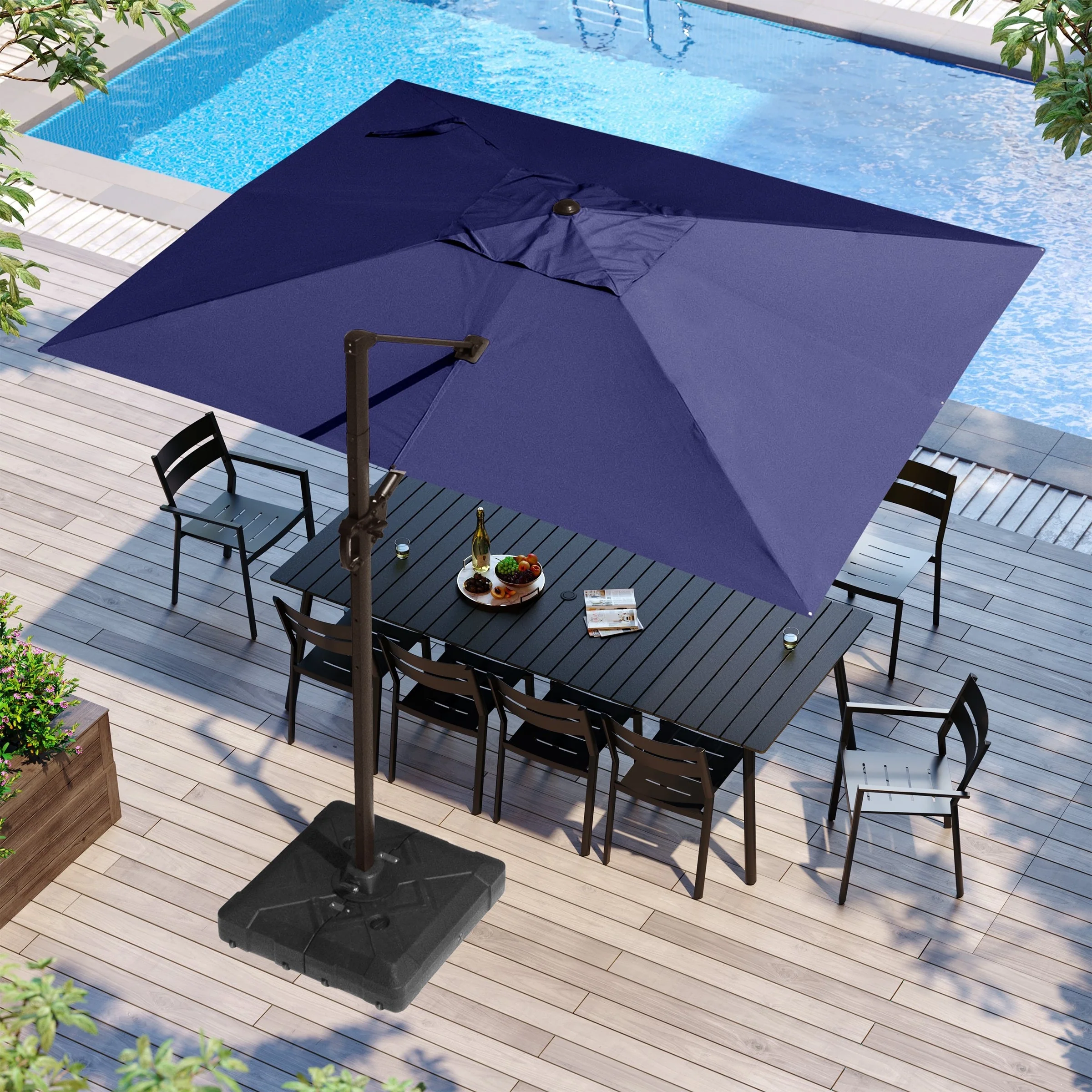 MAISON ARTS 10 FT Automatic Hydraulic Cantilever Umbrella Aluminum Pole 360 Degree Rotation with Weighted Base Included