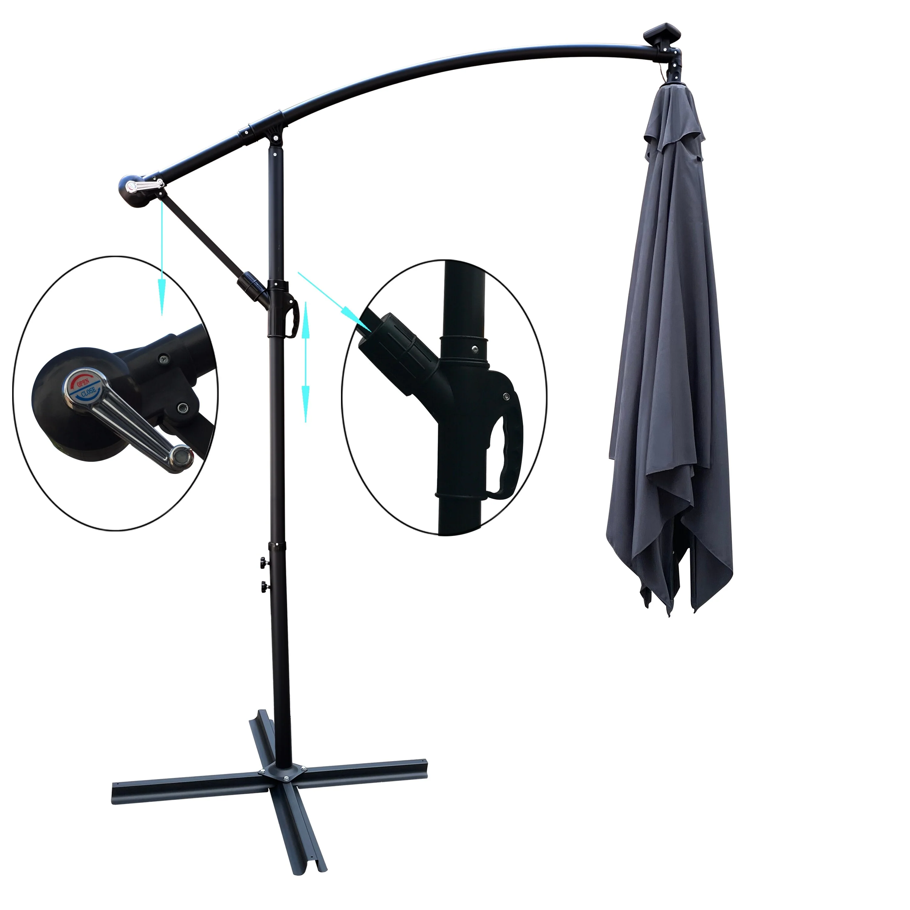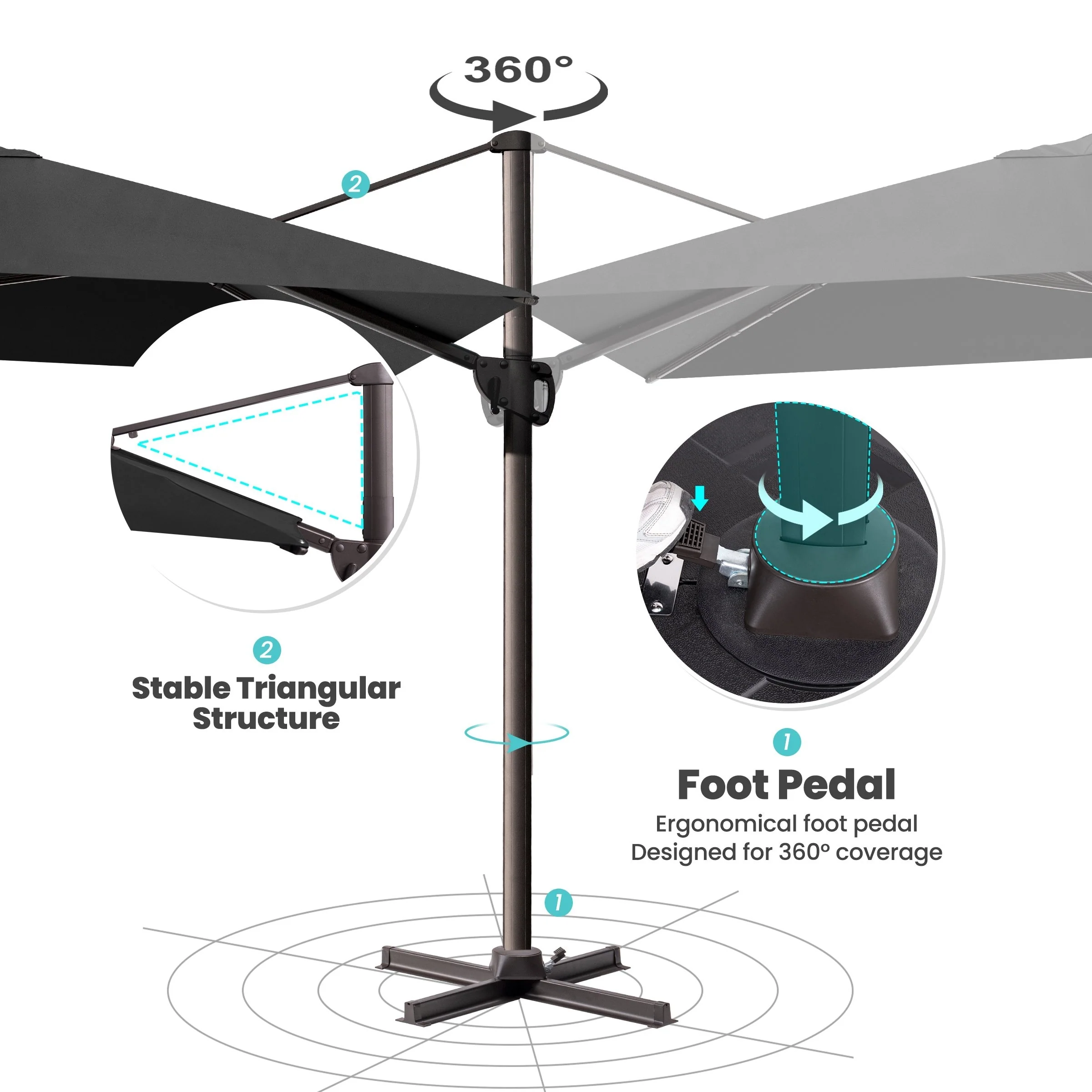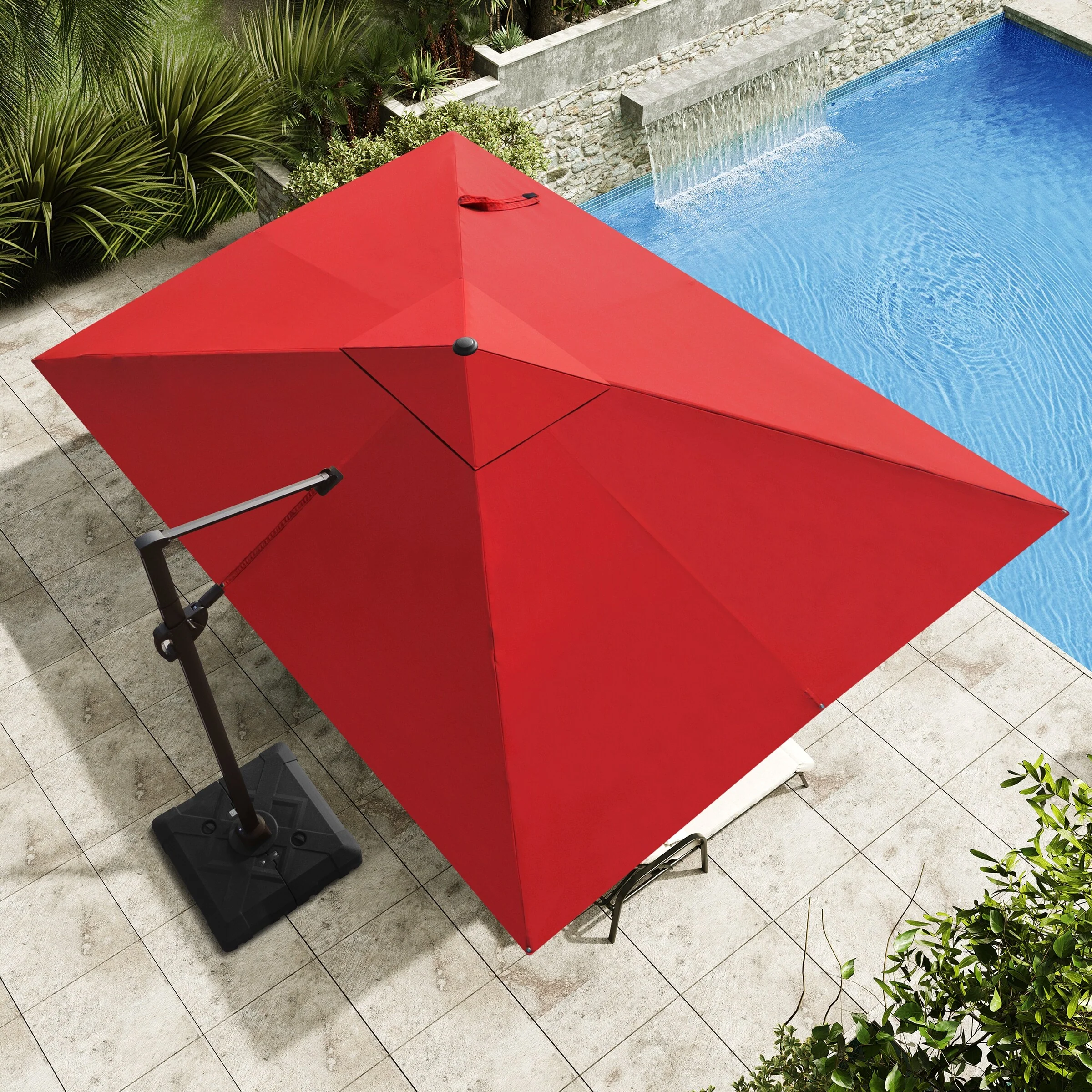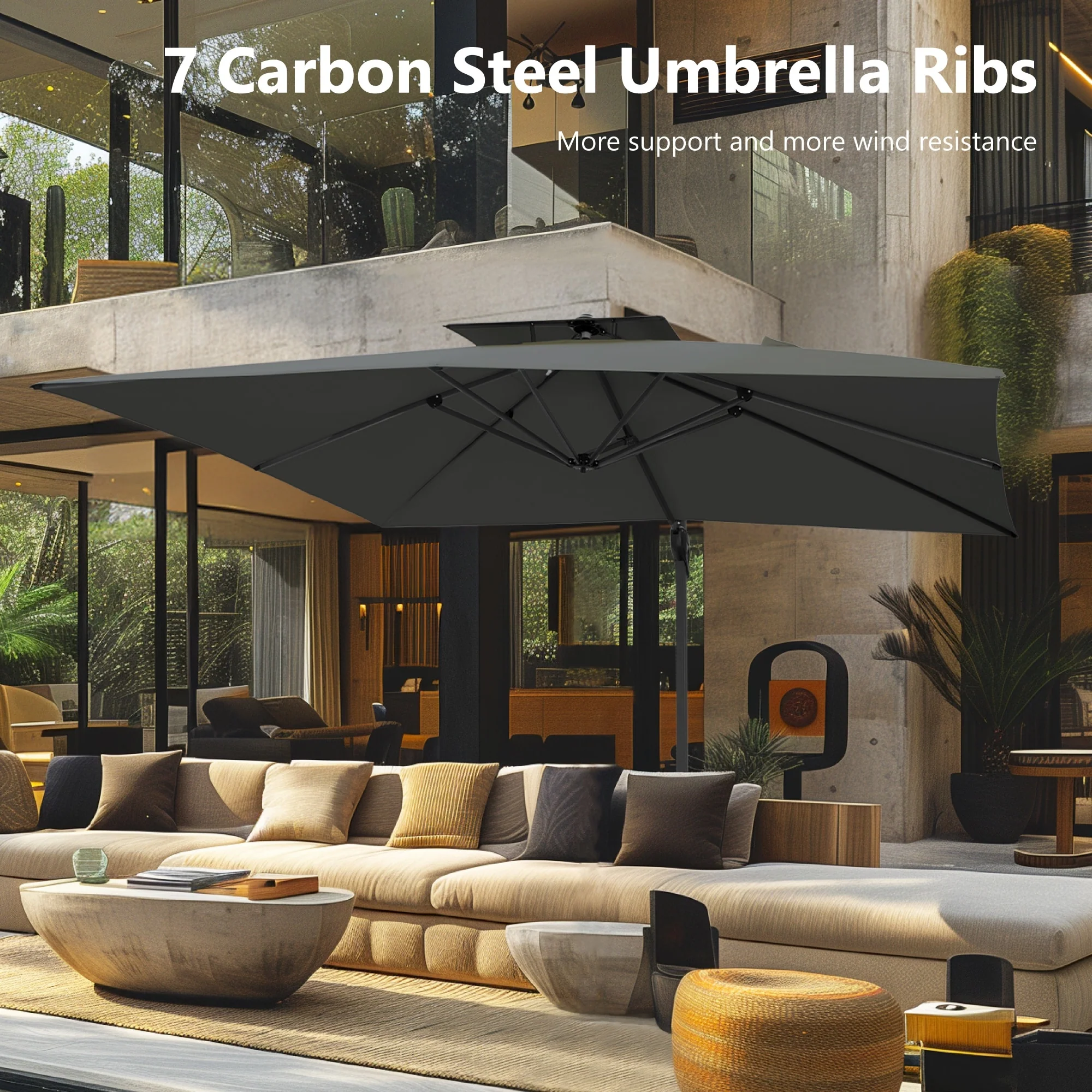 MAISON ARTS 10 FT Automatic Hydraulic Cantilever Umbrella Aluminum Pole 360 Degree Rotation with Weighted Base Included