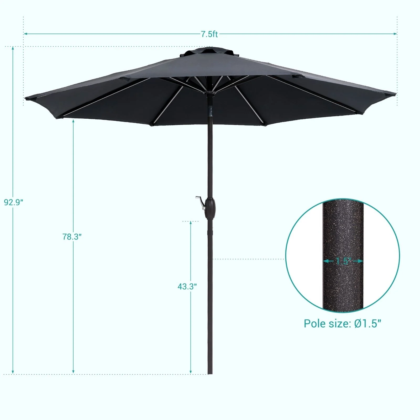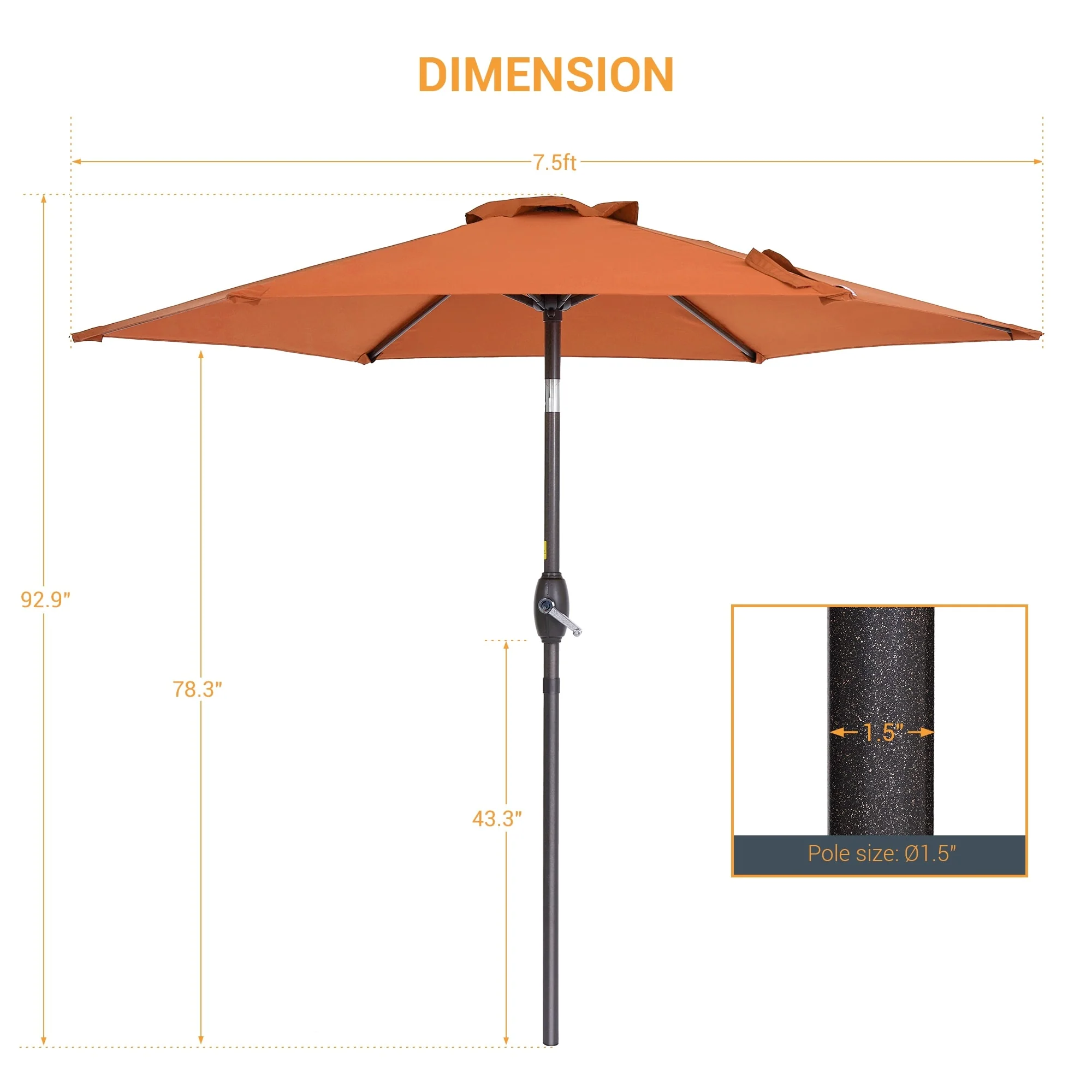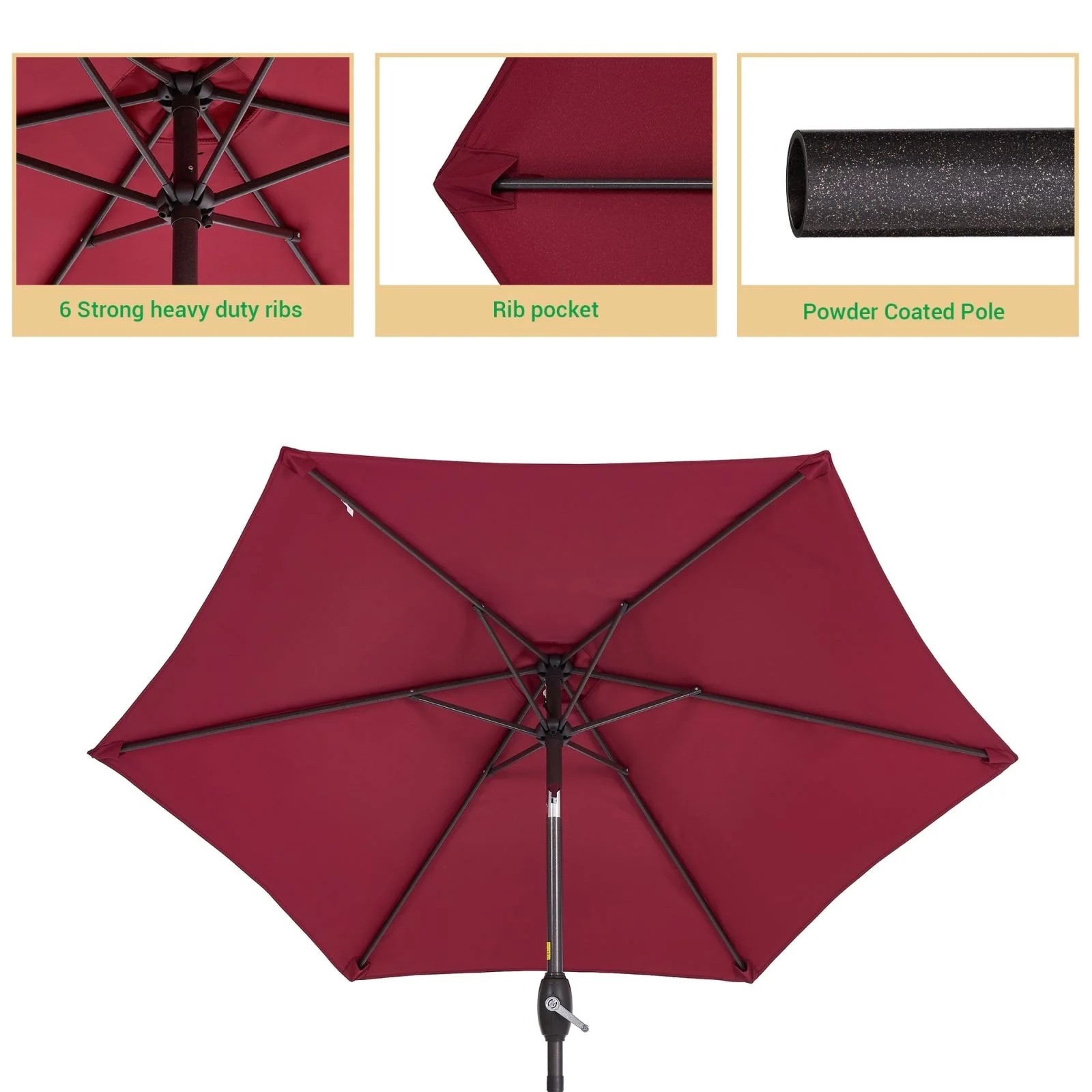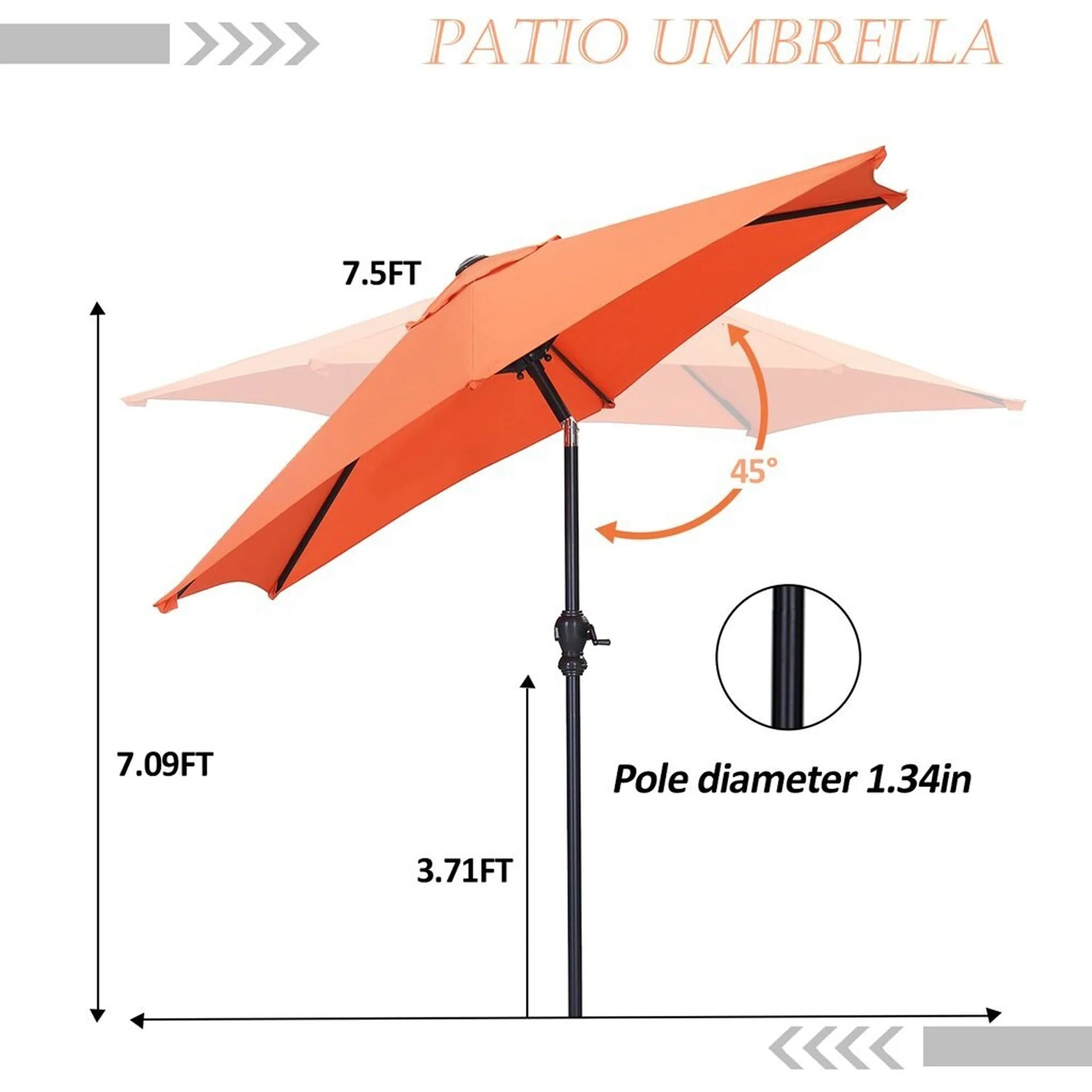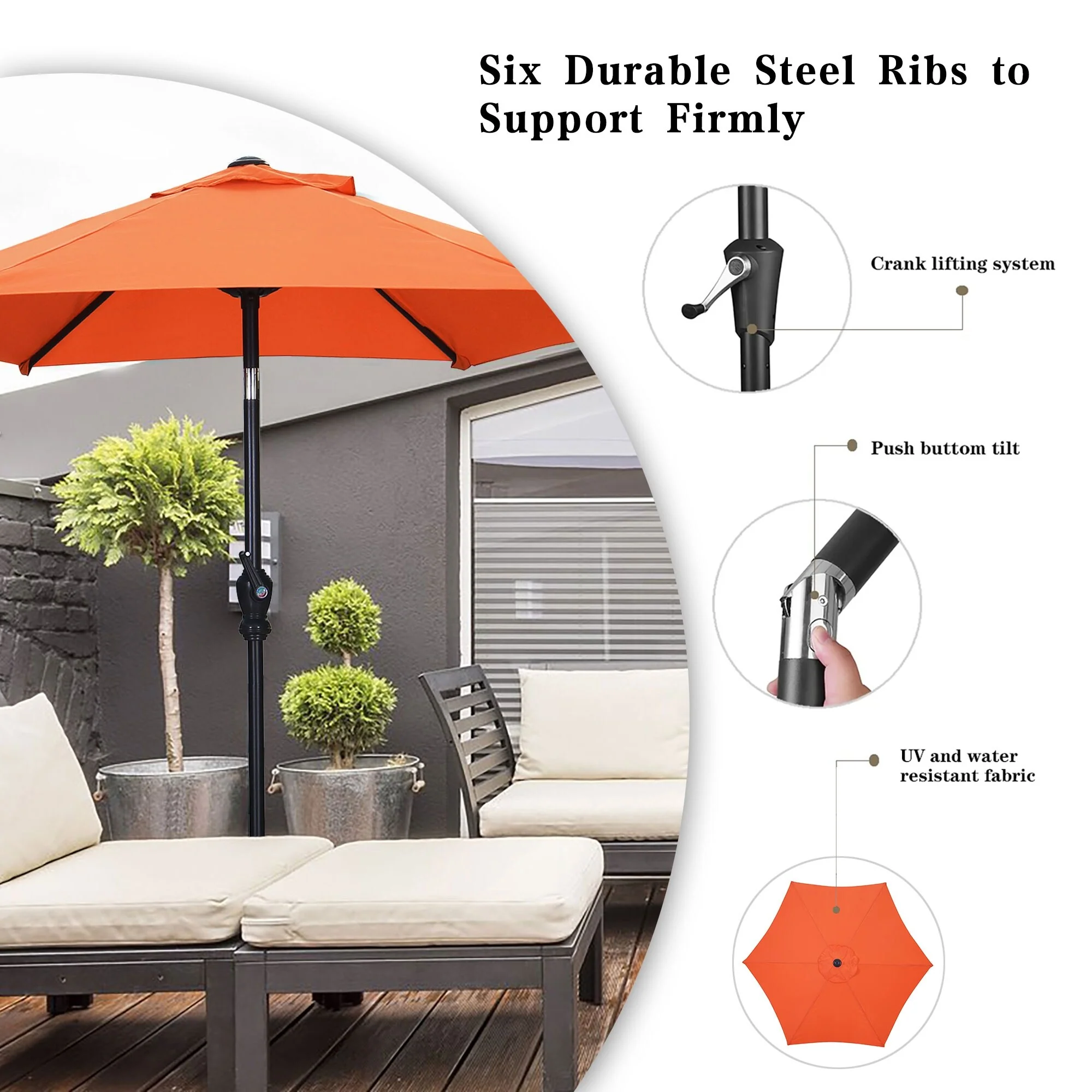 LIVOOSUN 7.5ft Steel Patio Market Umbrella Tilt System