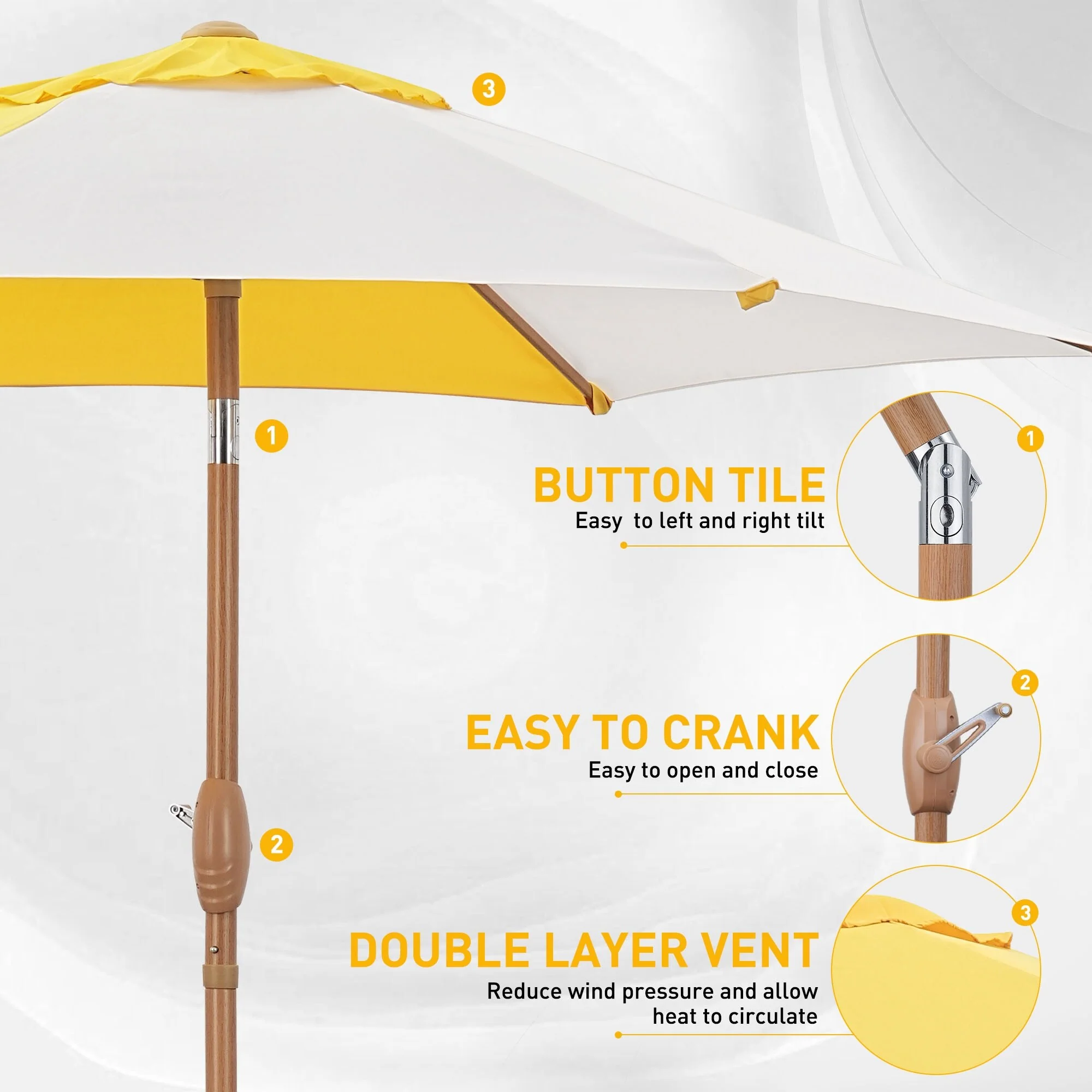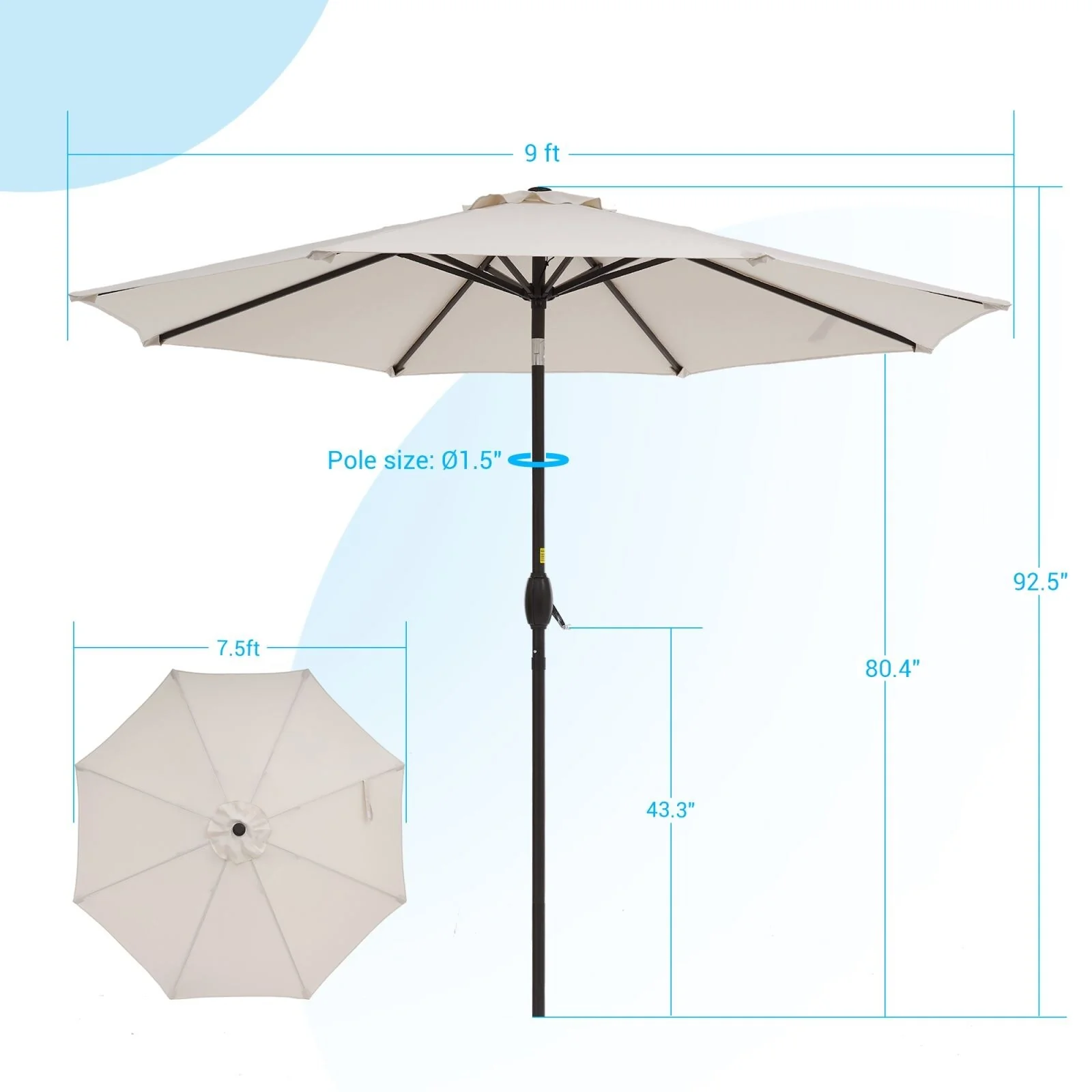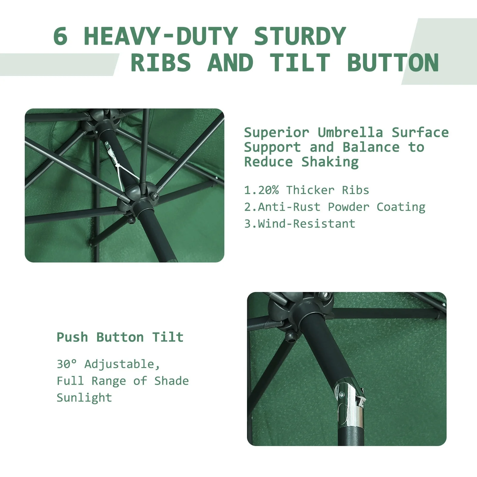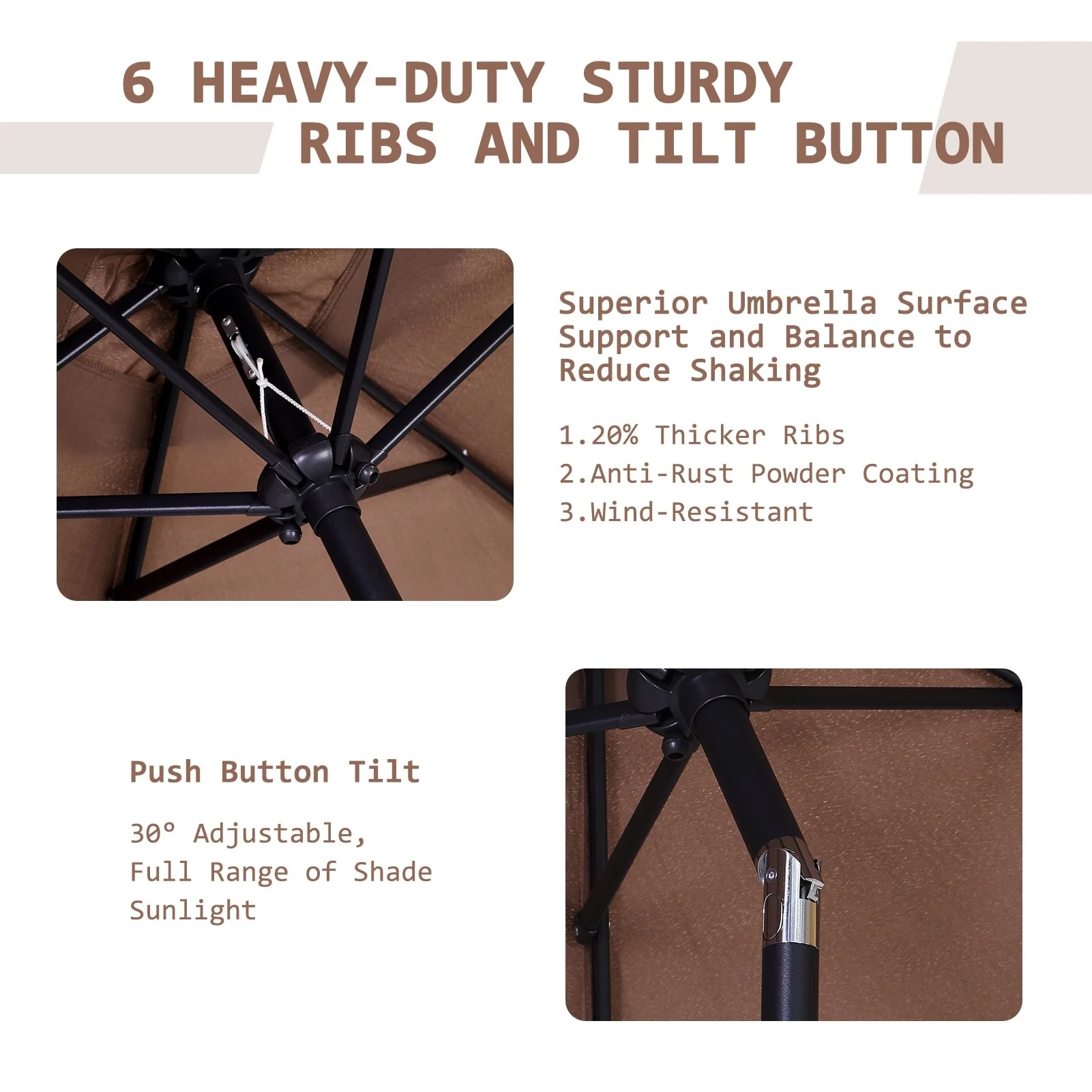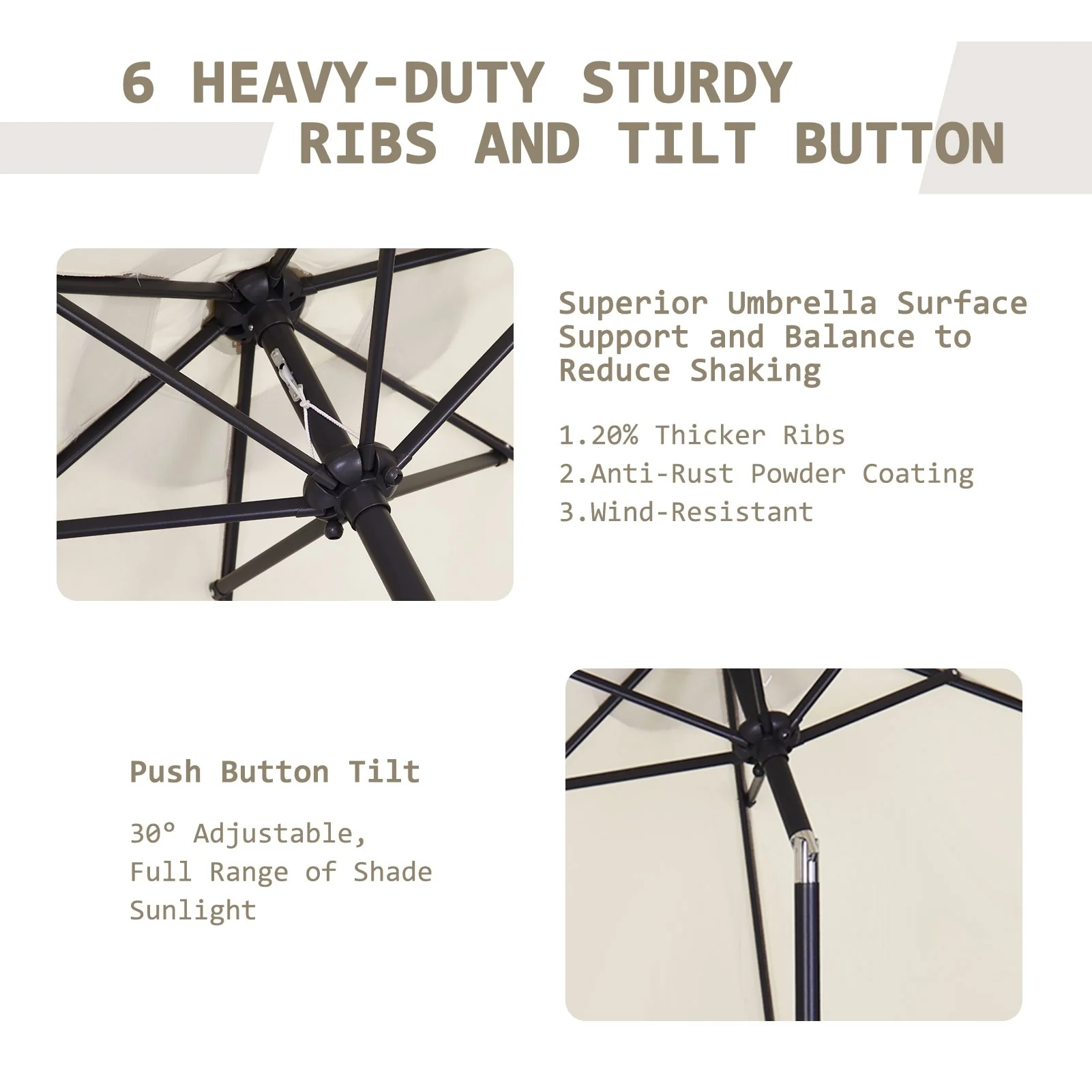 LIVOOSUN 7.5ft Steel Patio Market Umbrella Tilt System