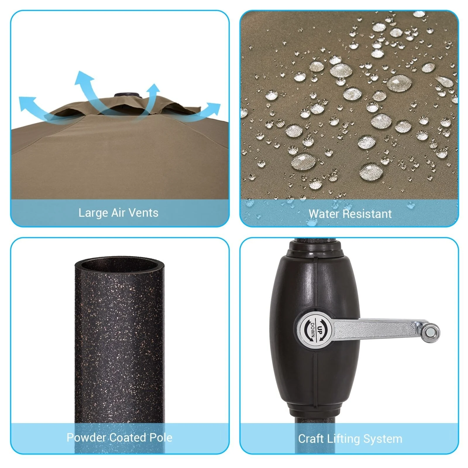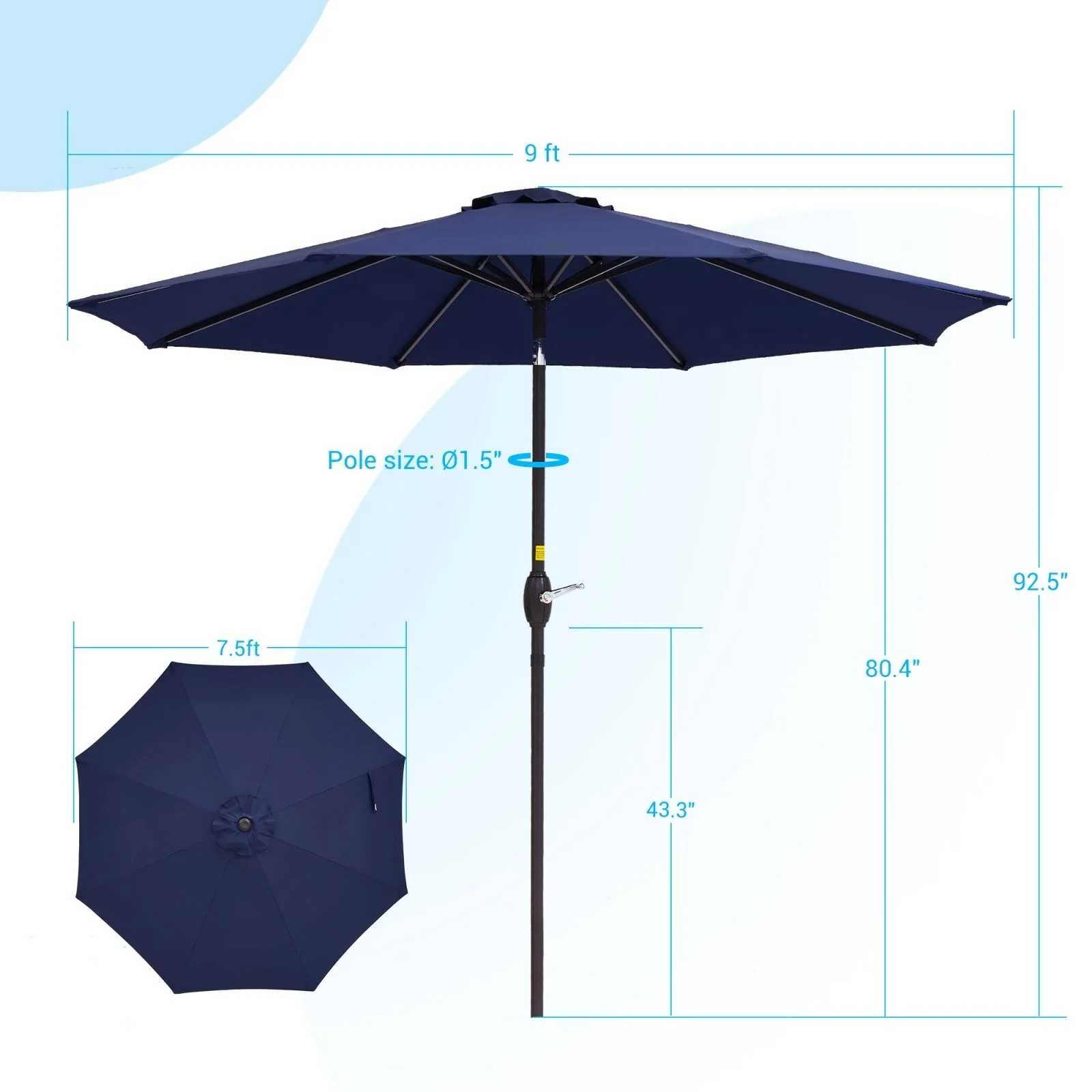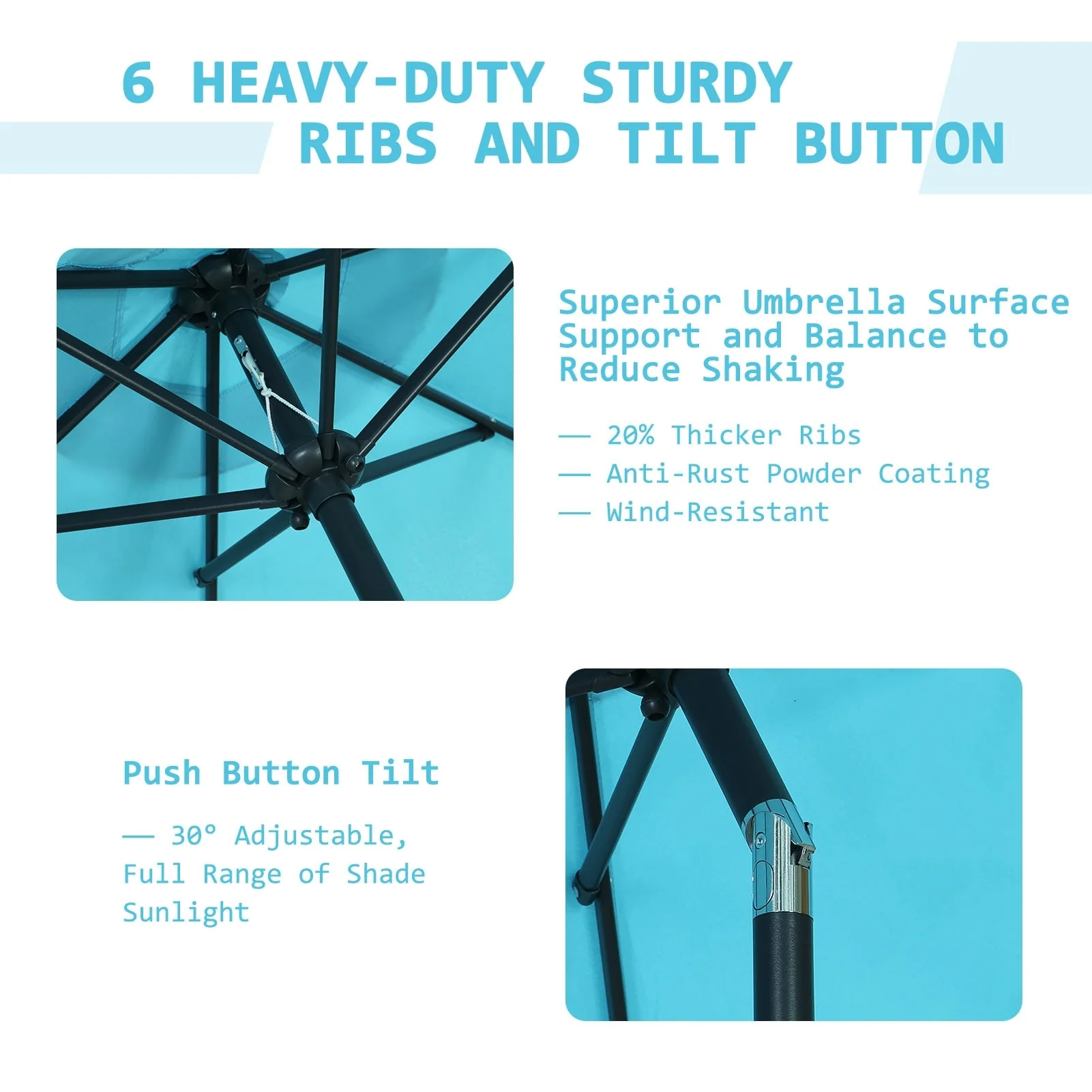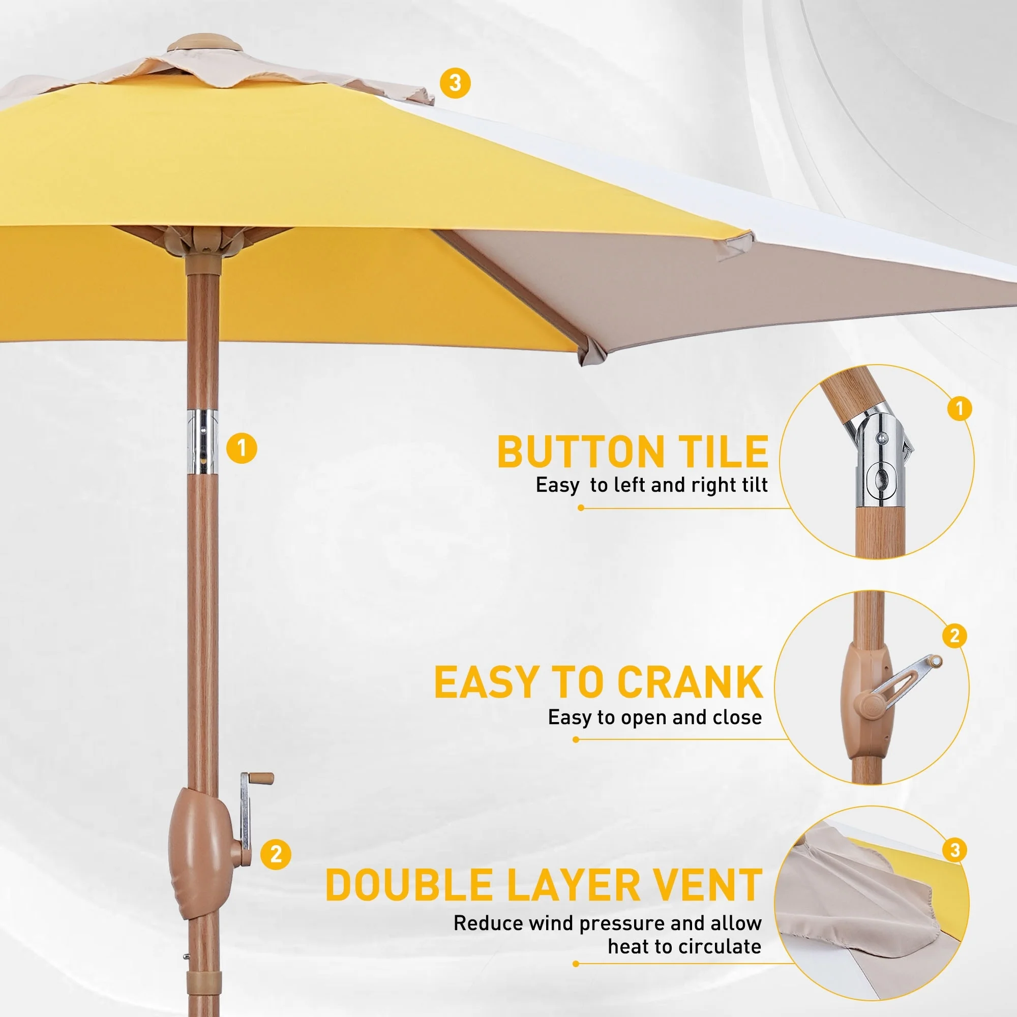 LIVOOSUN 7.5ft Steel Patio Market Umbrella Tilt System