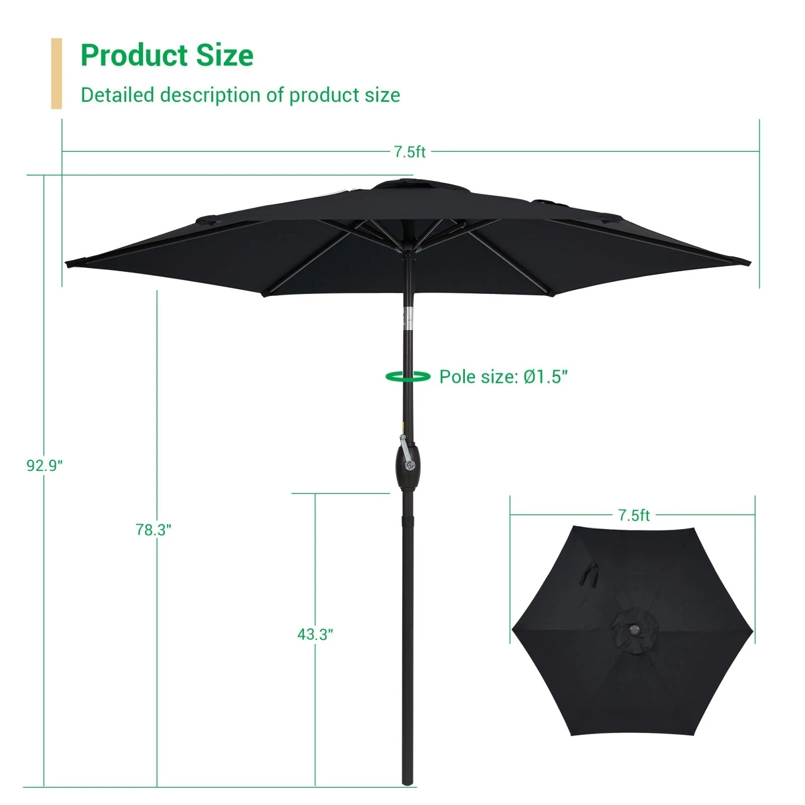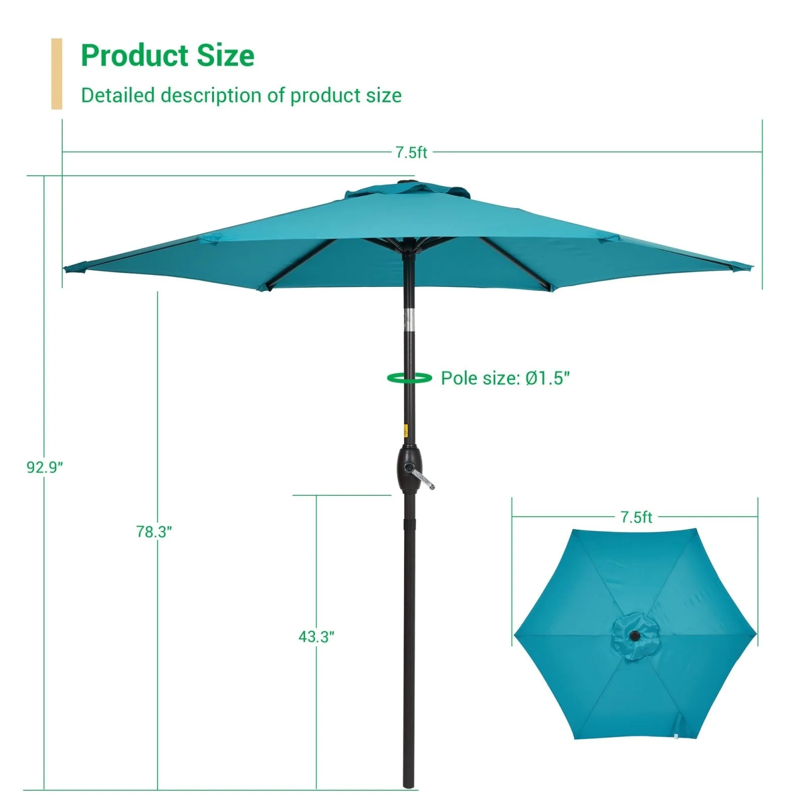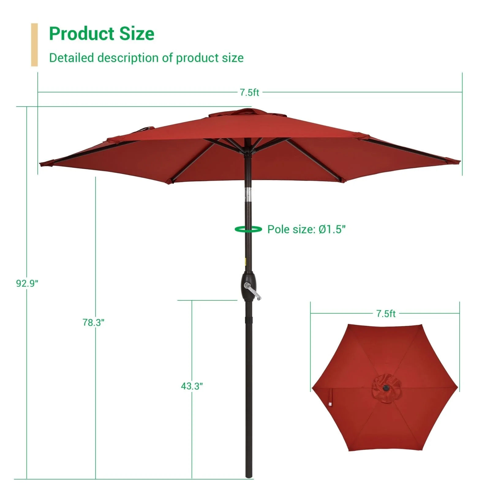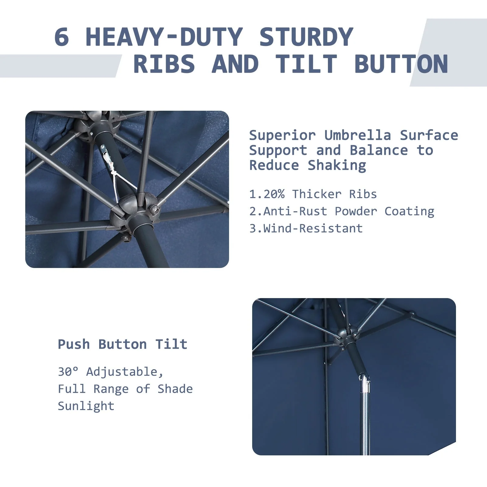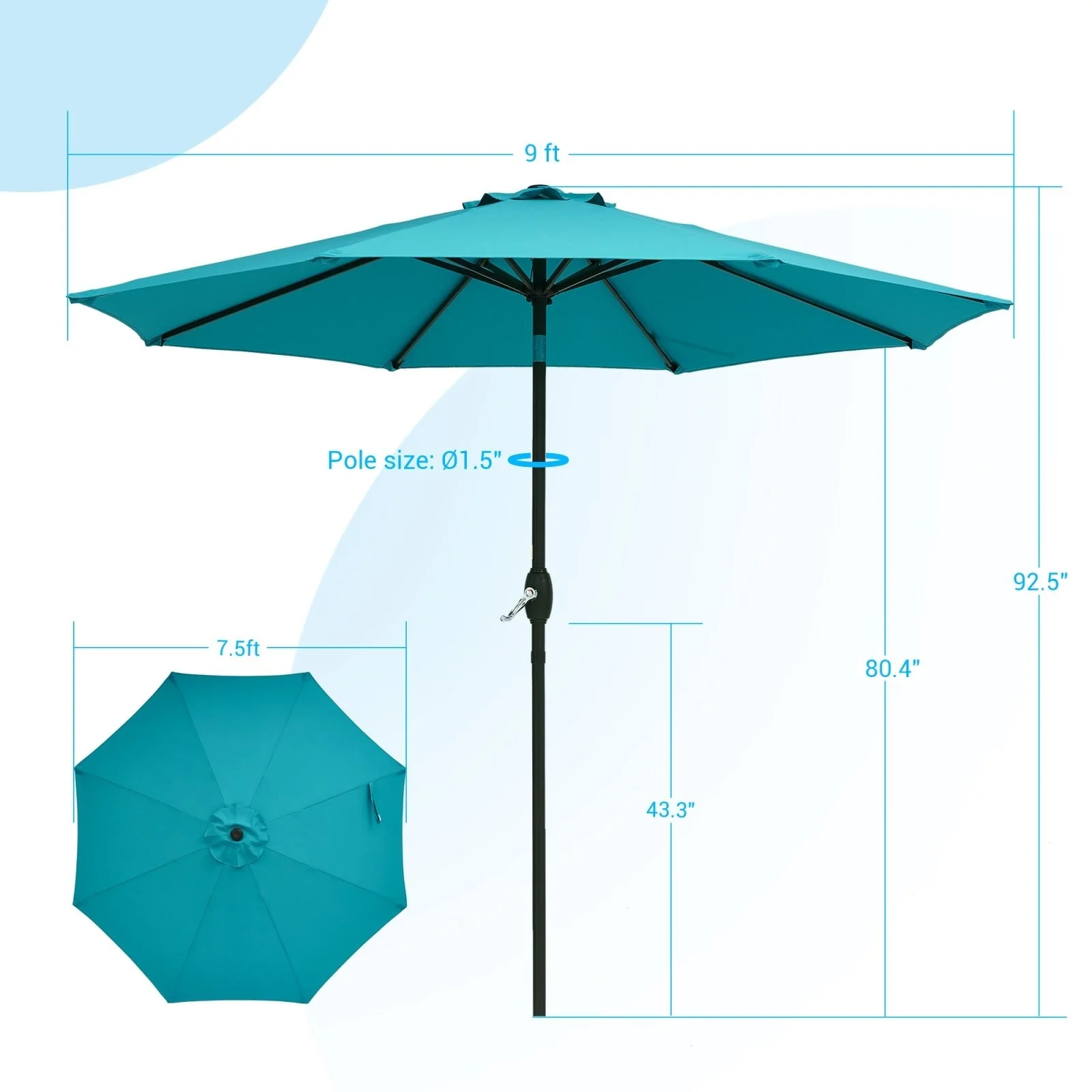 LIVOOSUN 7.5ft Steel Patio Market Umbrella Tilt System