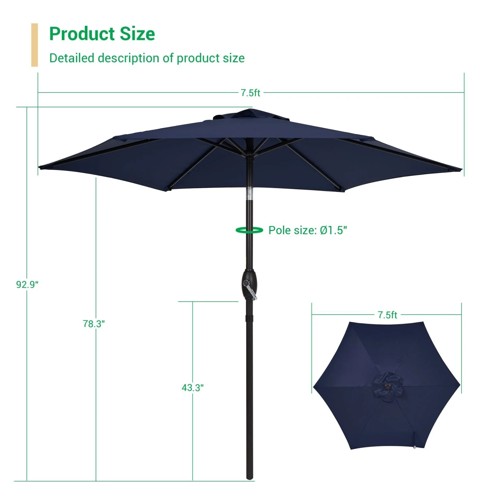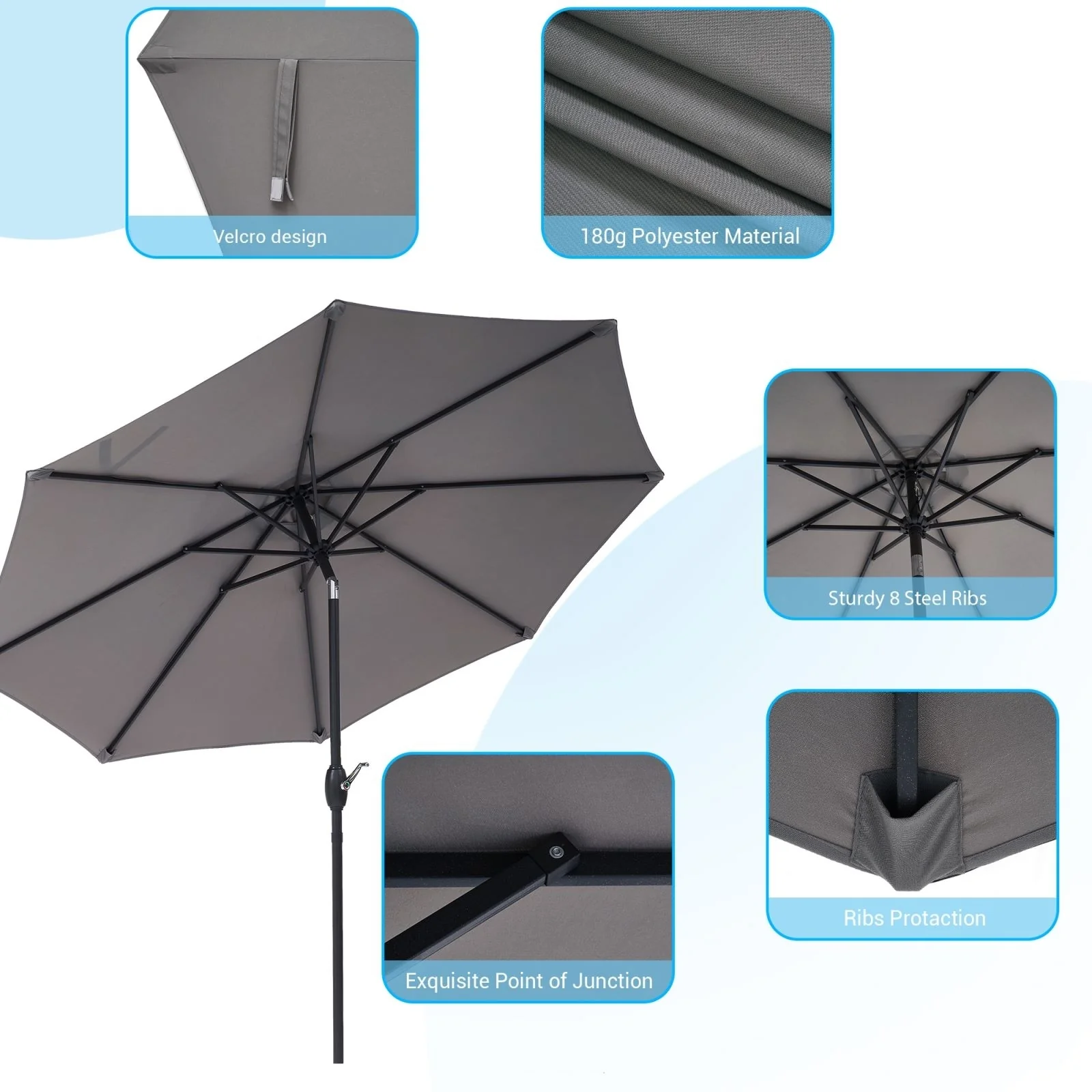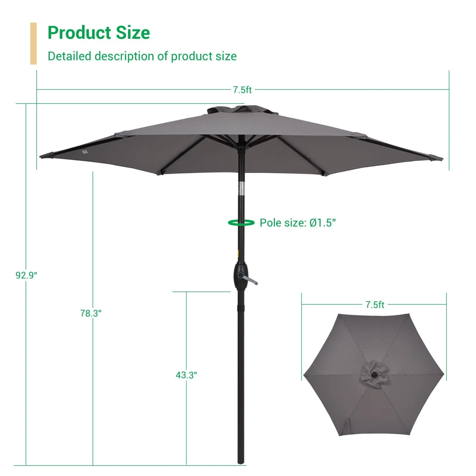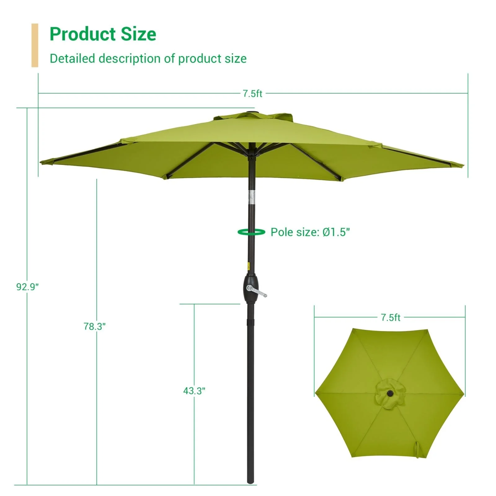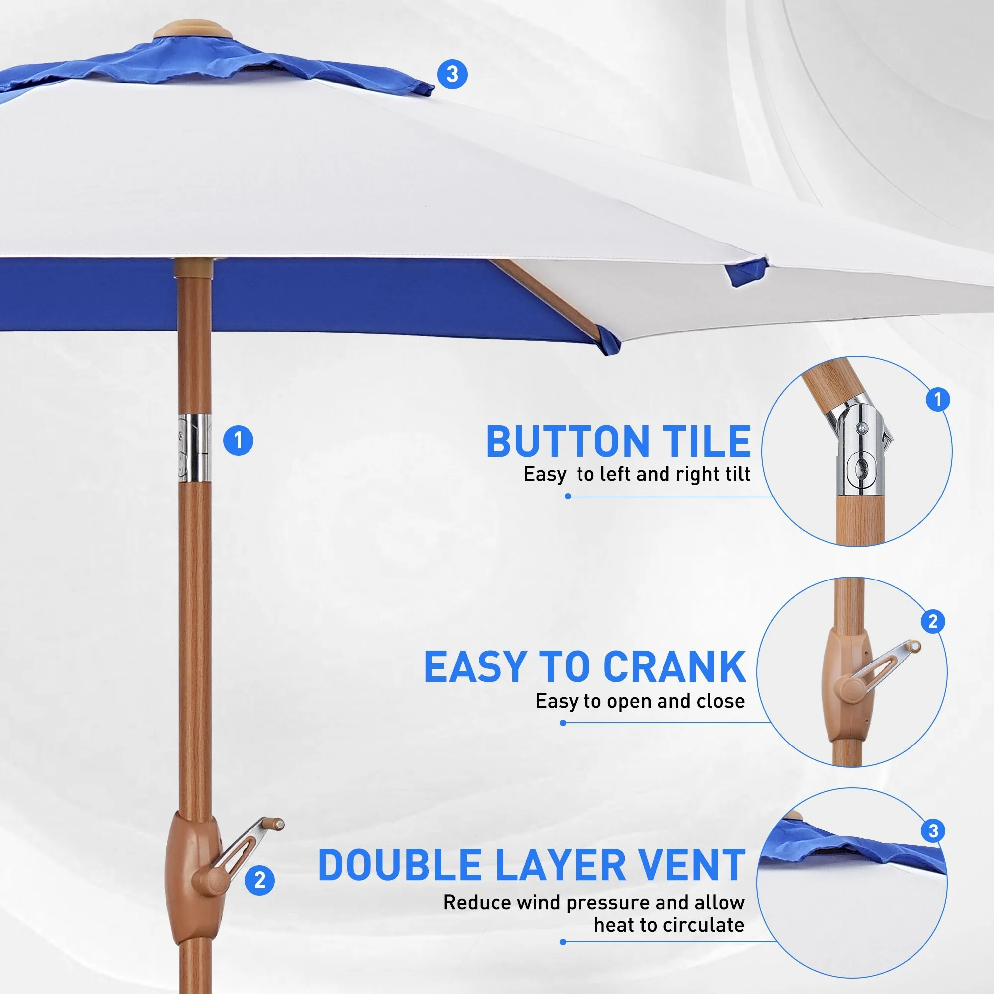 LIVOOSUN 7.5ft Steel Patio Market Umbrella Tilt System