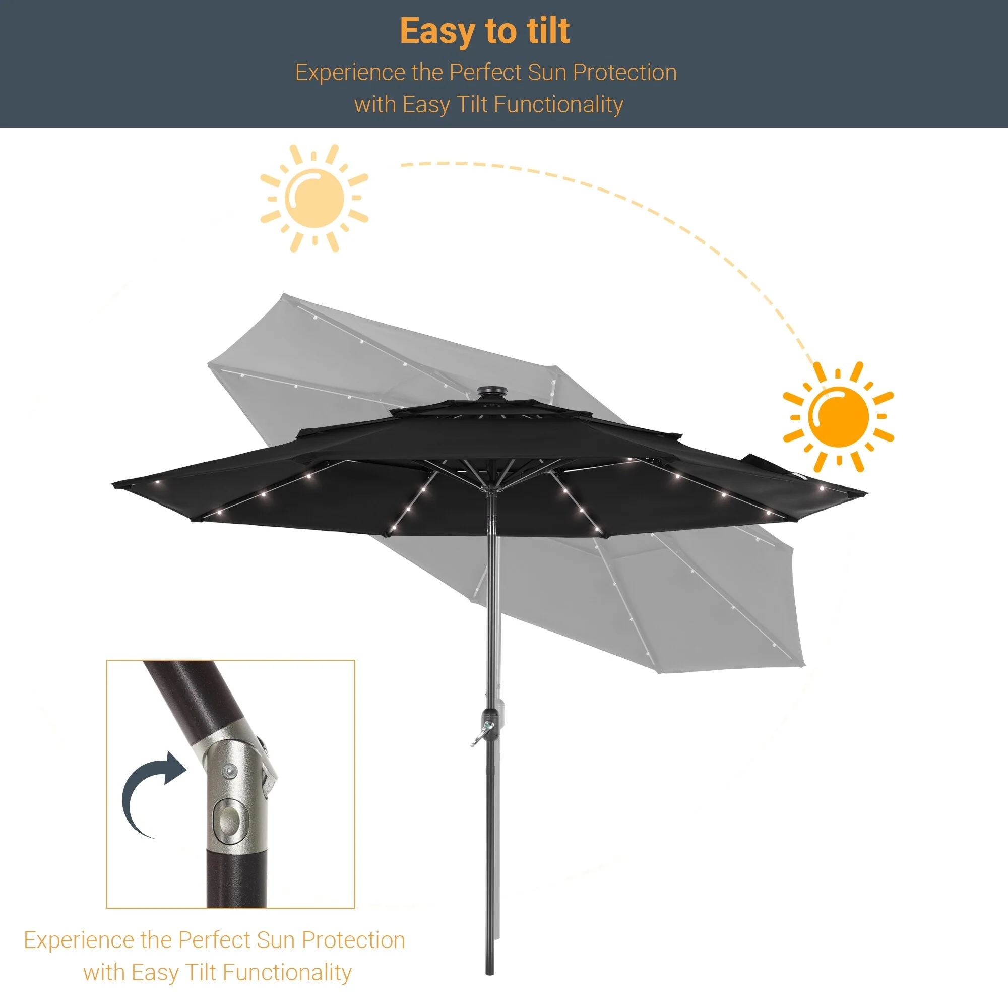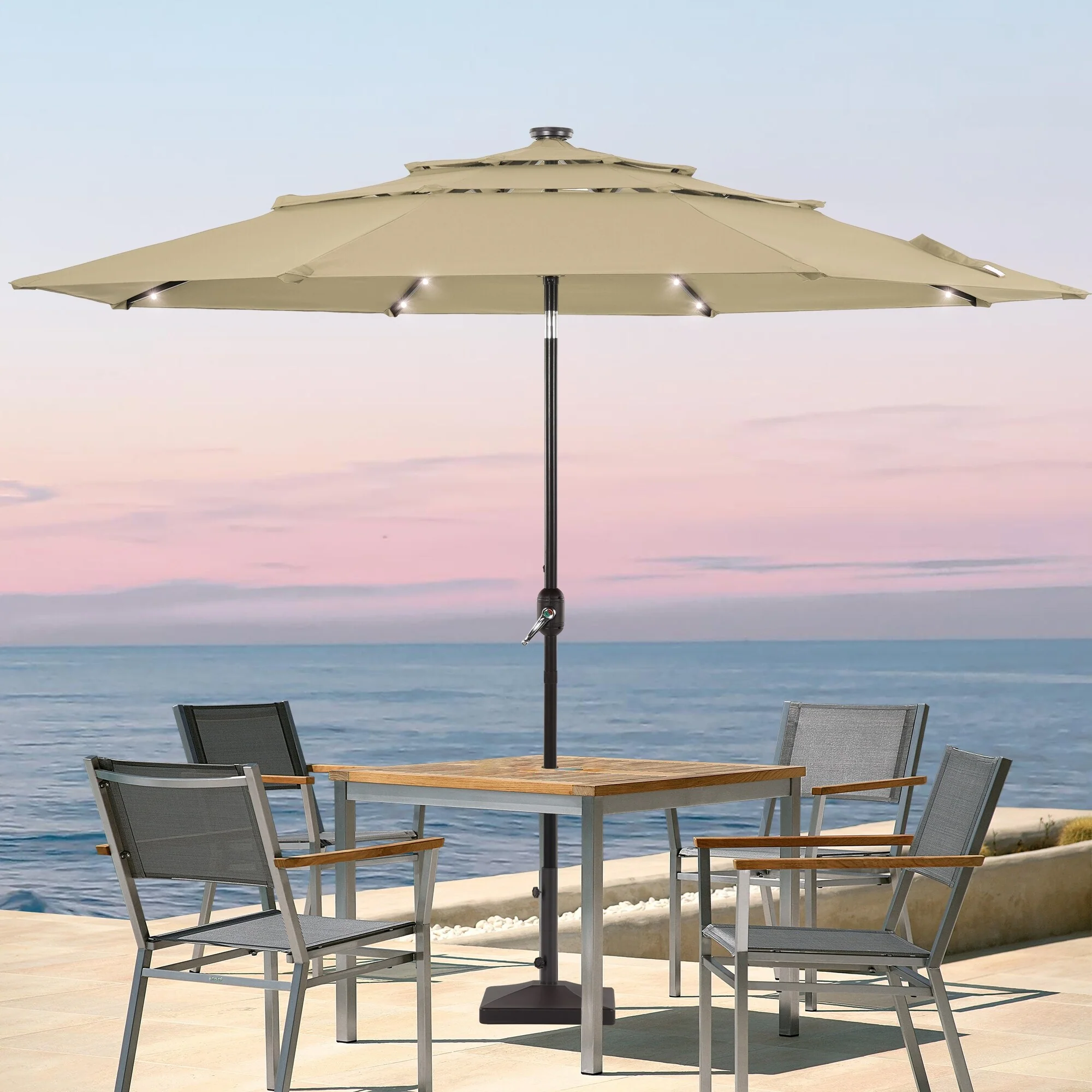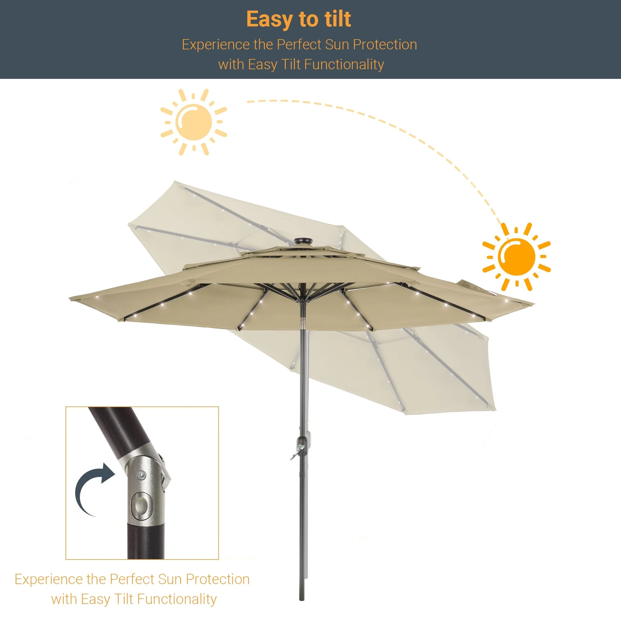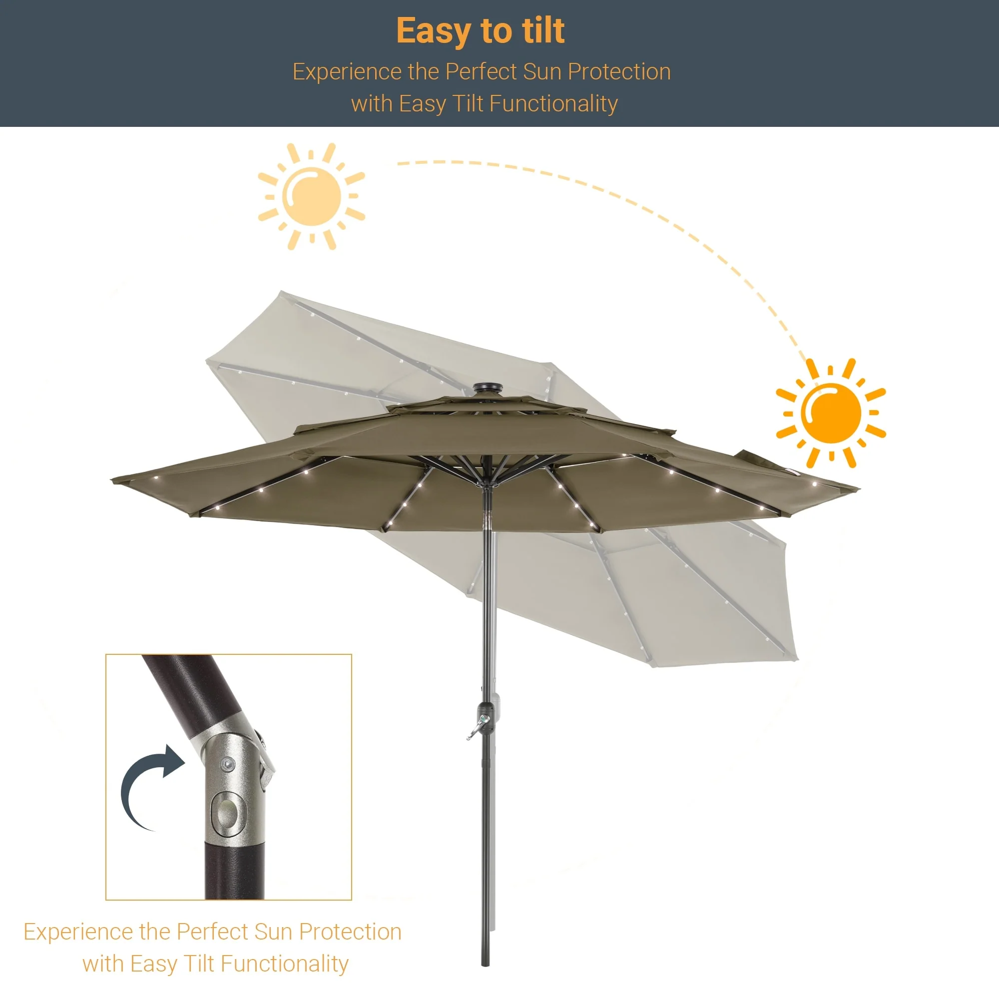 LIVOOSUN LED 10FT LED 3-layer Patio Umbrella with UPF50+, Tilt Function, and Wind-Resistant Design����Experience Outdoor Comfort