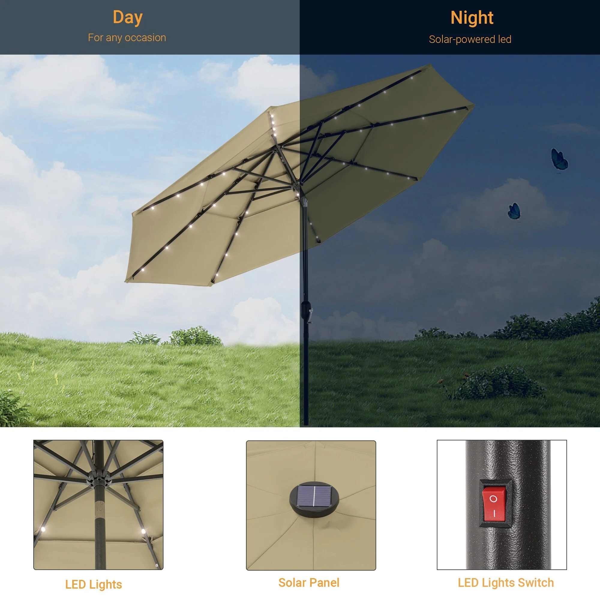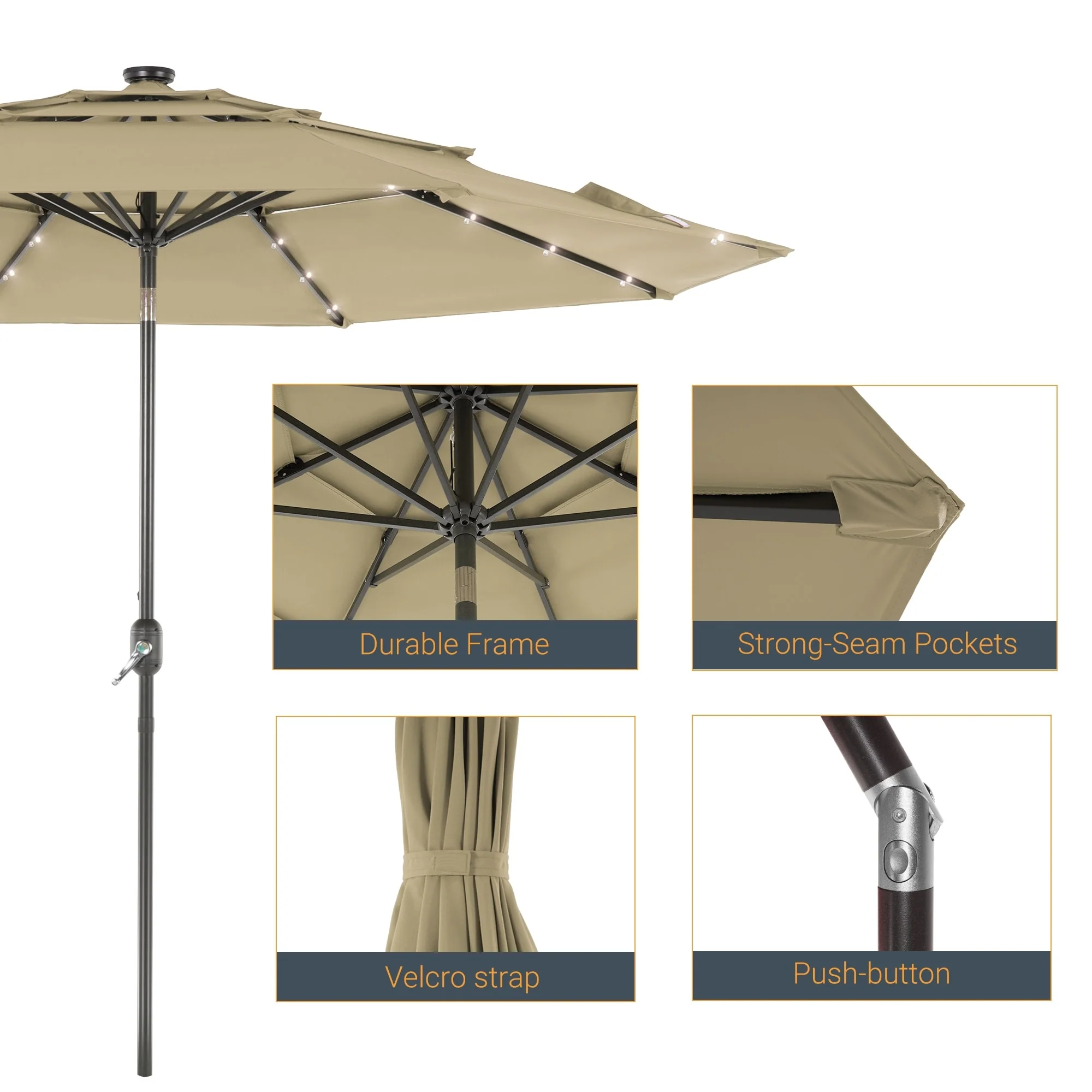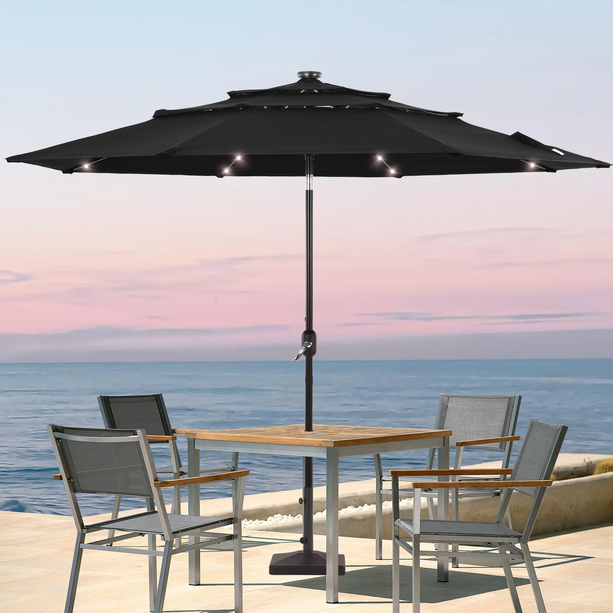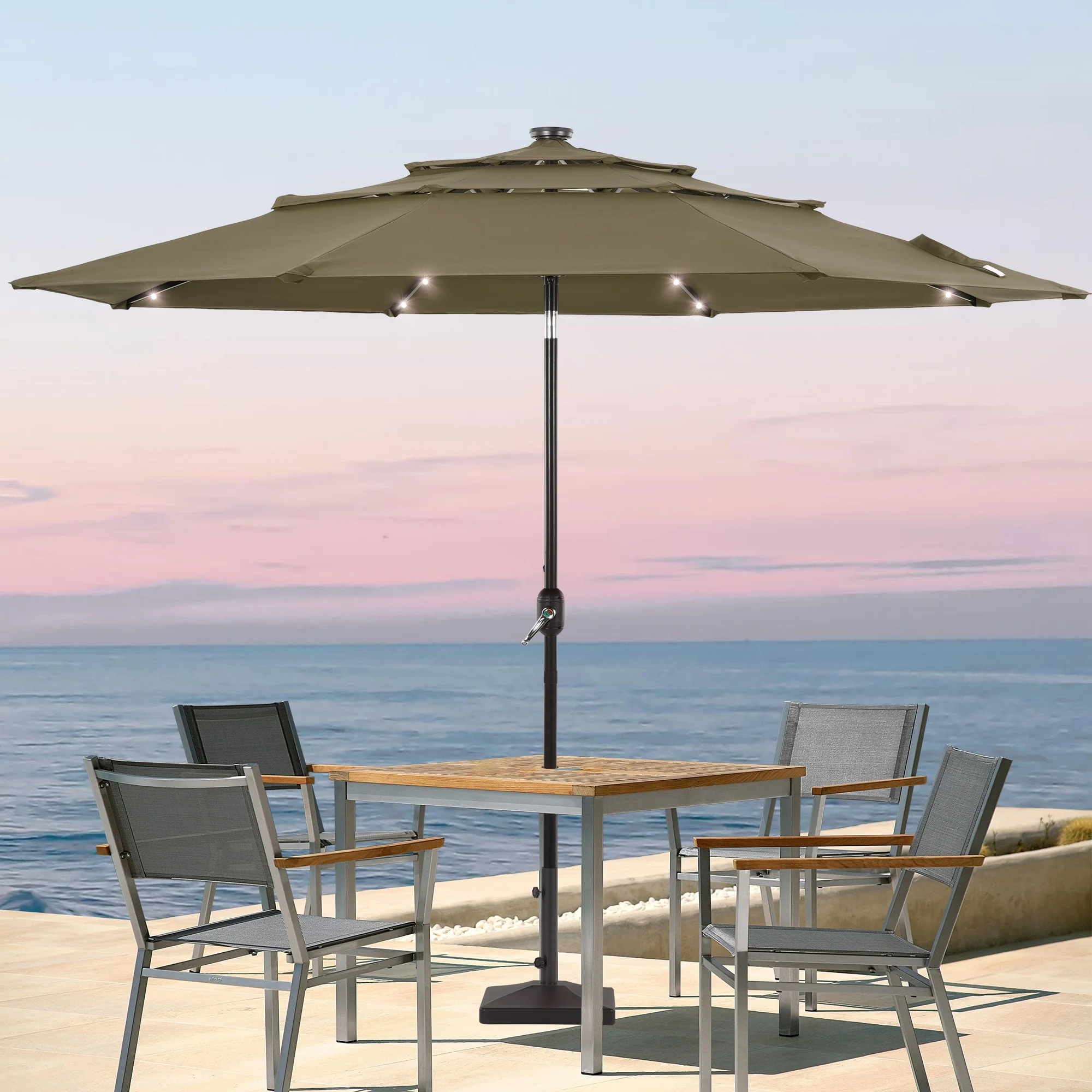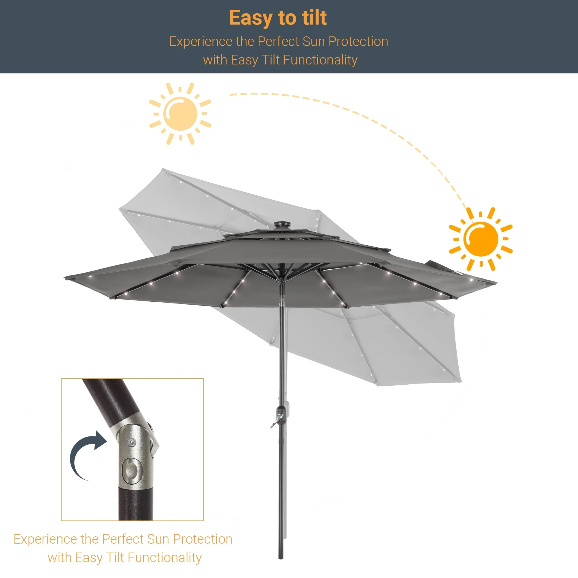 LIVOOSUN LED 10FT LED 3-layer Patio Umbrella with UPF50+, Tilt Function, and Wind-Resistant Design����Experience Outdoor Comfort