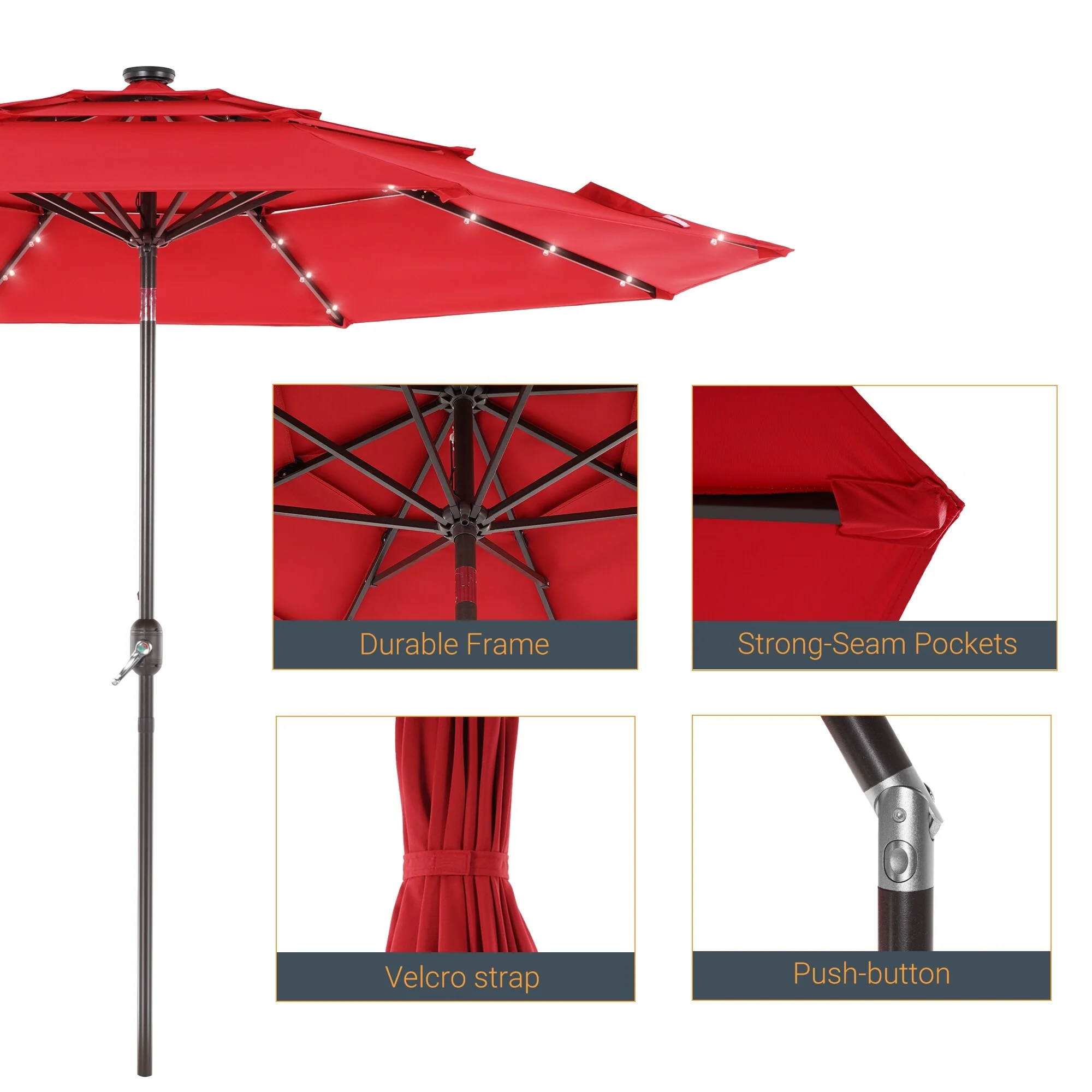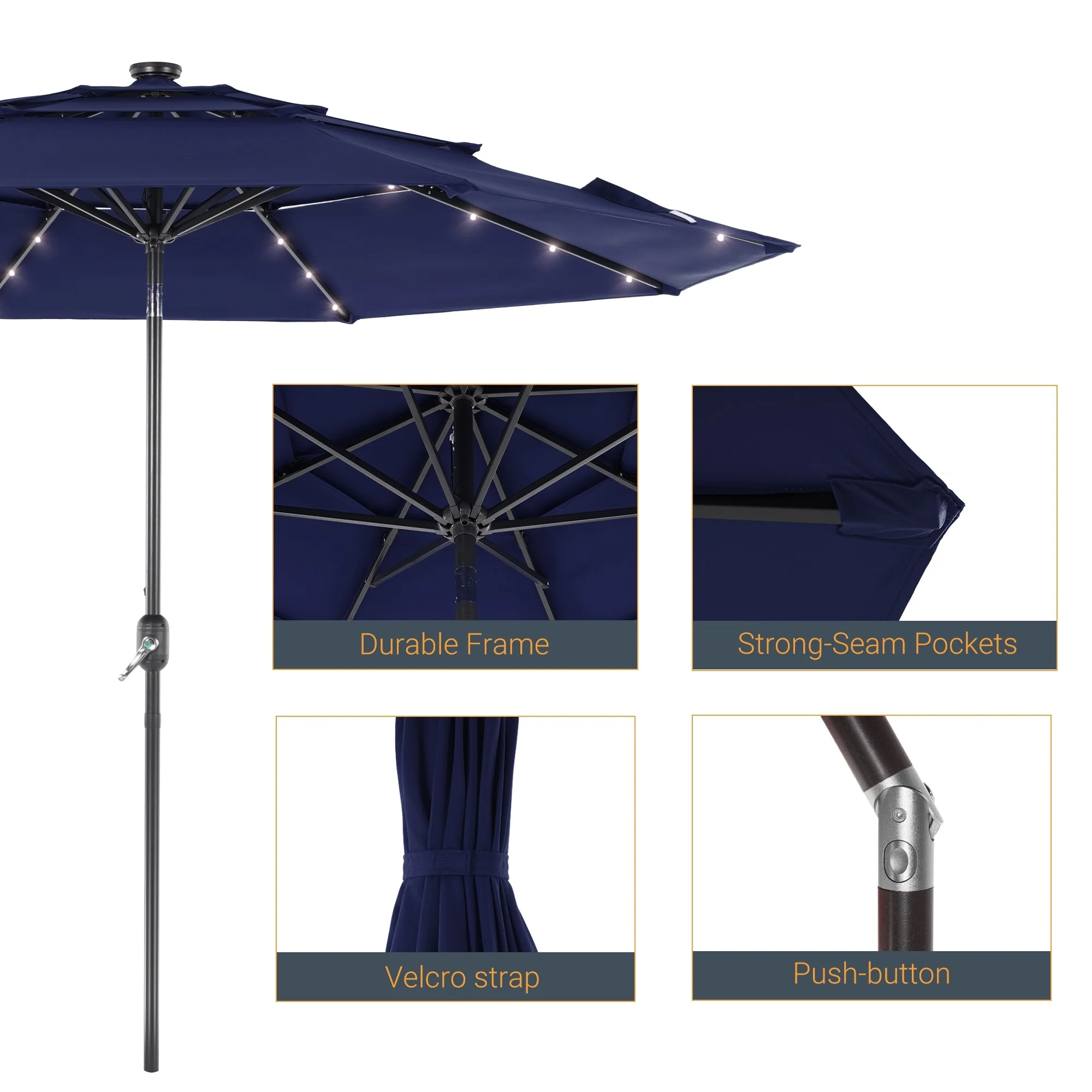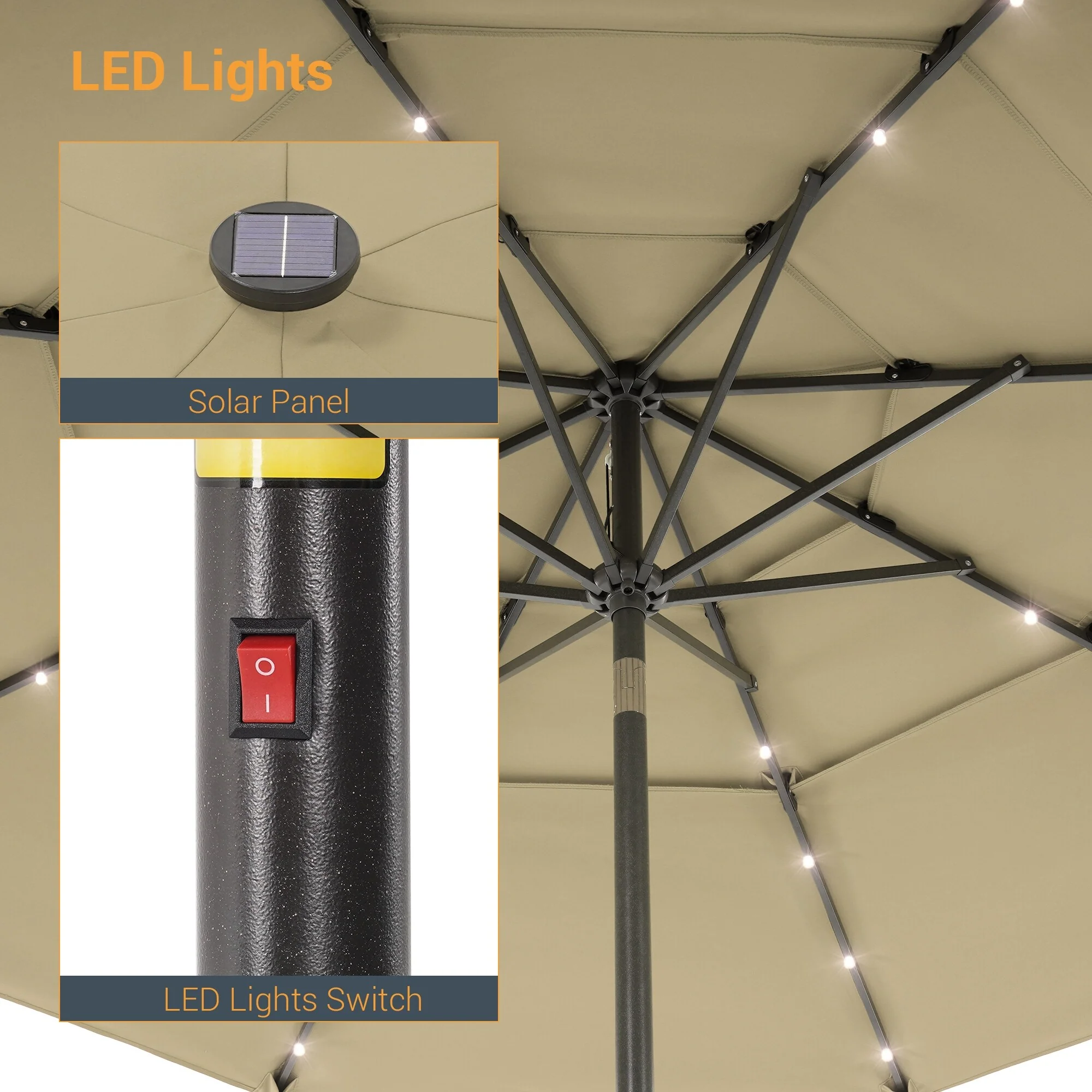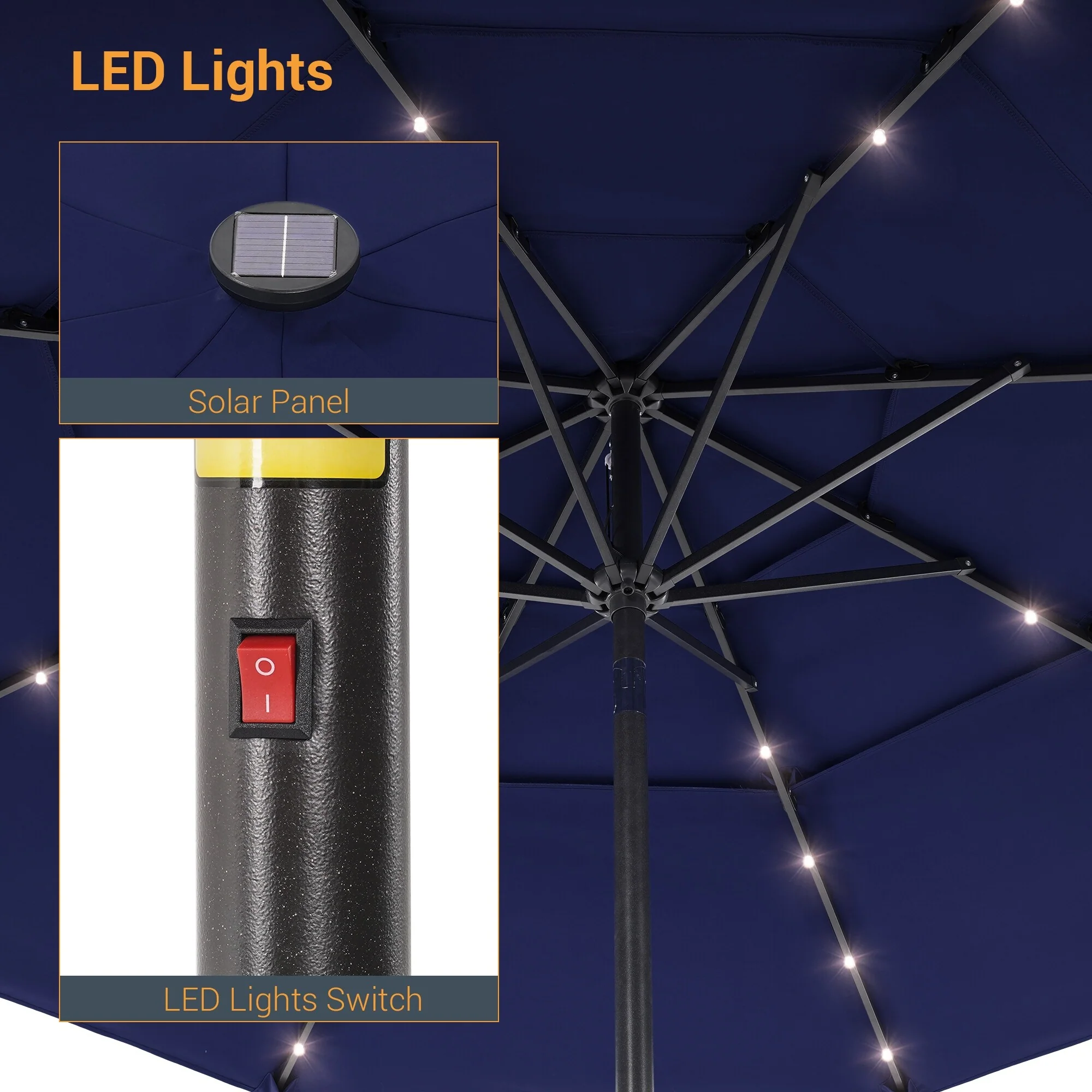 LIVOOSUN LED 10FT LED 3-layer Patio Umbrella with UPF50+, Tilt Function, and Wind-Resistant Design����Experience Outdoor Comfort