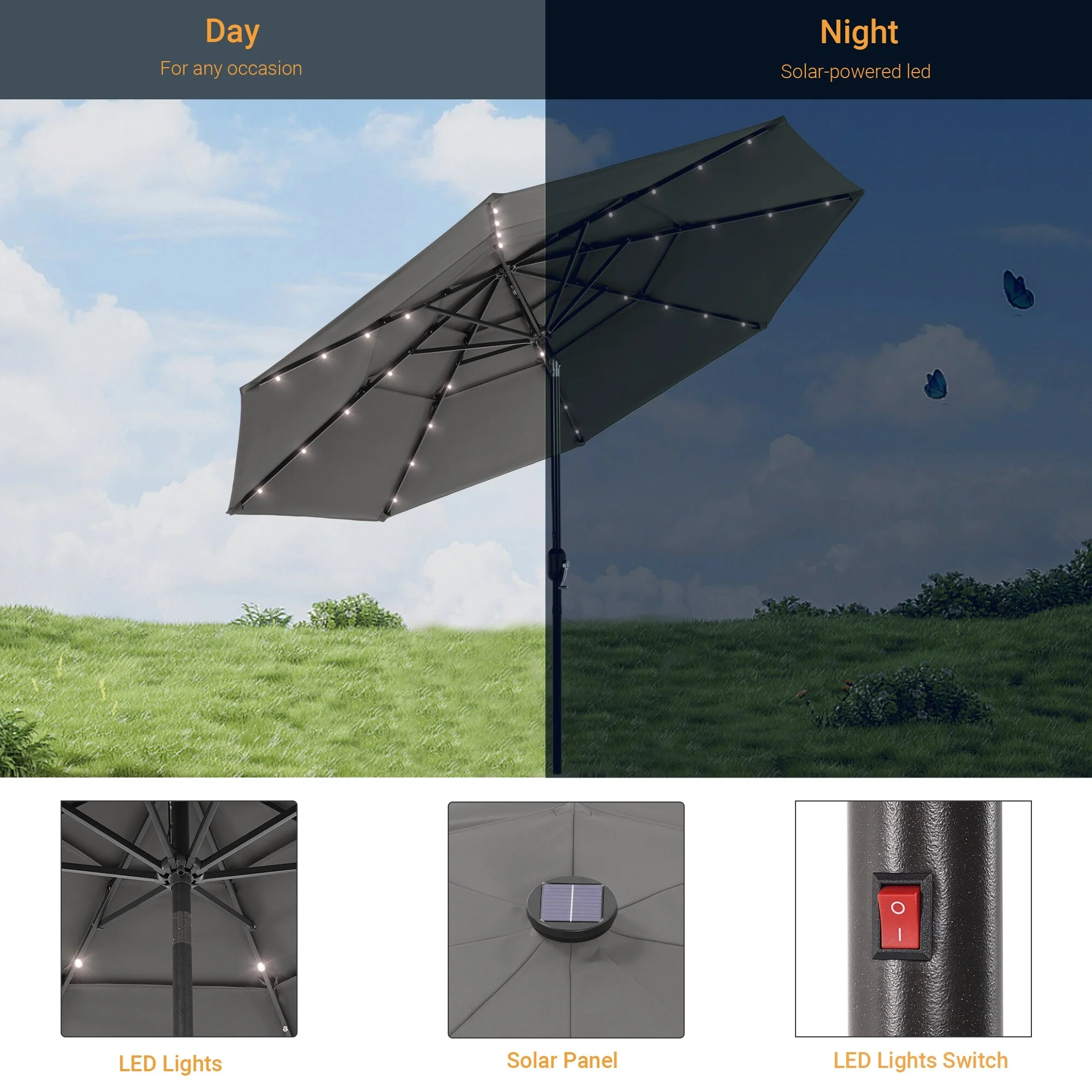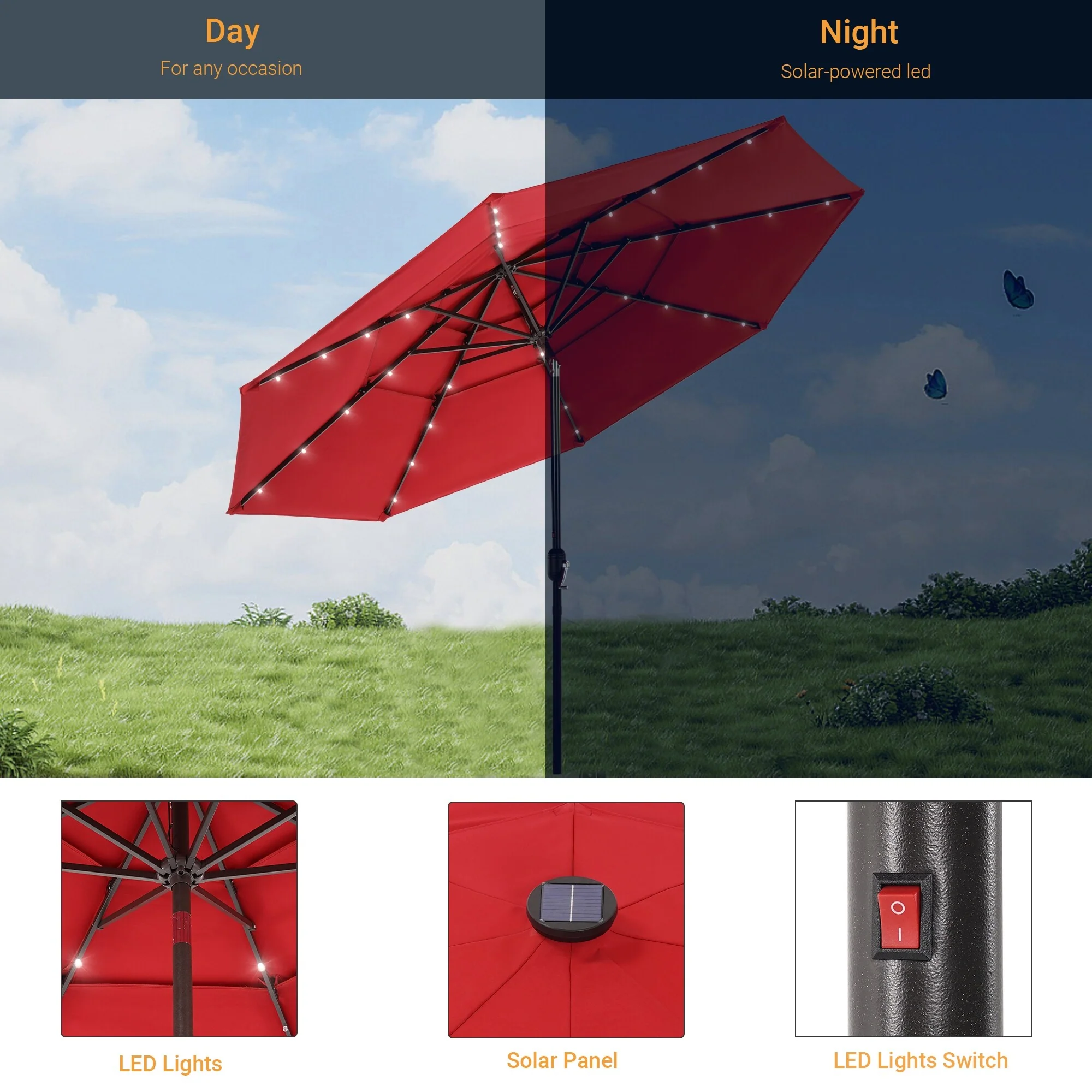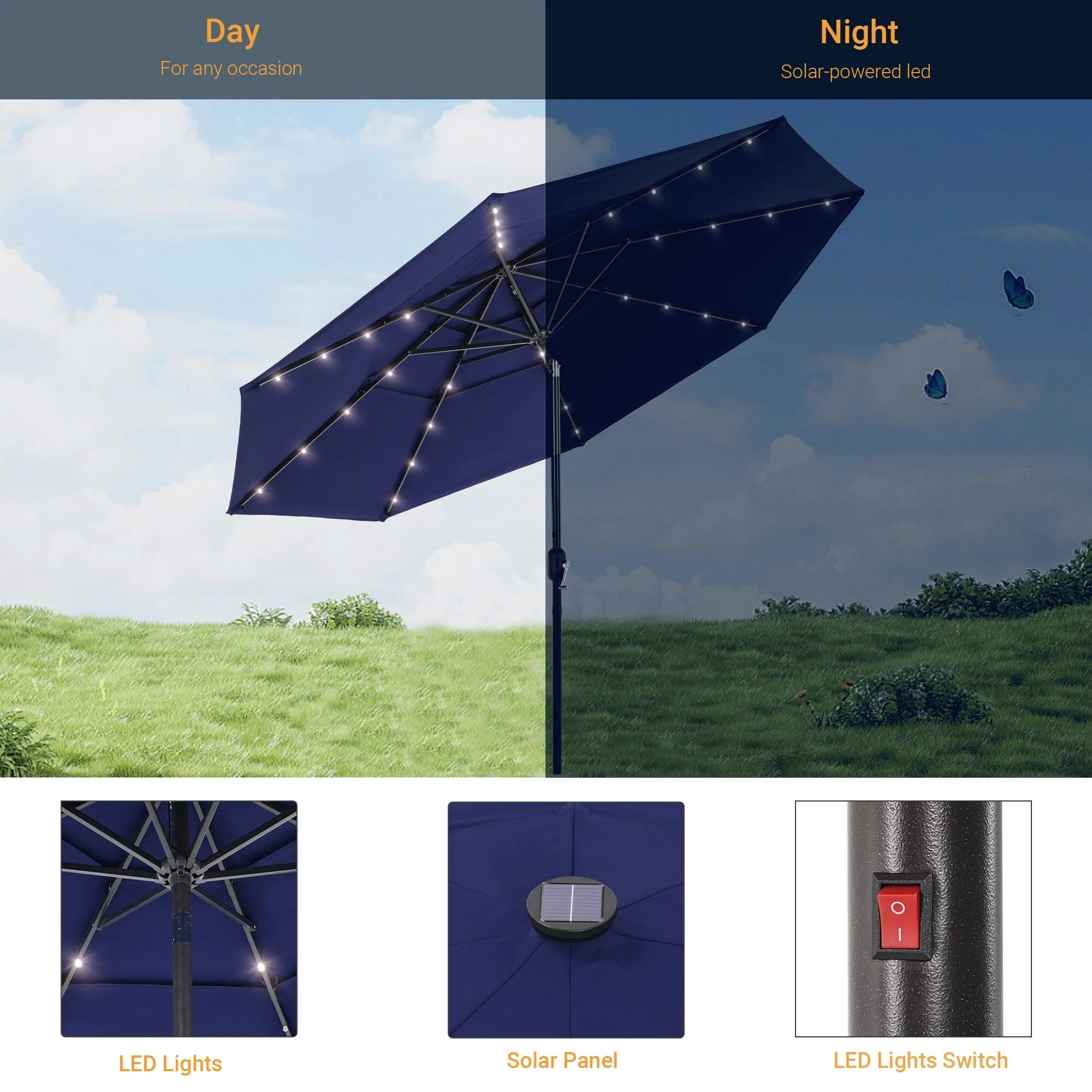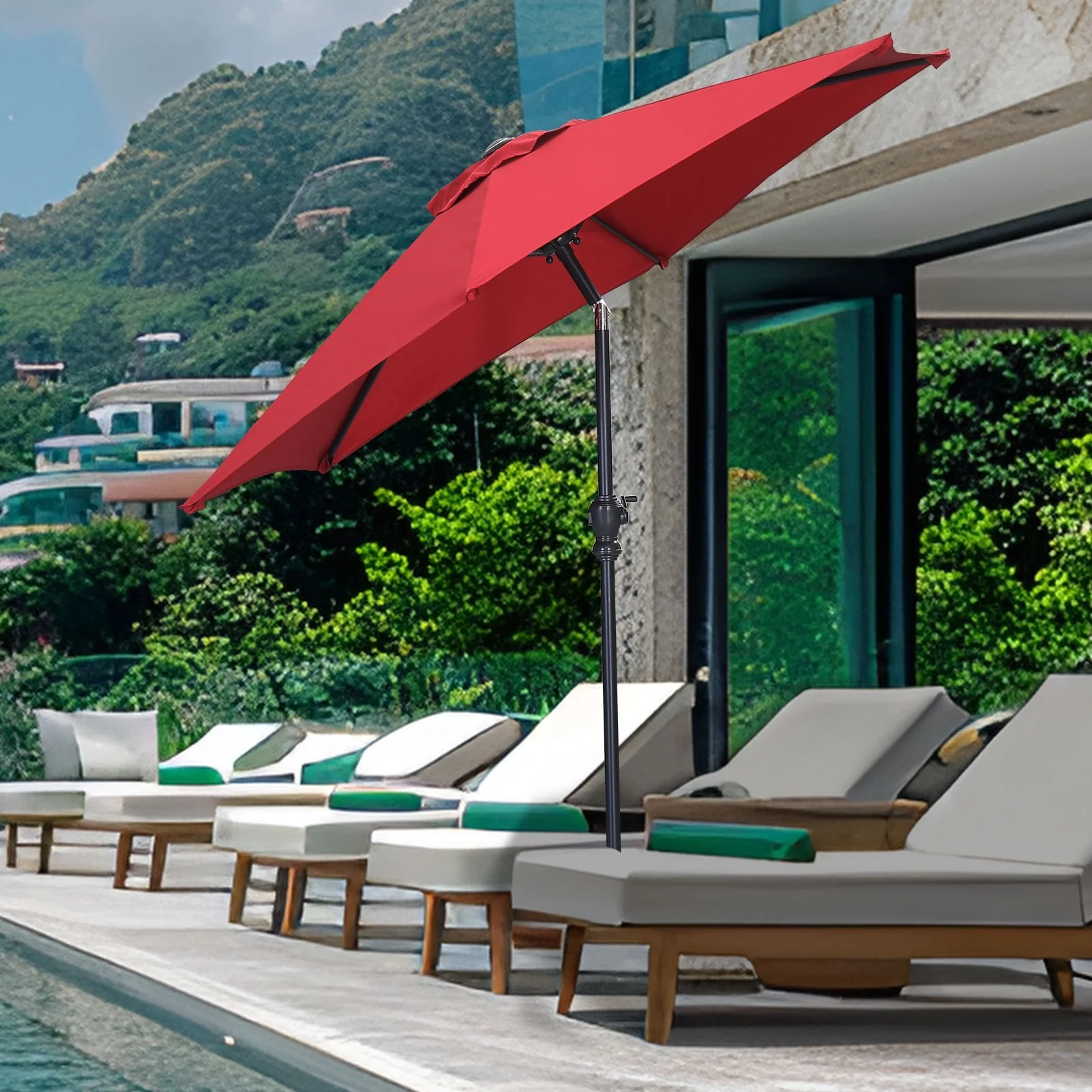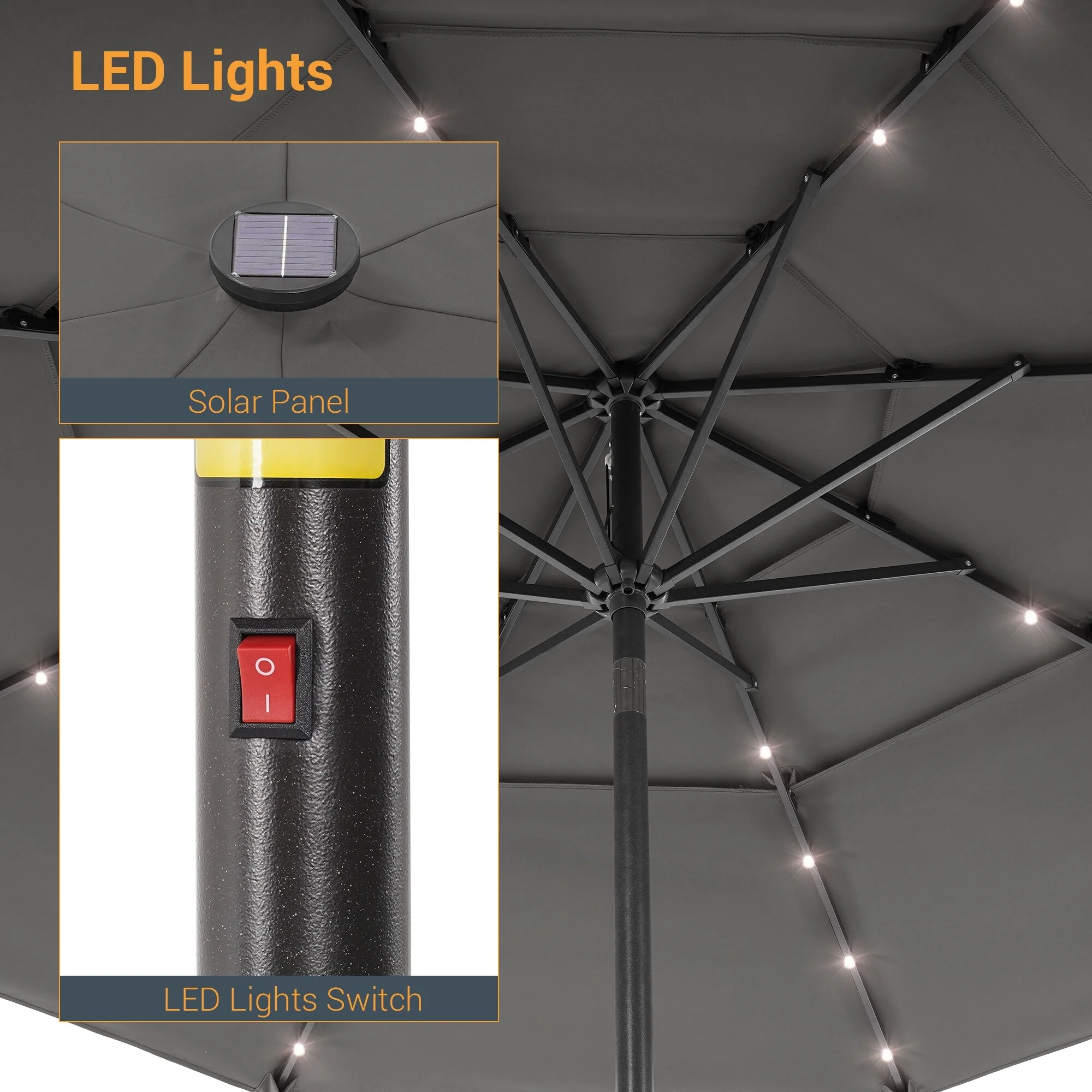 LIVOOSUN LED 10FT LED 3-layer Patio Umbrella with UPF50+, Tilt Function, and Wind-Resistant Design����Experience Outdoor Comfort