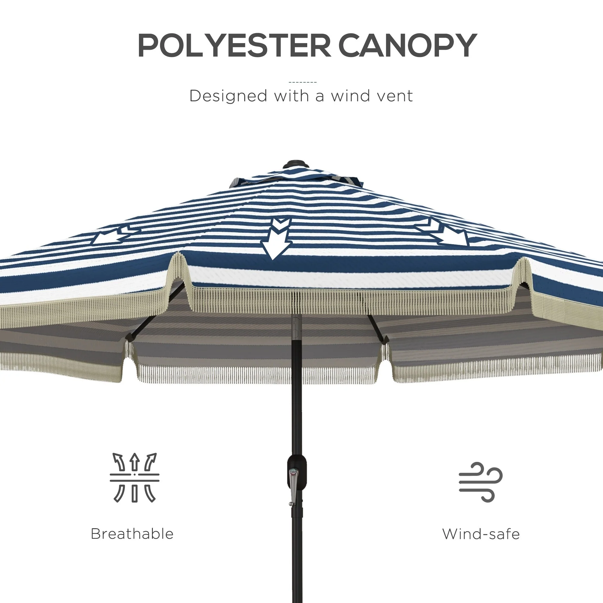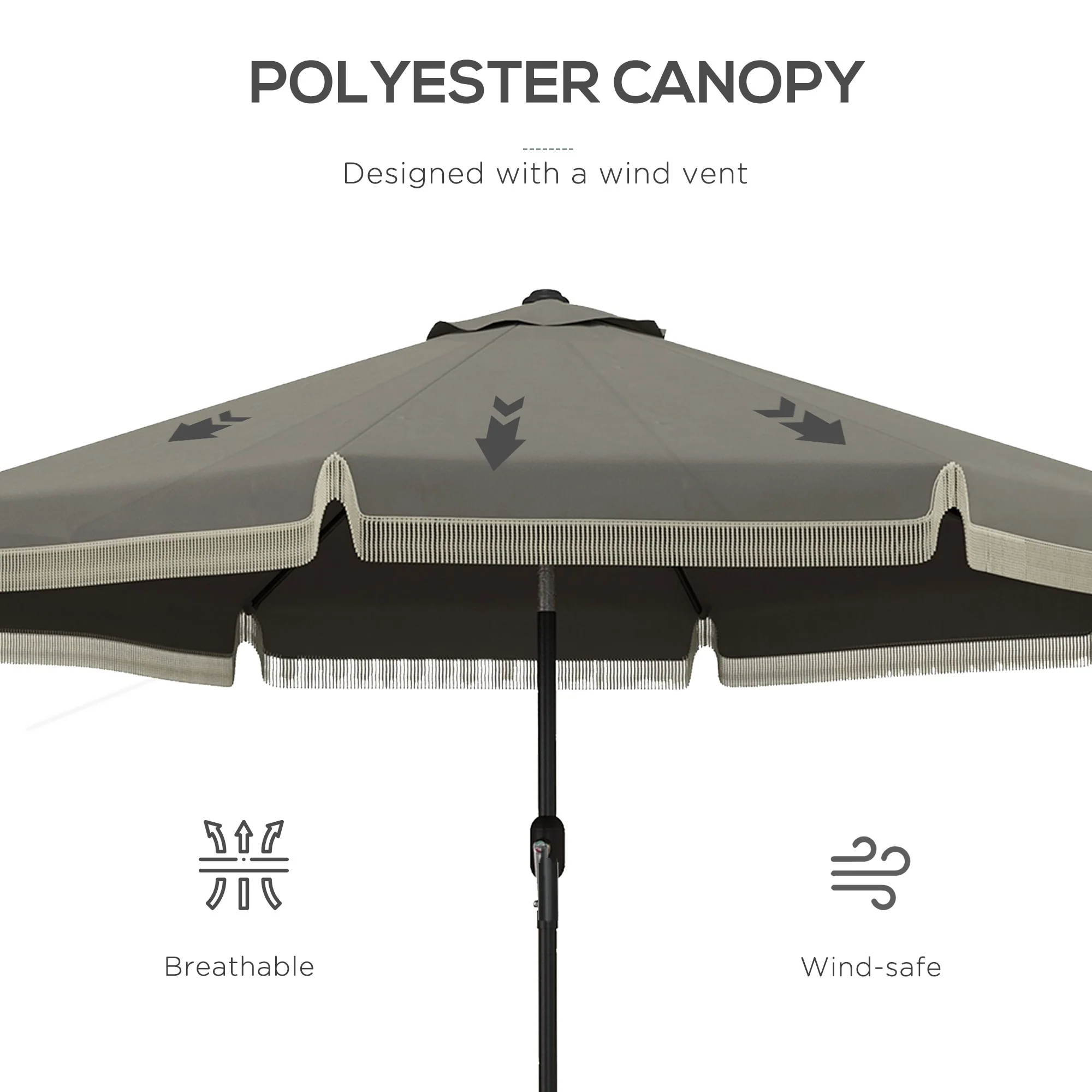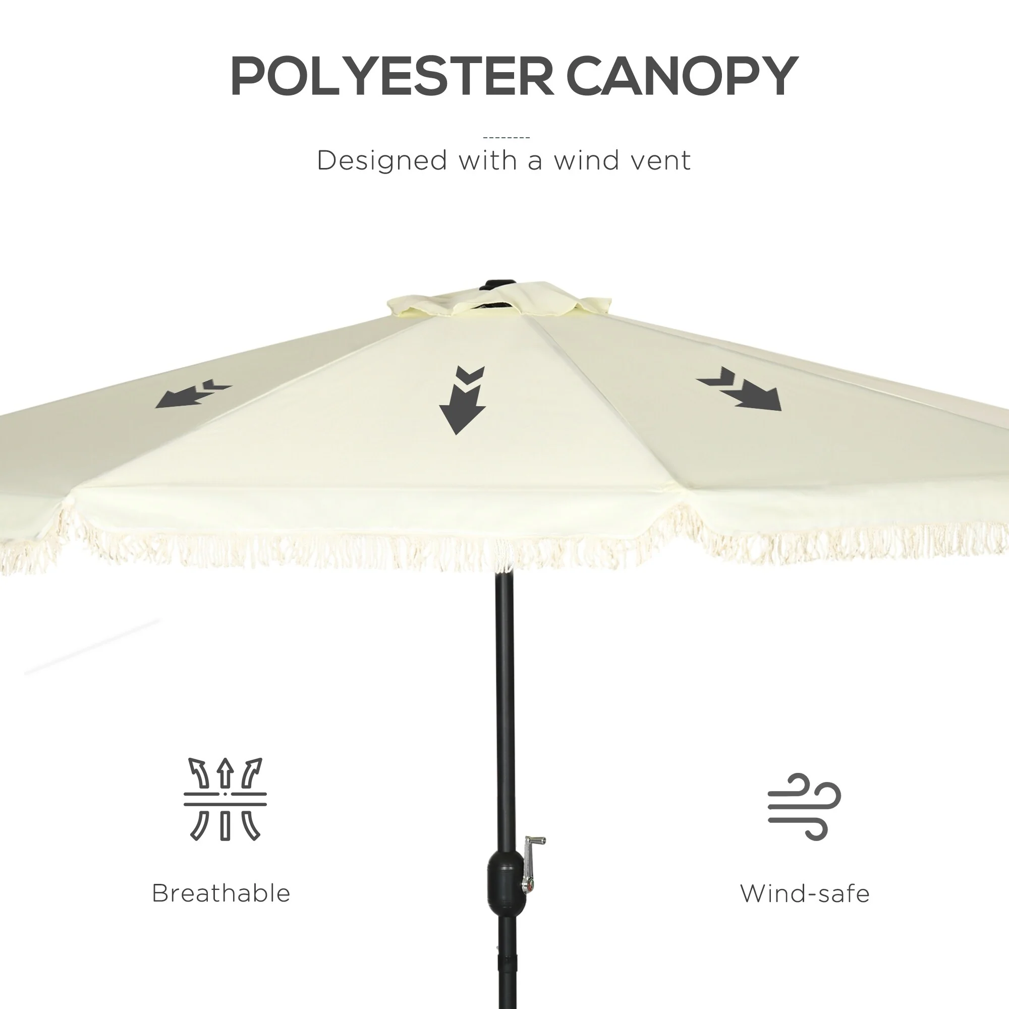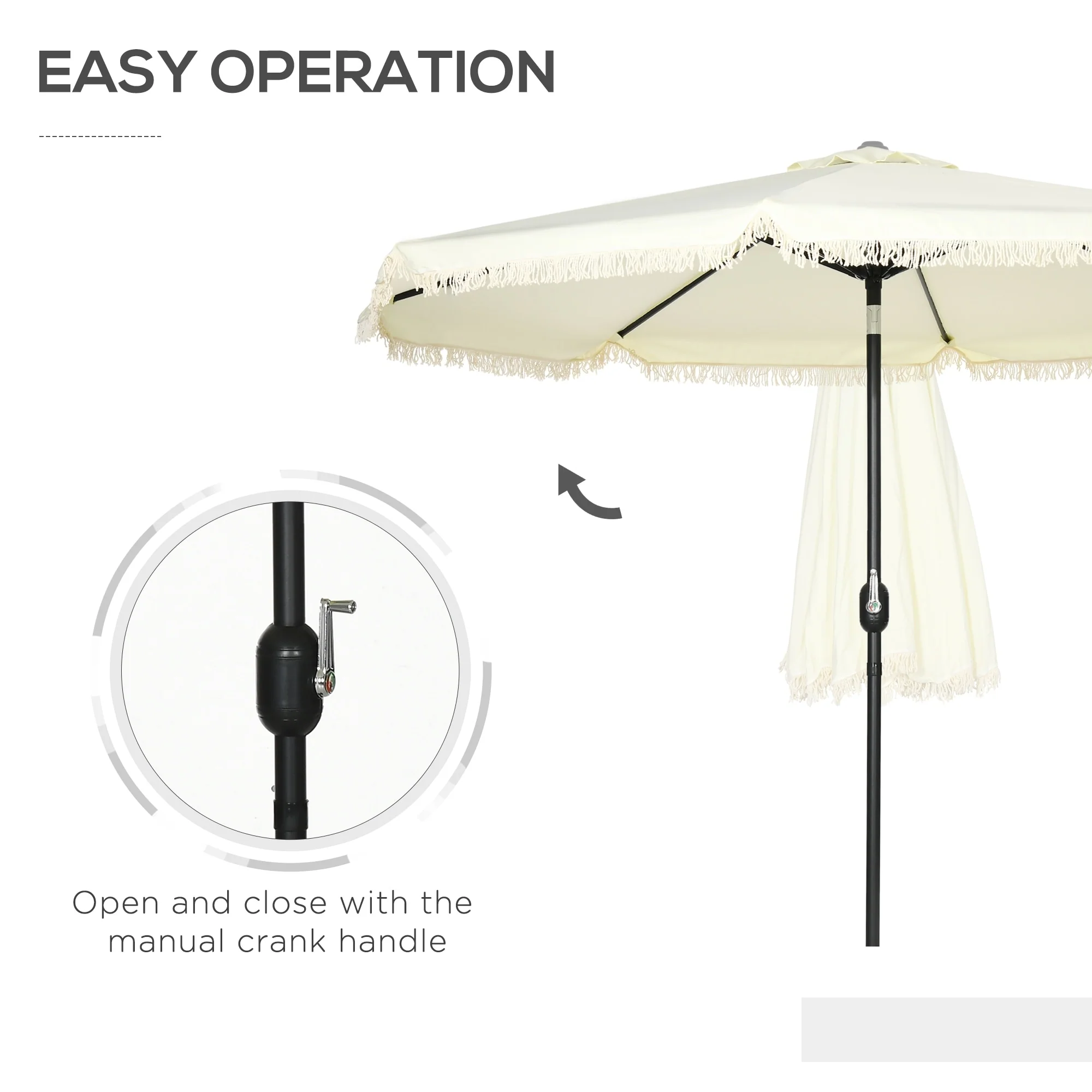 Outsunny 9ft Patio Umbrella with Push Button Tilt and Crank, Ruffled Outdoor Market Table Umbrella with Tassles and 8 Ribs