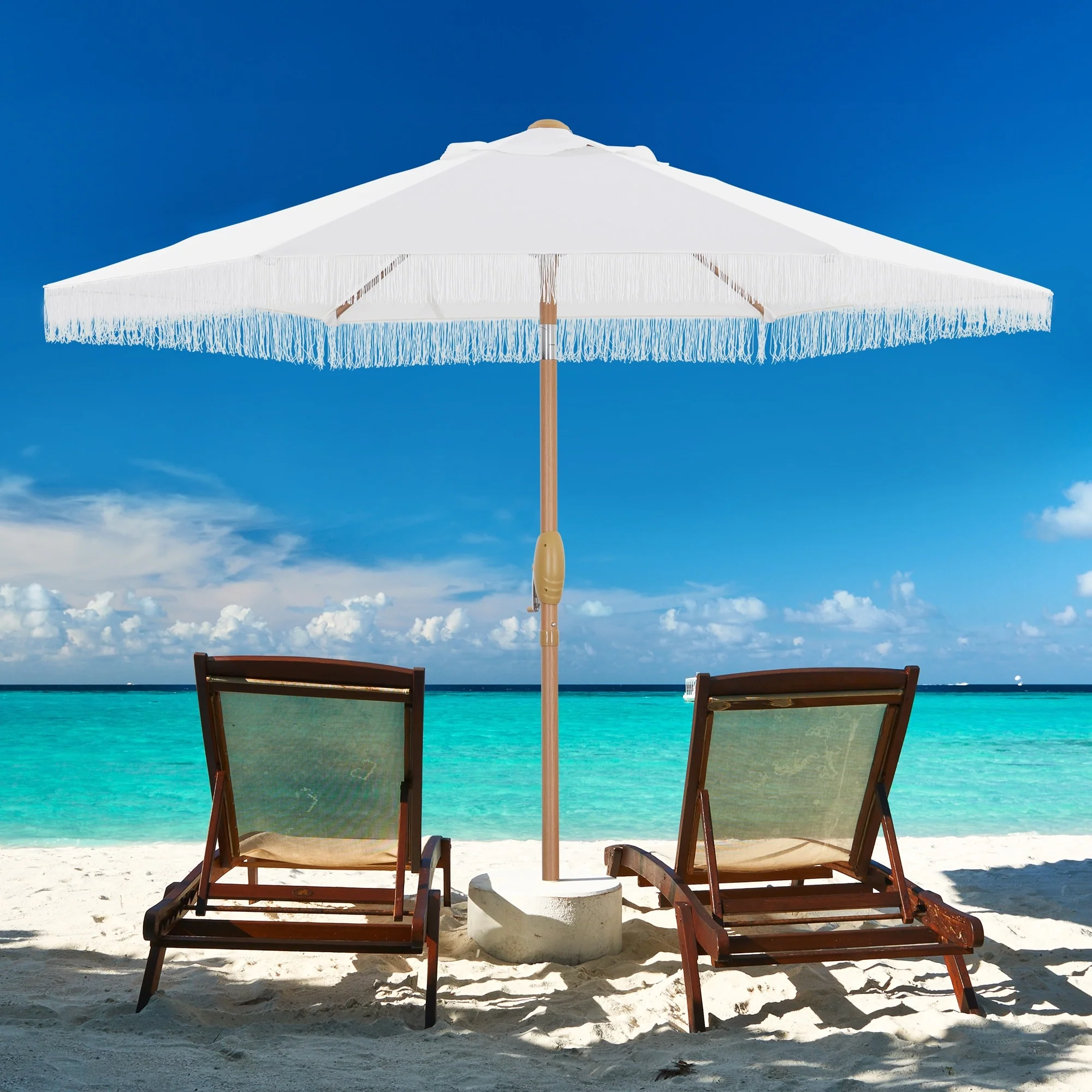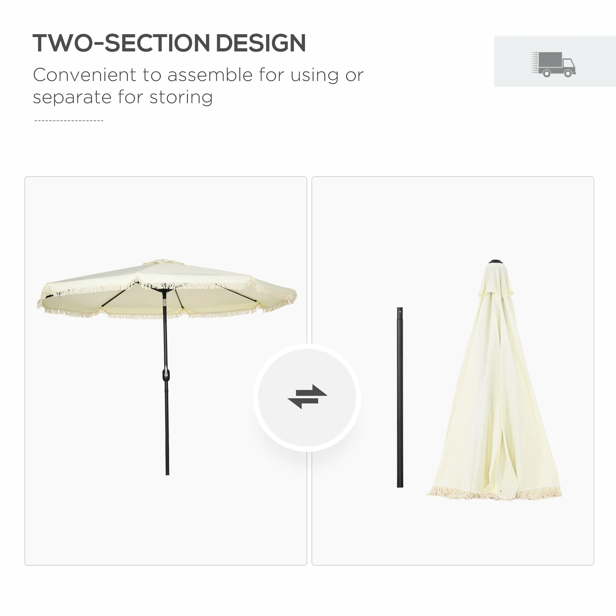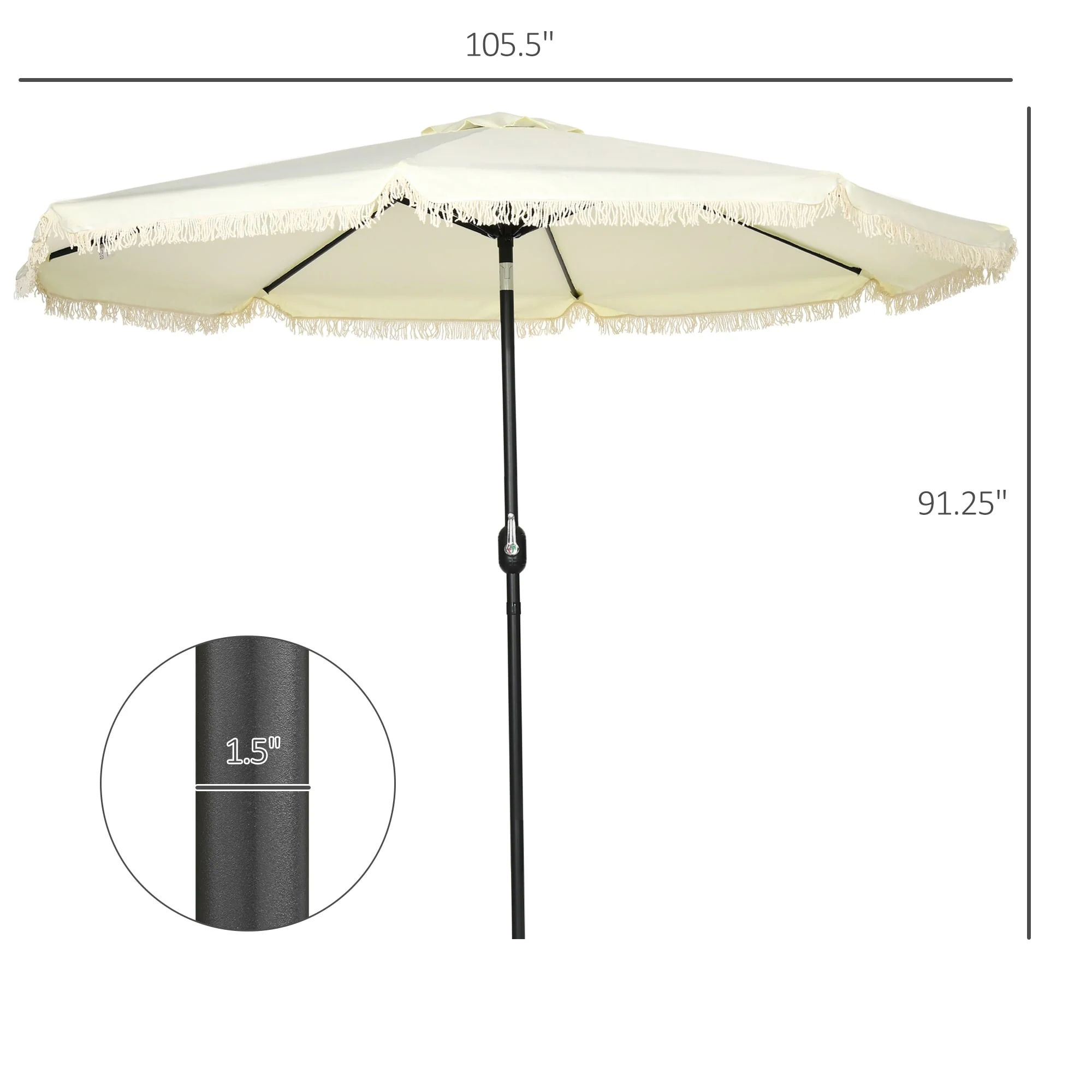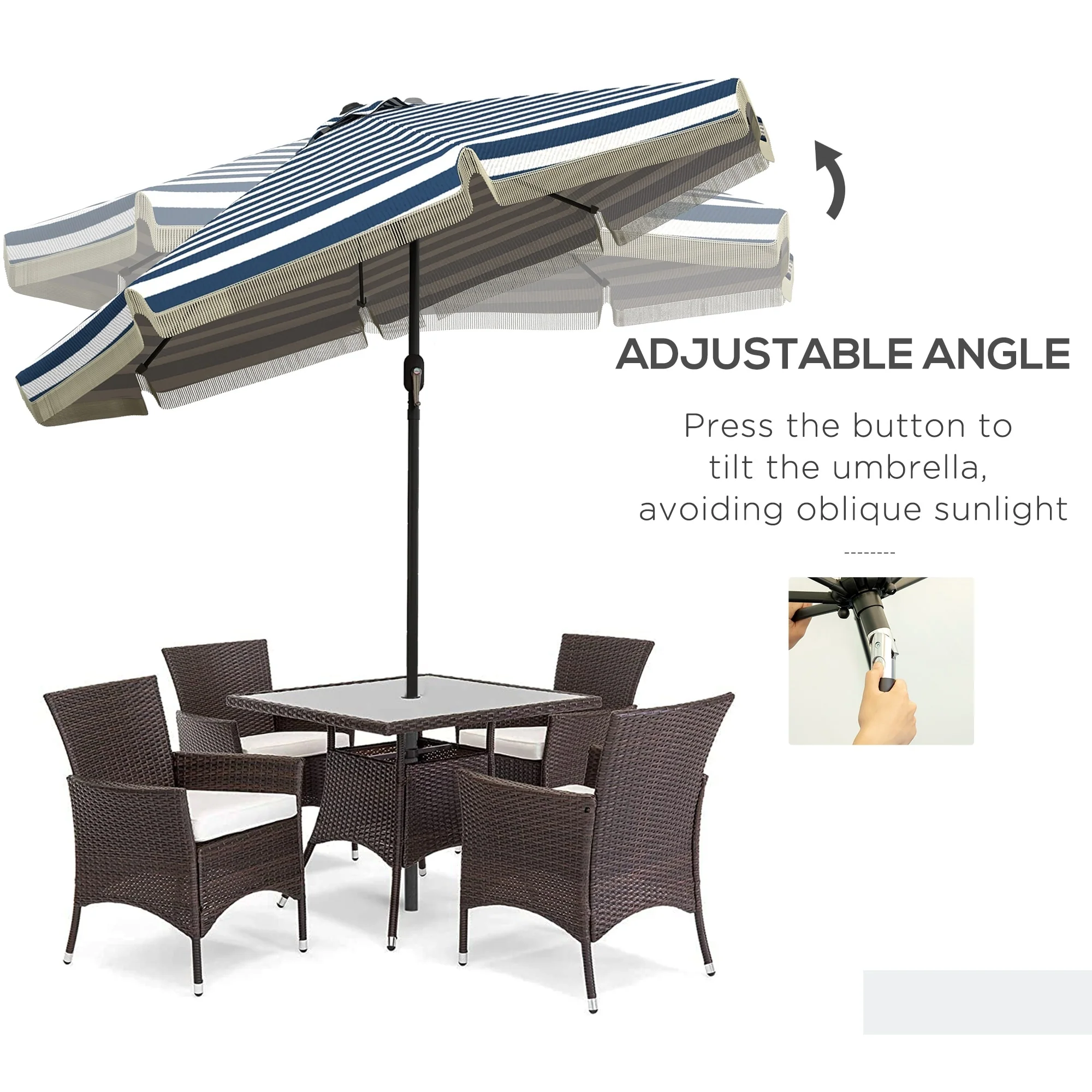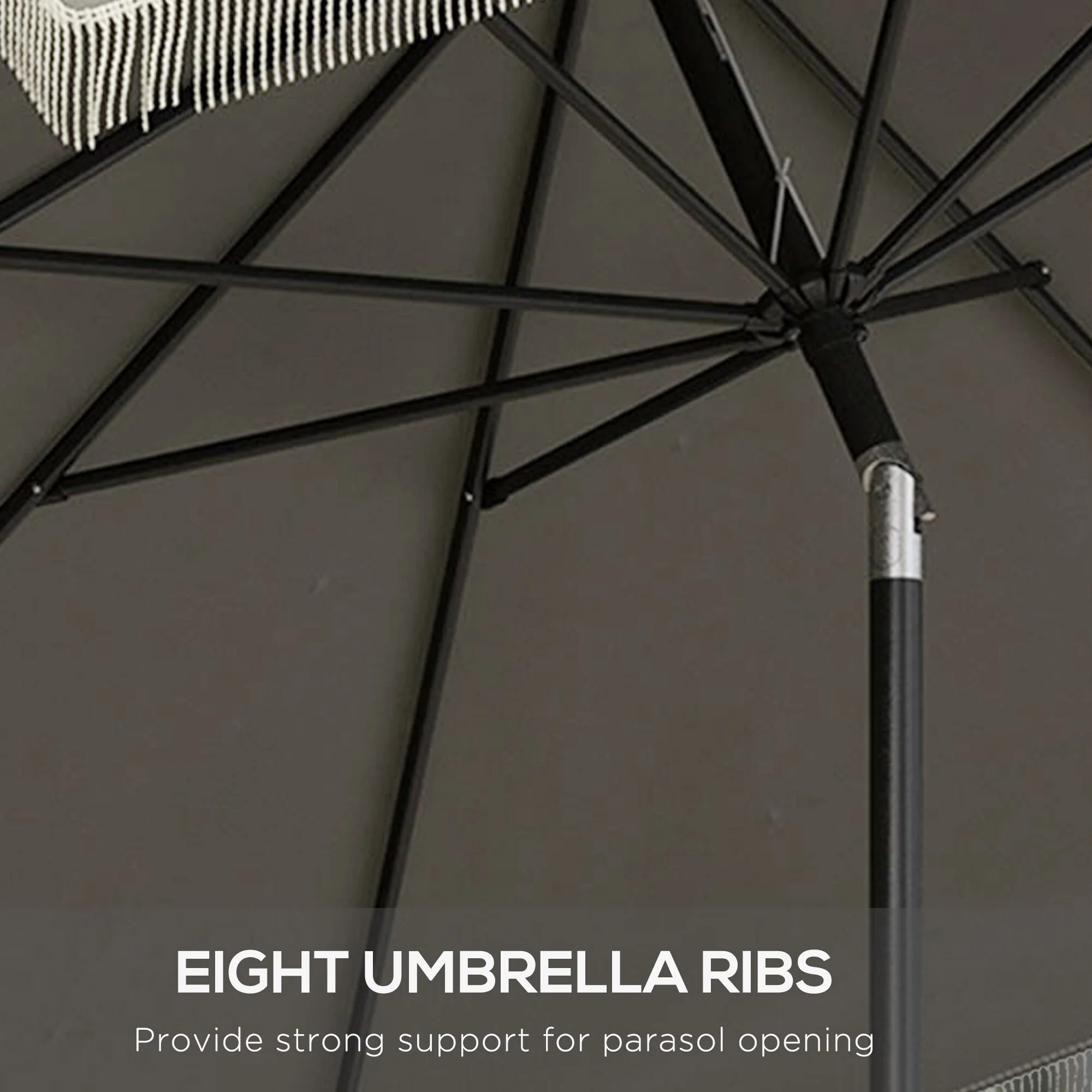 Outsunny 9ft Patio Umbrella with Push Button Tilt and Crank, Ruffled Outdoor Market Table Umbrella with Tassles and 8 Ribs
