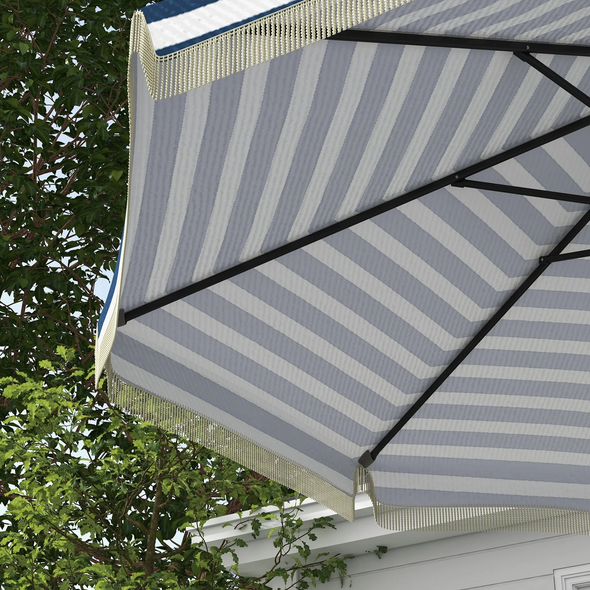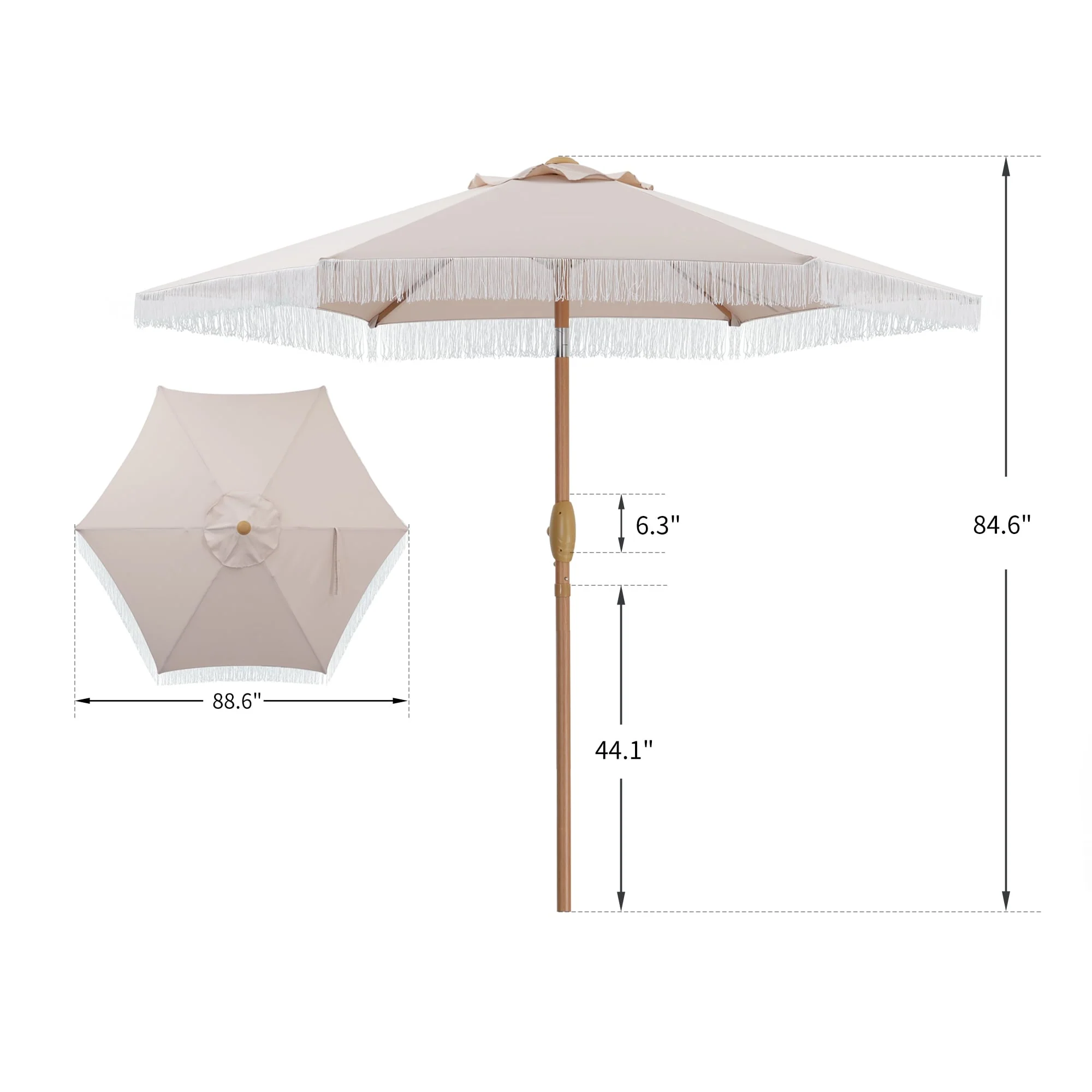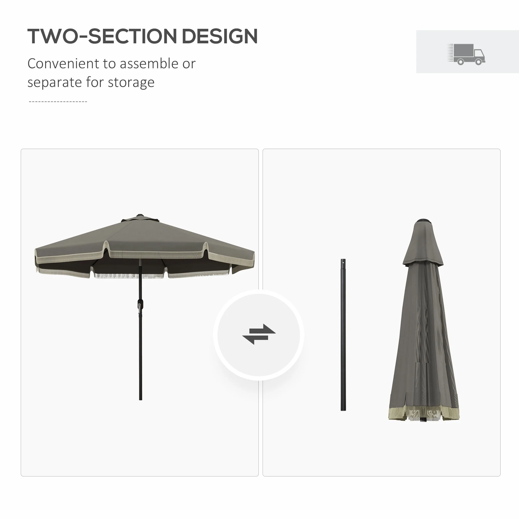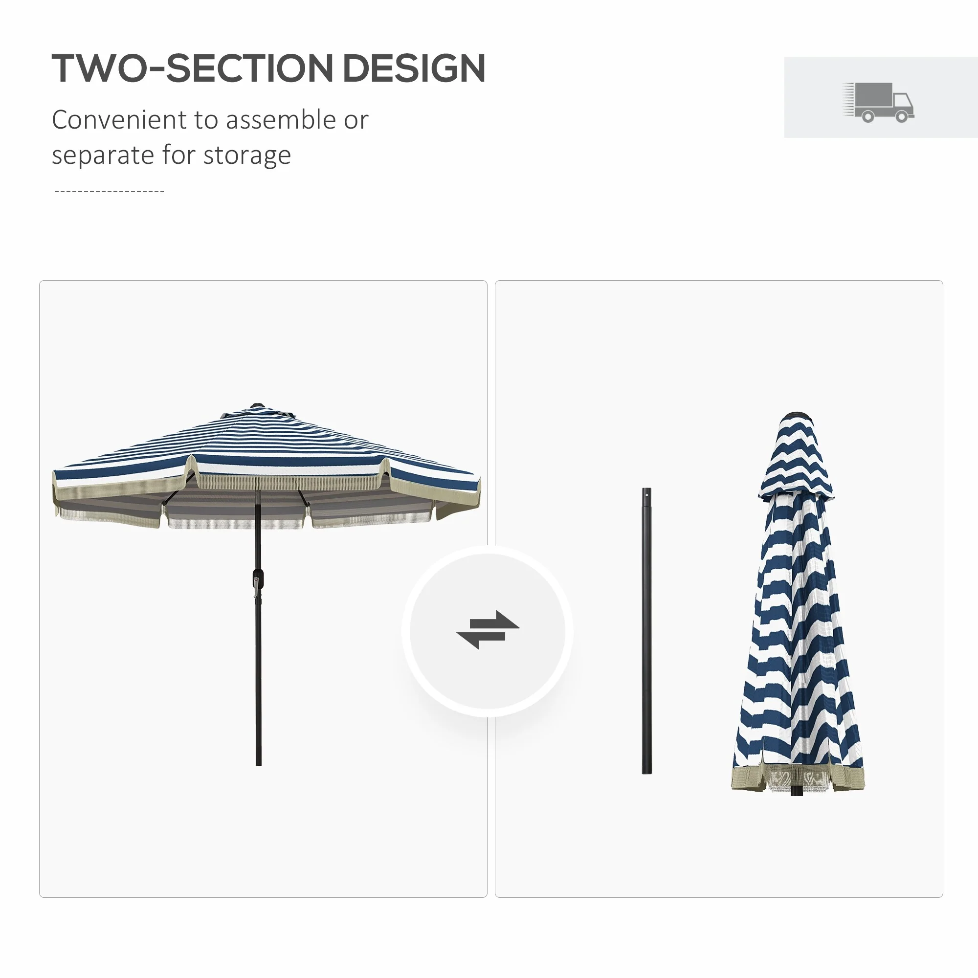 Outsunny 9ft Patio Umbrella with Push Button Tilt and Crank, Ruffled Outdoor Market Table Umbrella with Tassles and 8 Ribs