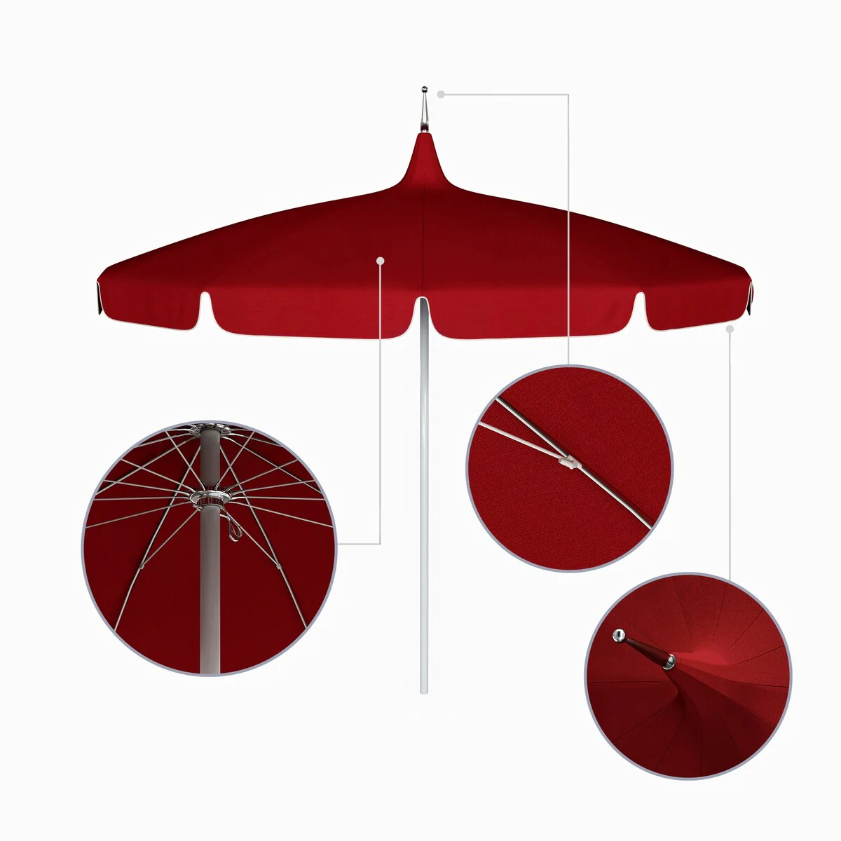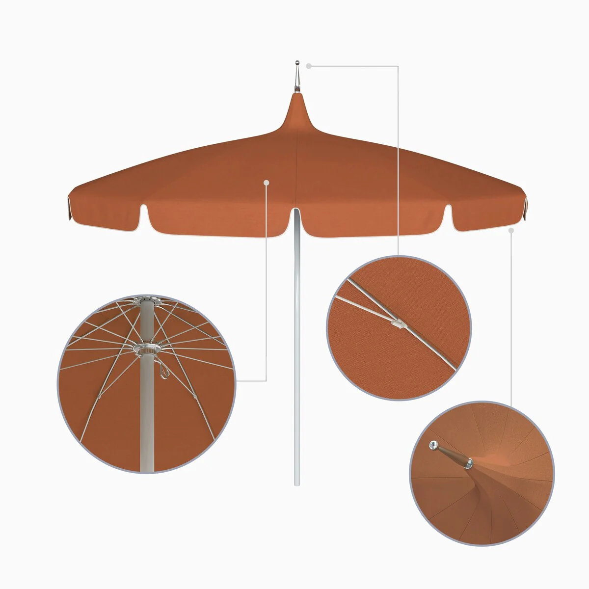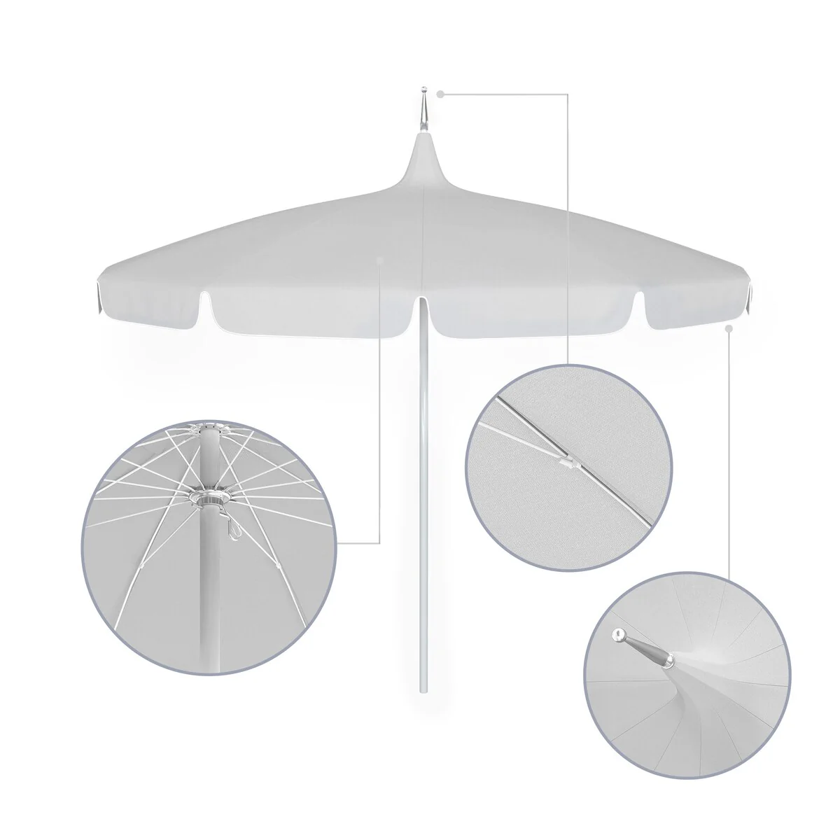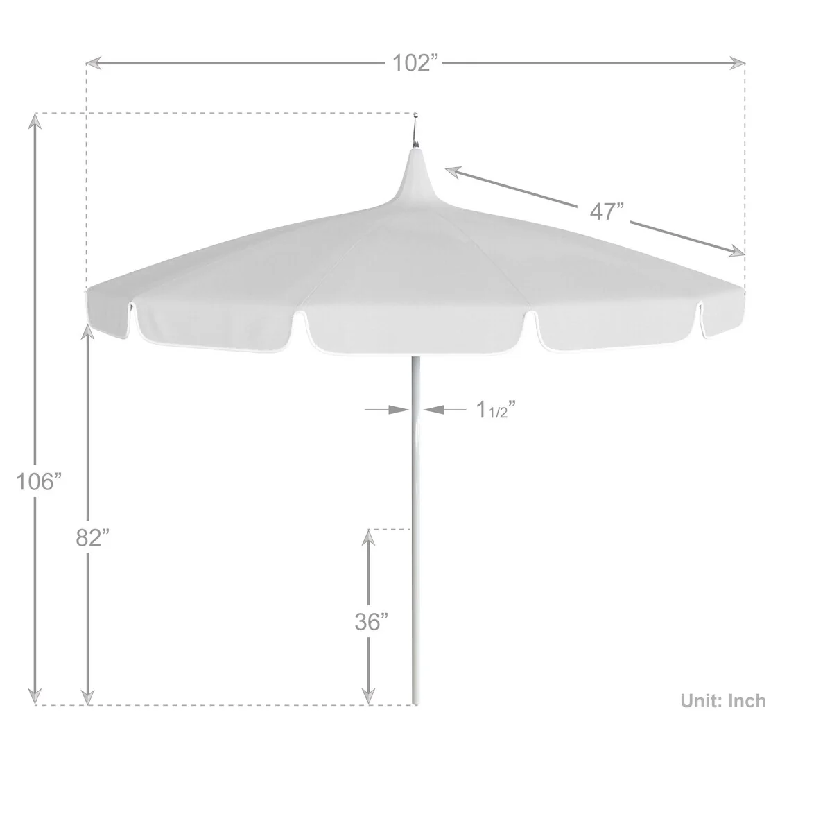 California Umbrella 85' Classic Pagoda Series Patio Umbrella With White Aluminum Pole Push Lift Sunbrella