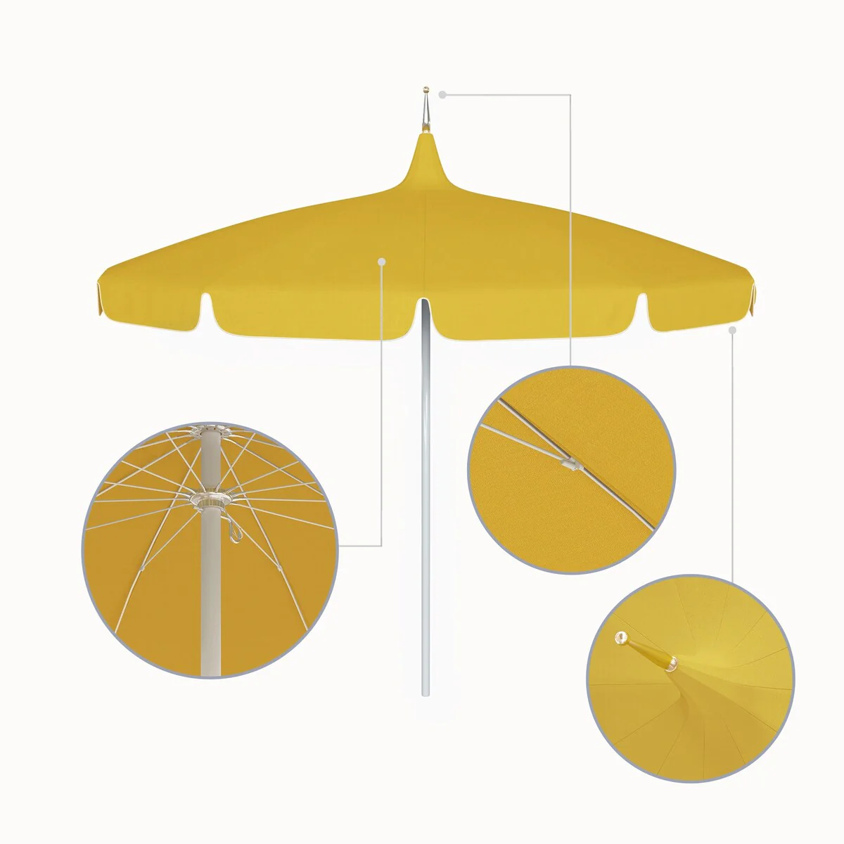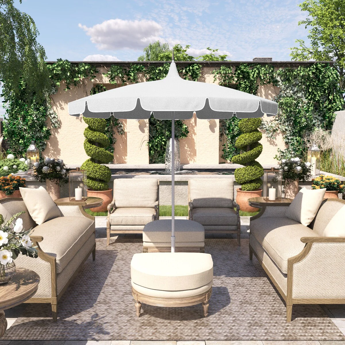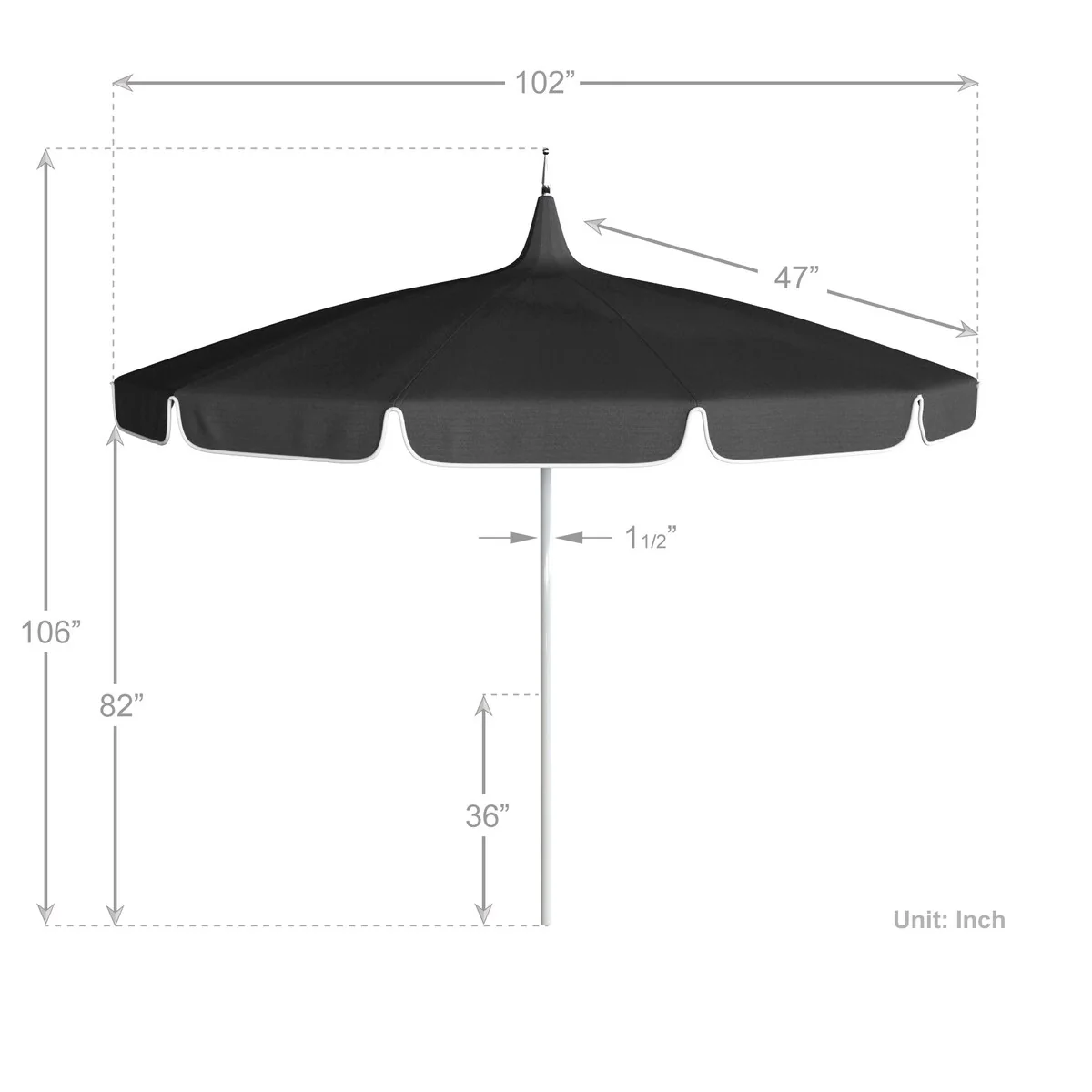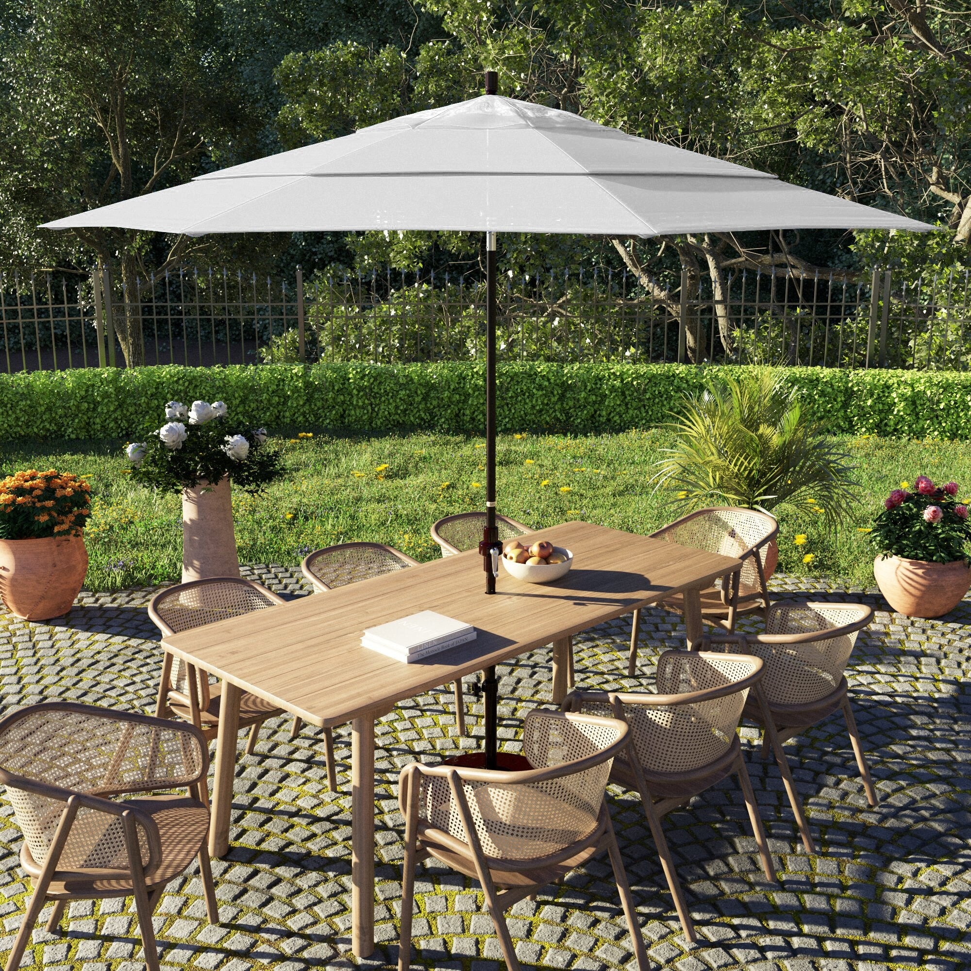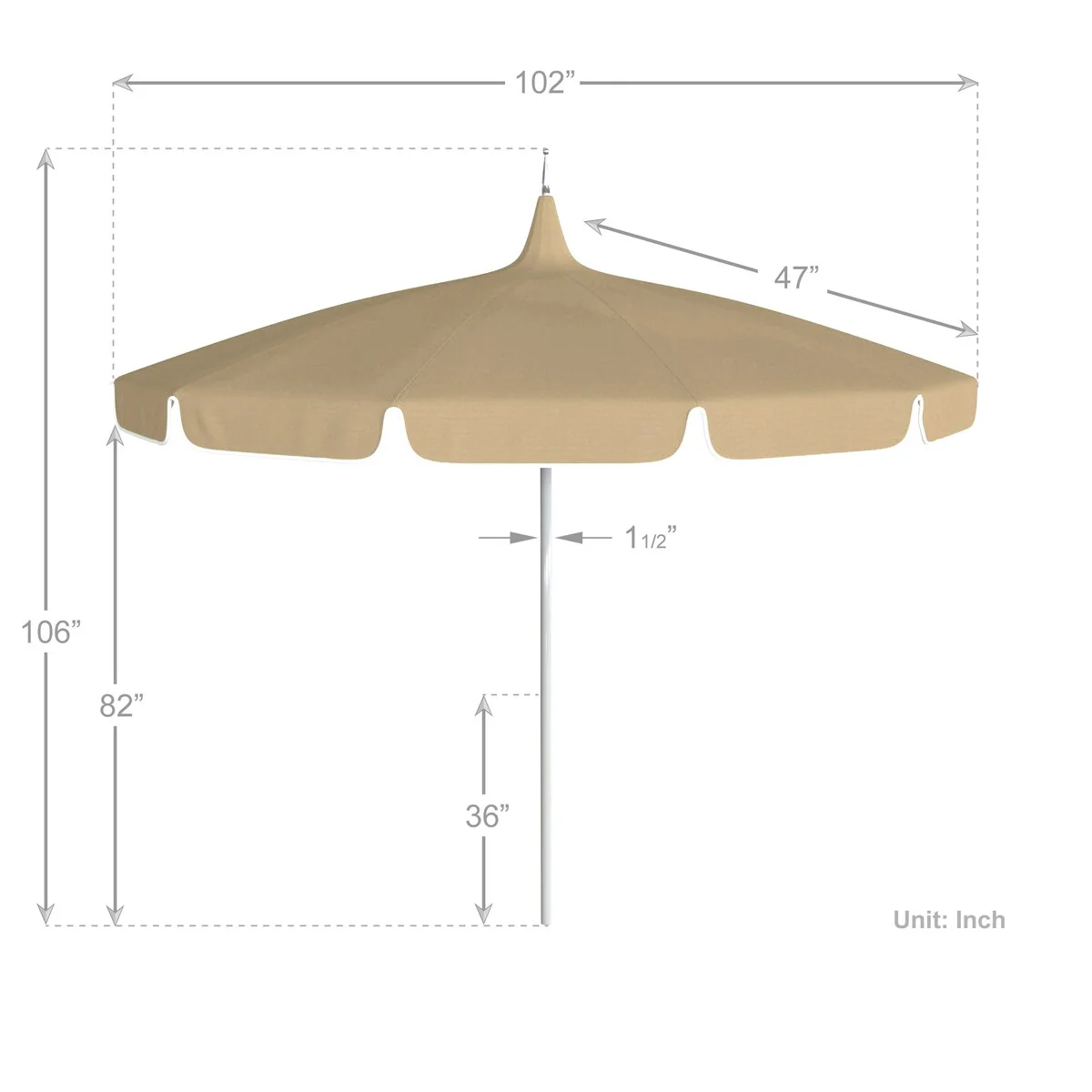 California Umbrella 85' Classic Pagoda Series Patio Umbrella With White Aluminum Pole Push Lift Sunbrella