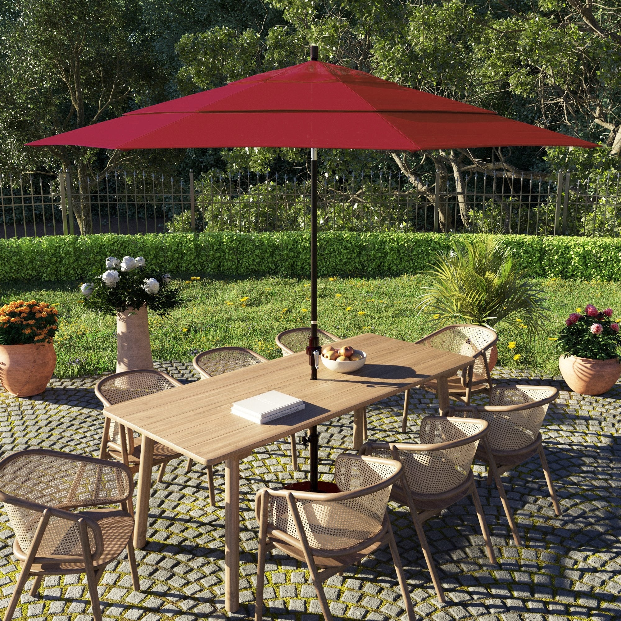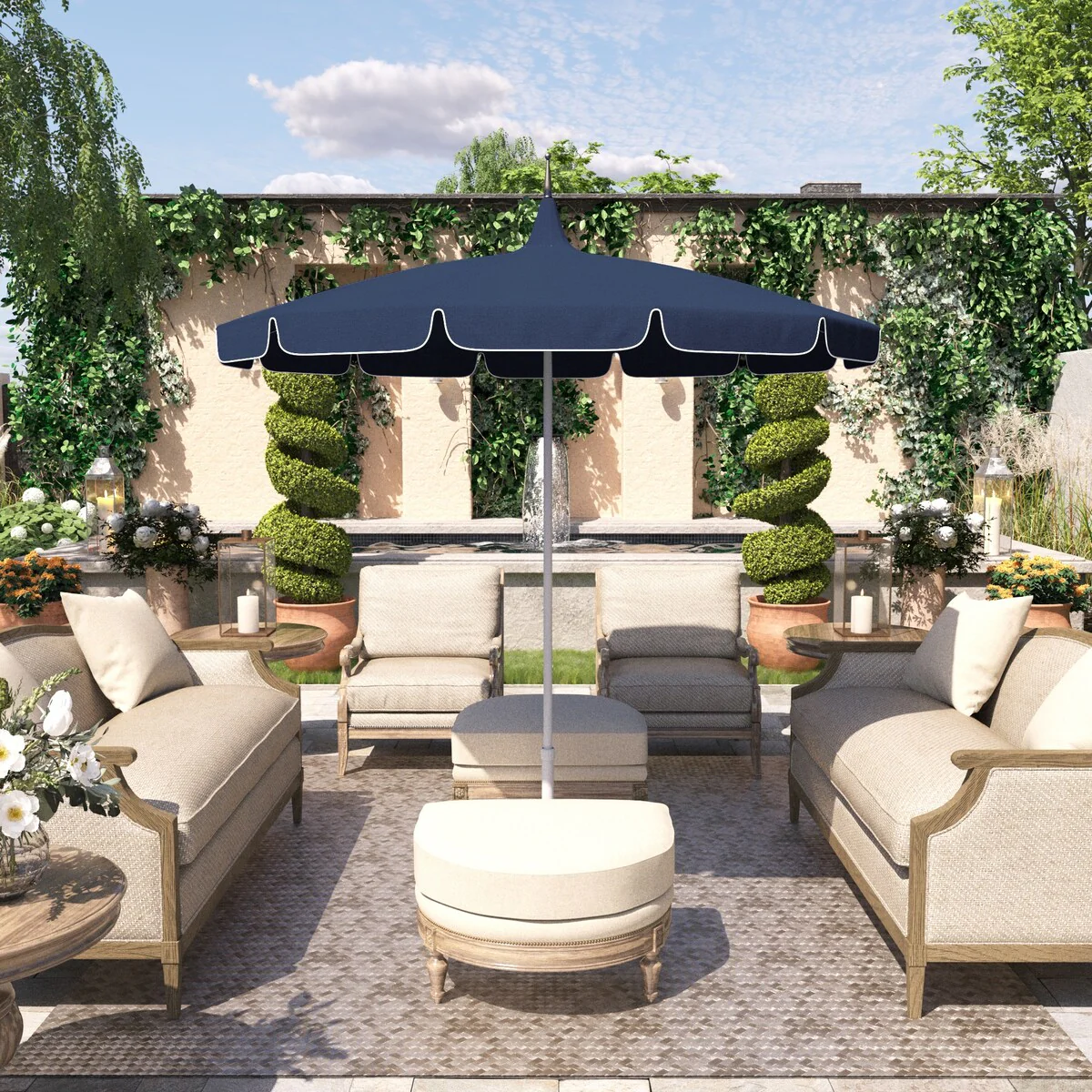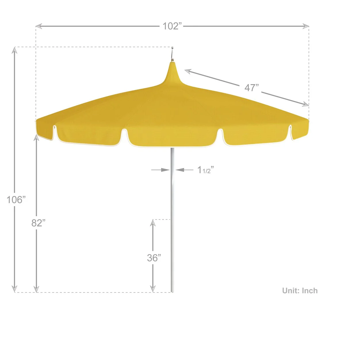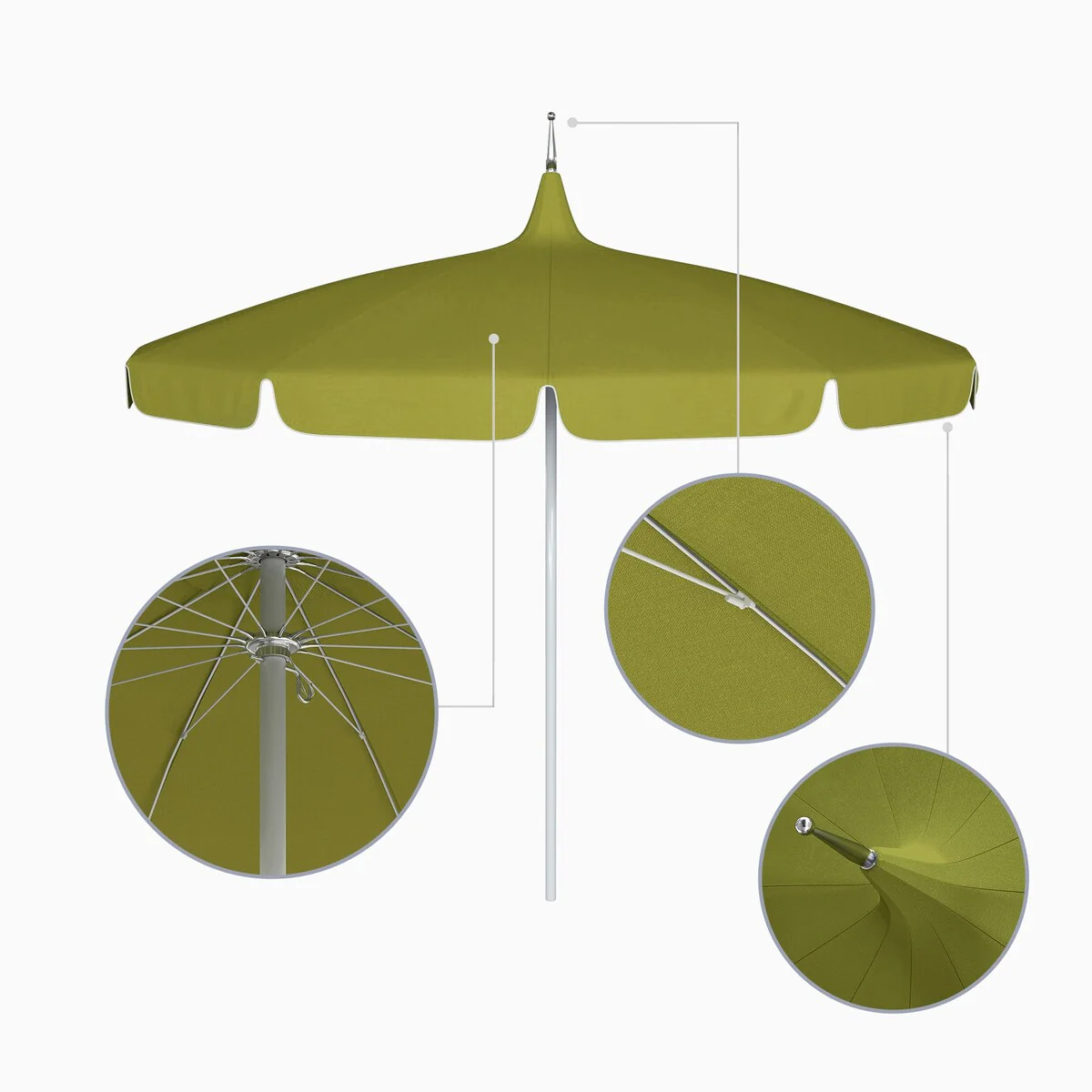 California Umbrella 85' Classic Pagoda Series Patio Umbrella With White Aluminum Pole Push Lift Sunbrella