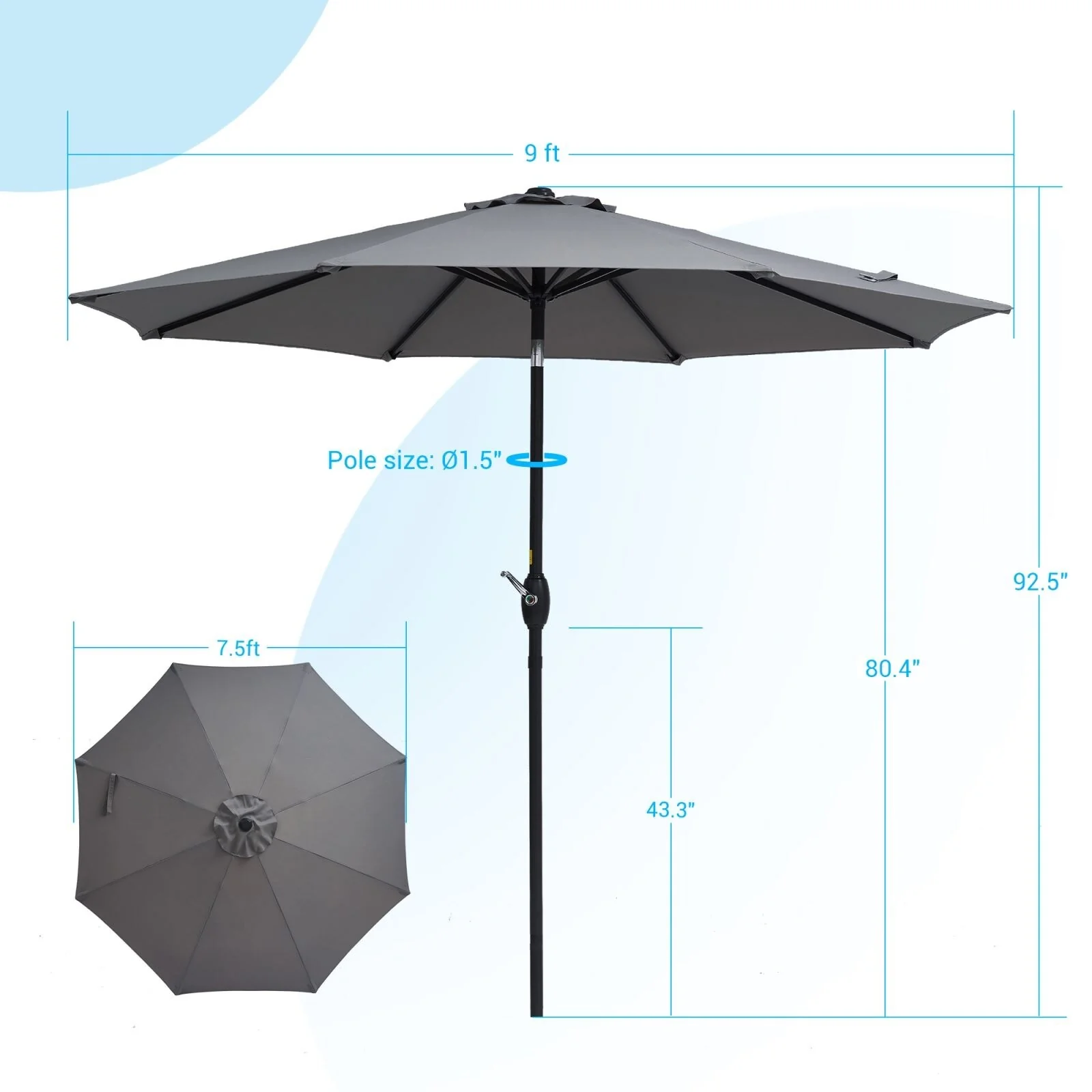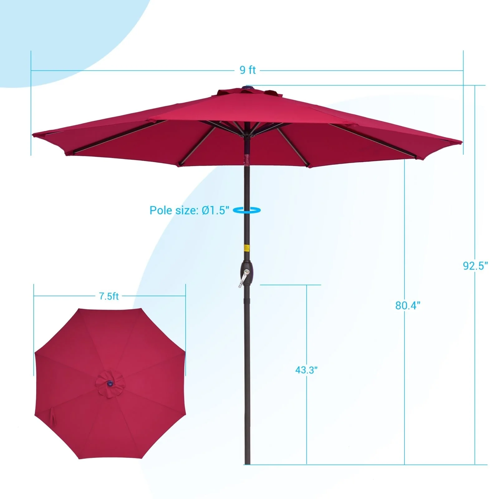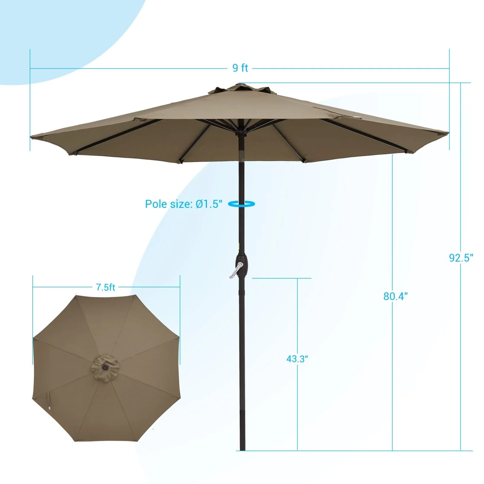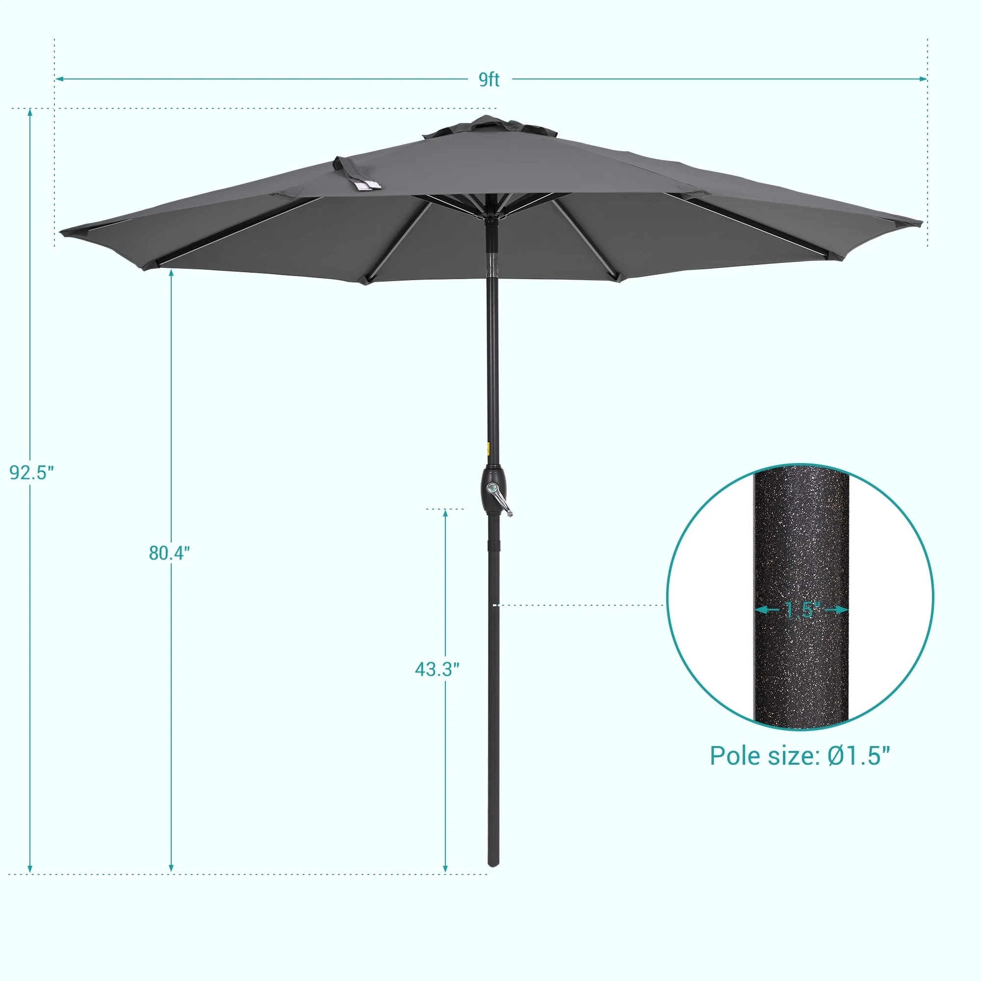 Bonosuki 9ft Patio Umbrella Market Table Umbrella with Tilt and Crank