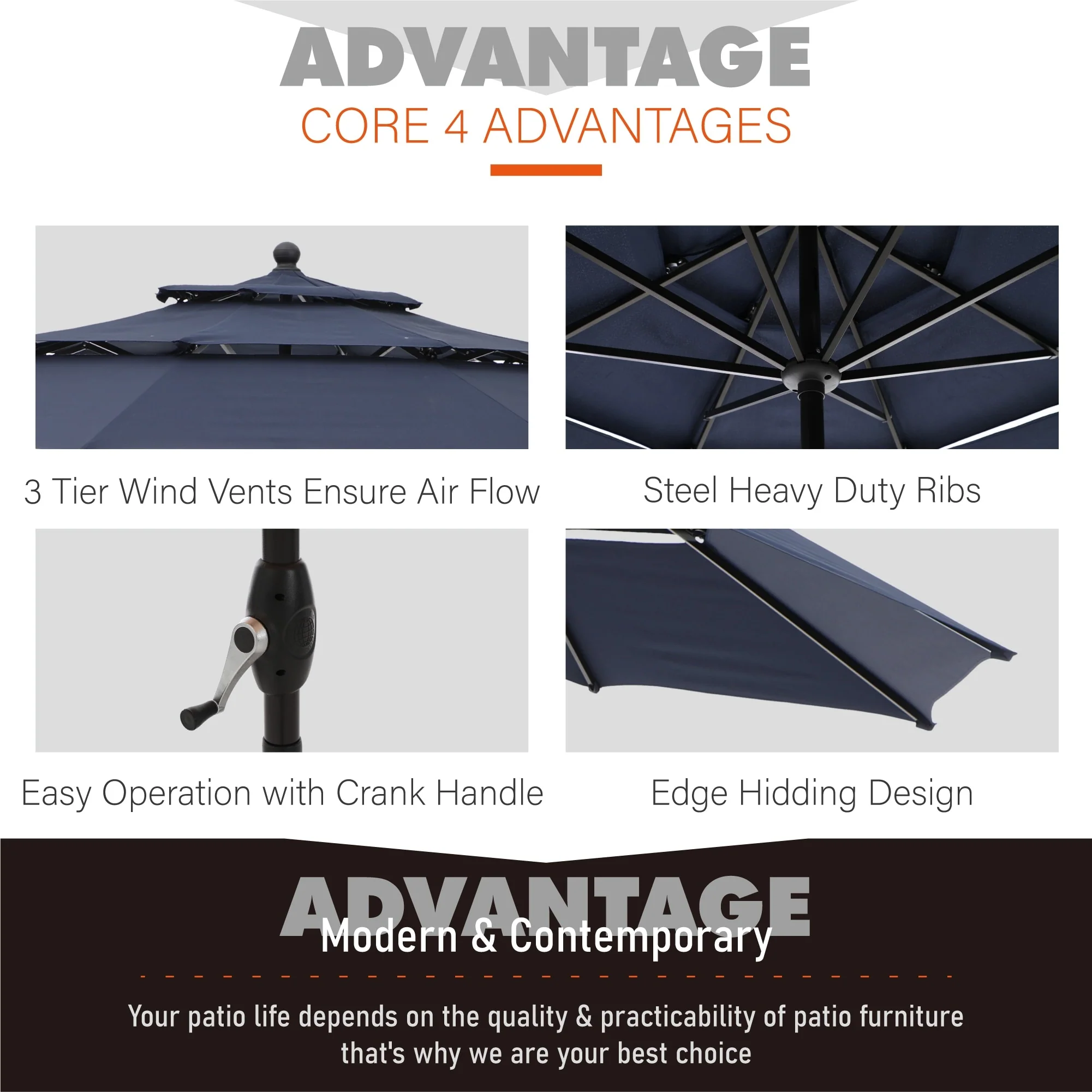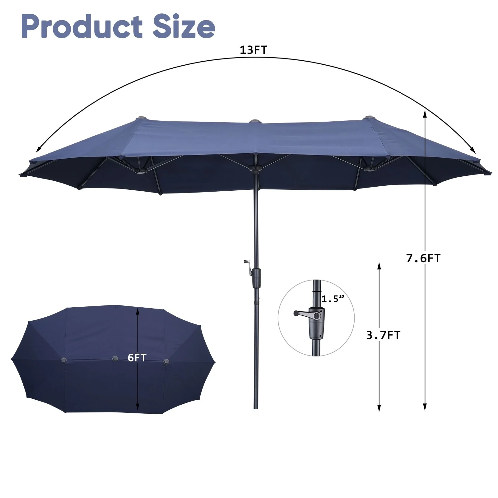 Ainfox 13Ft Large Outdoor Patio Umbrella with Crank Without Base