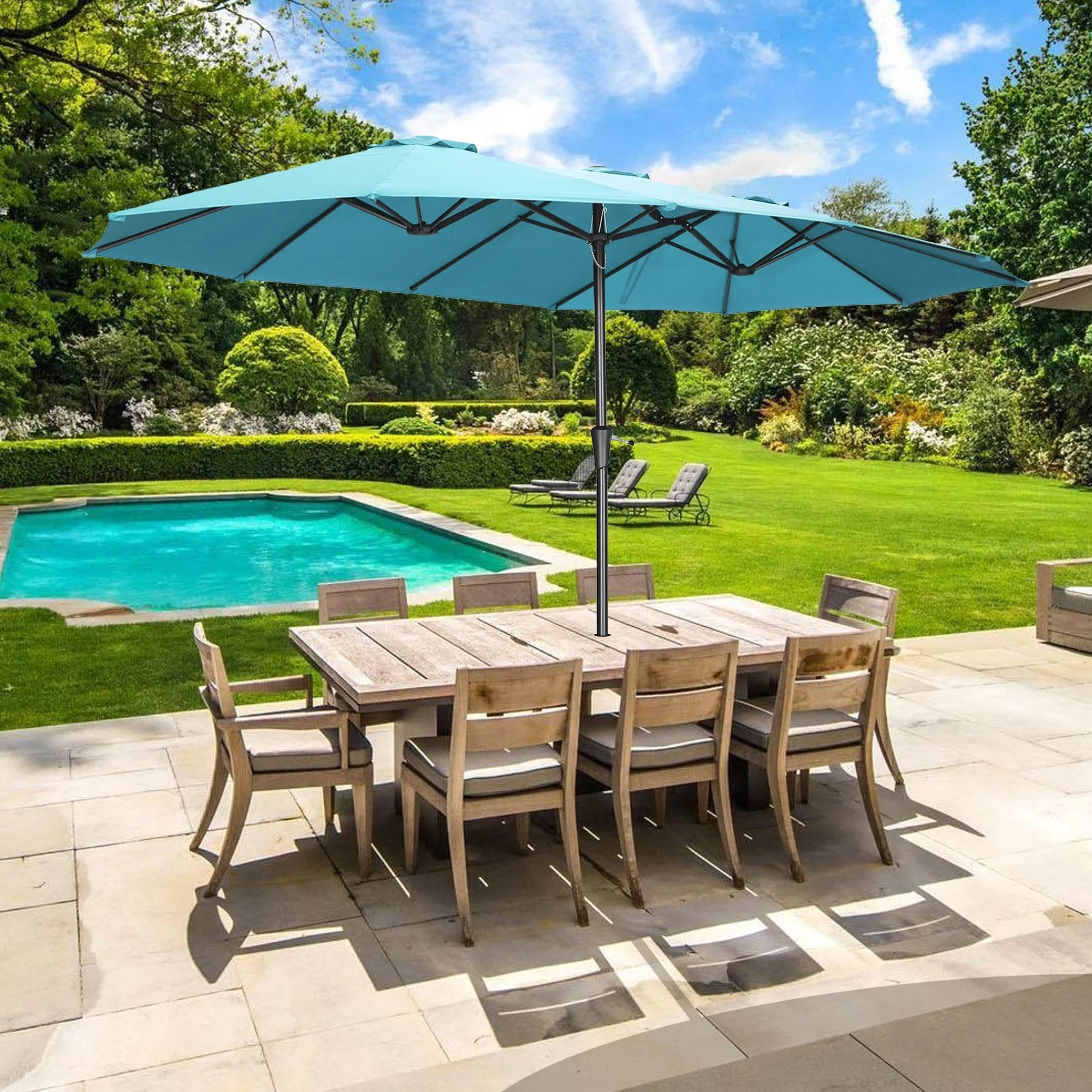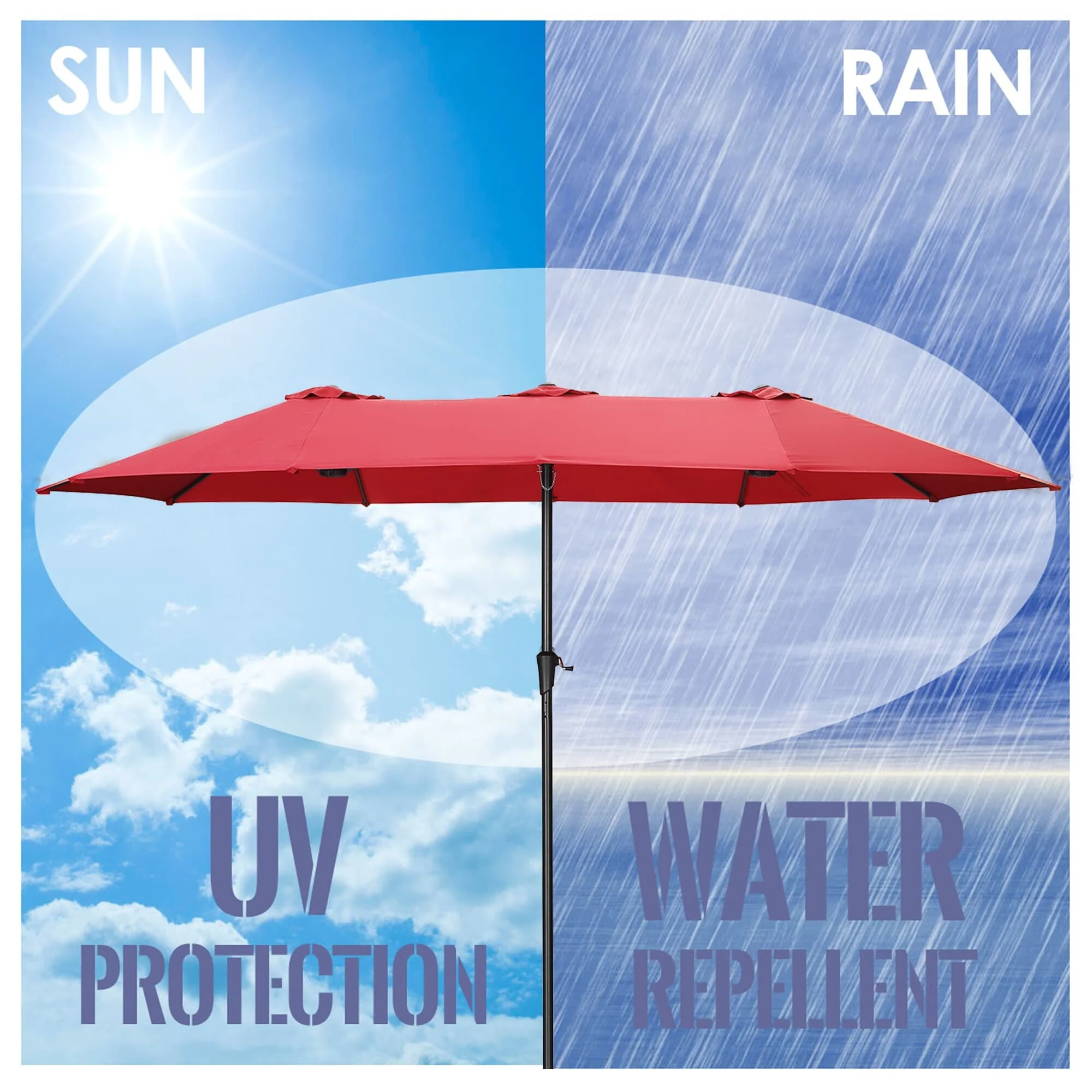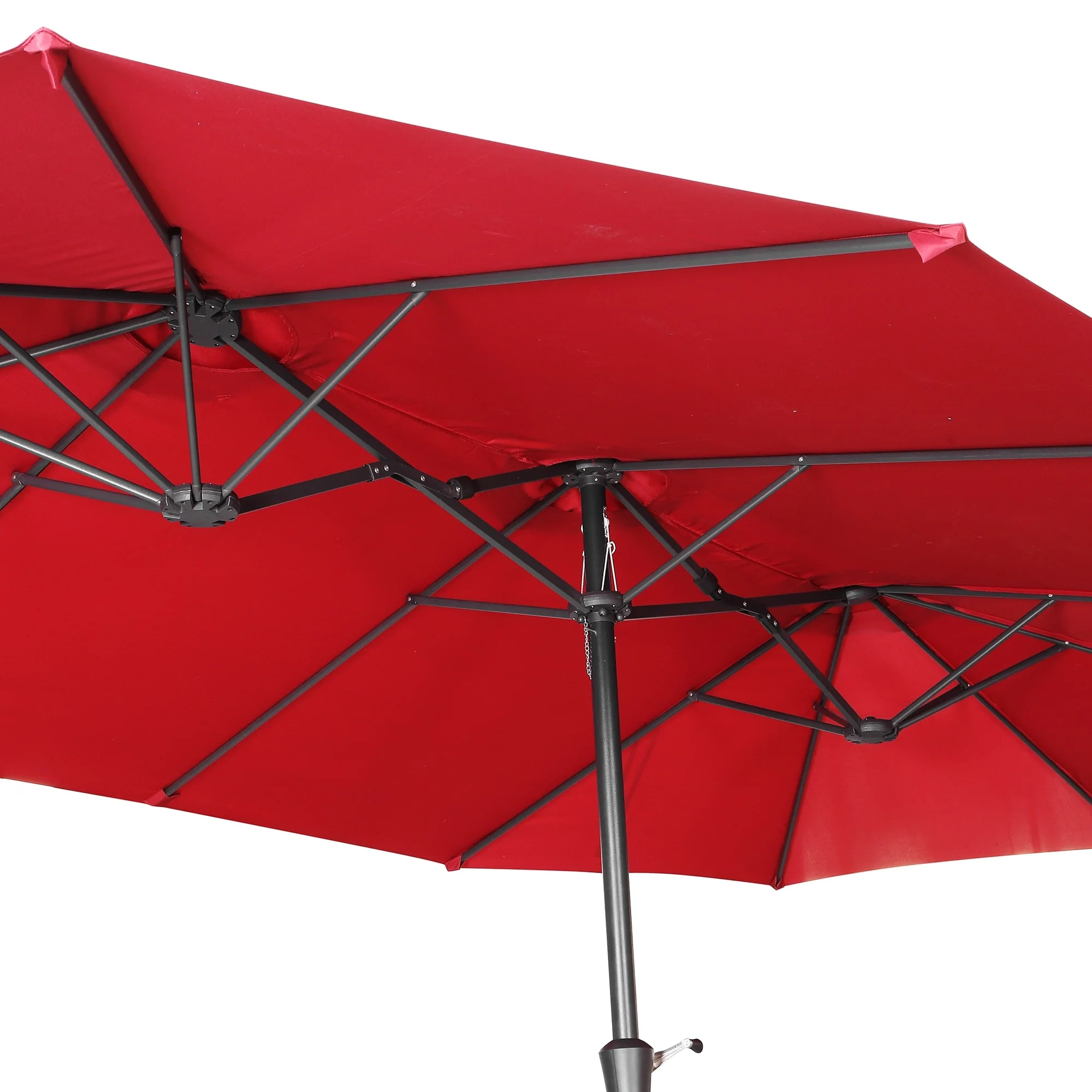 15-foot Rectangular Crank Double-sided Outdoor Market Umbrella Solar LED Lighted Patio Umbrella with Base Included