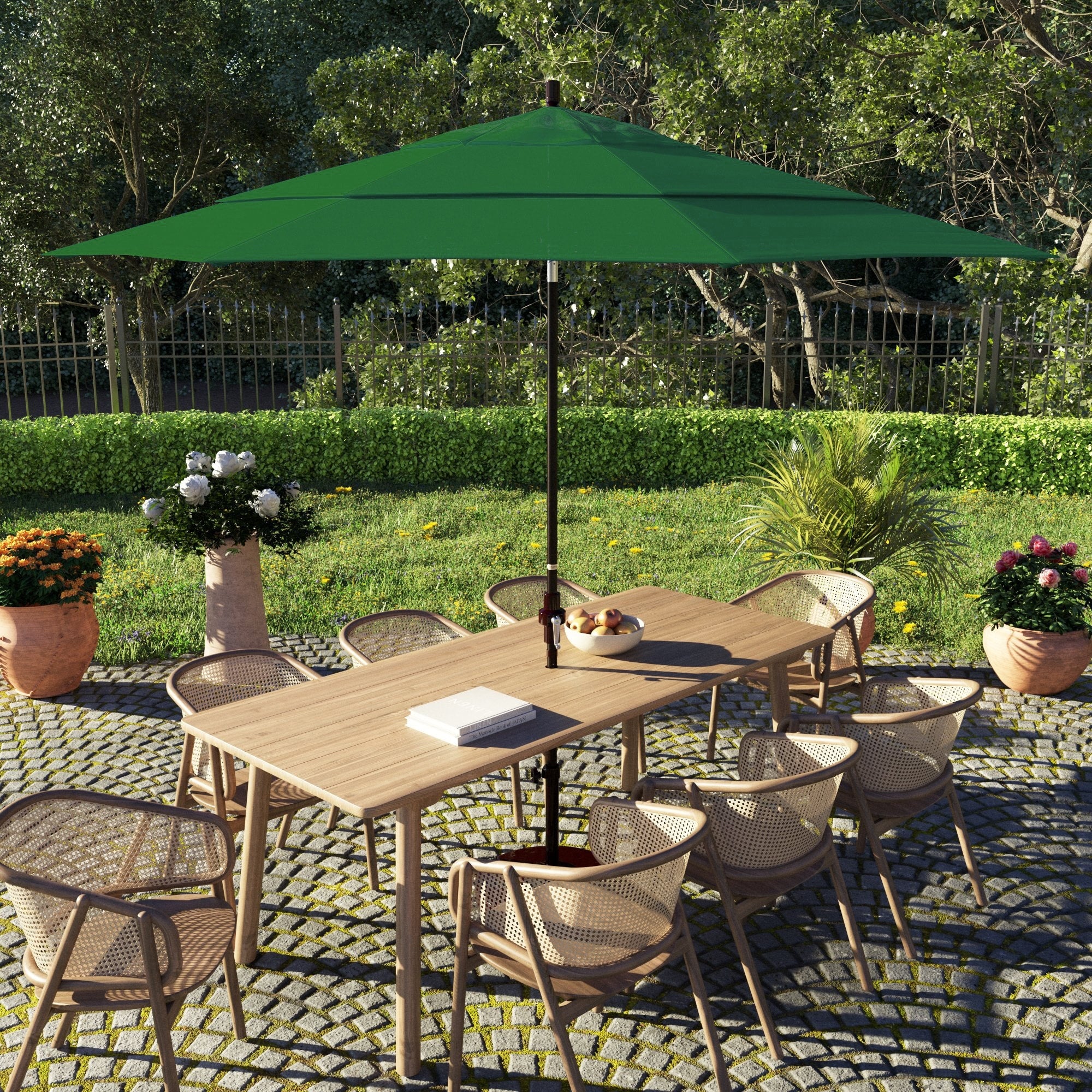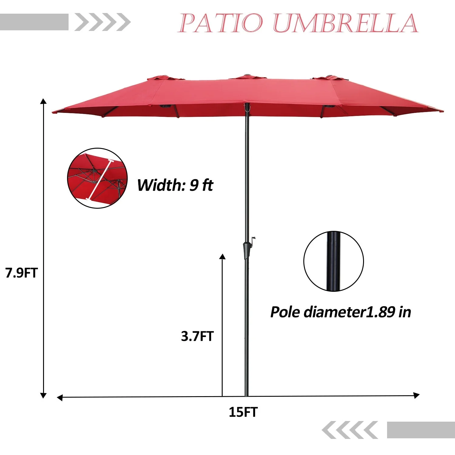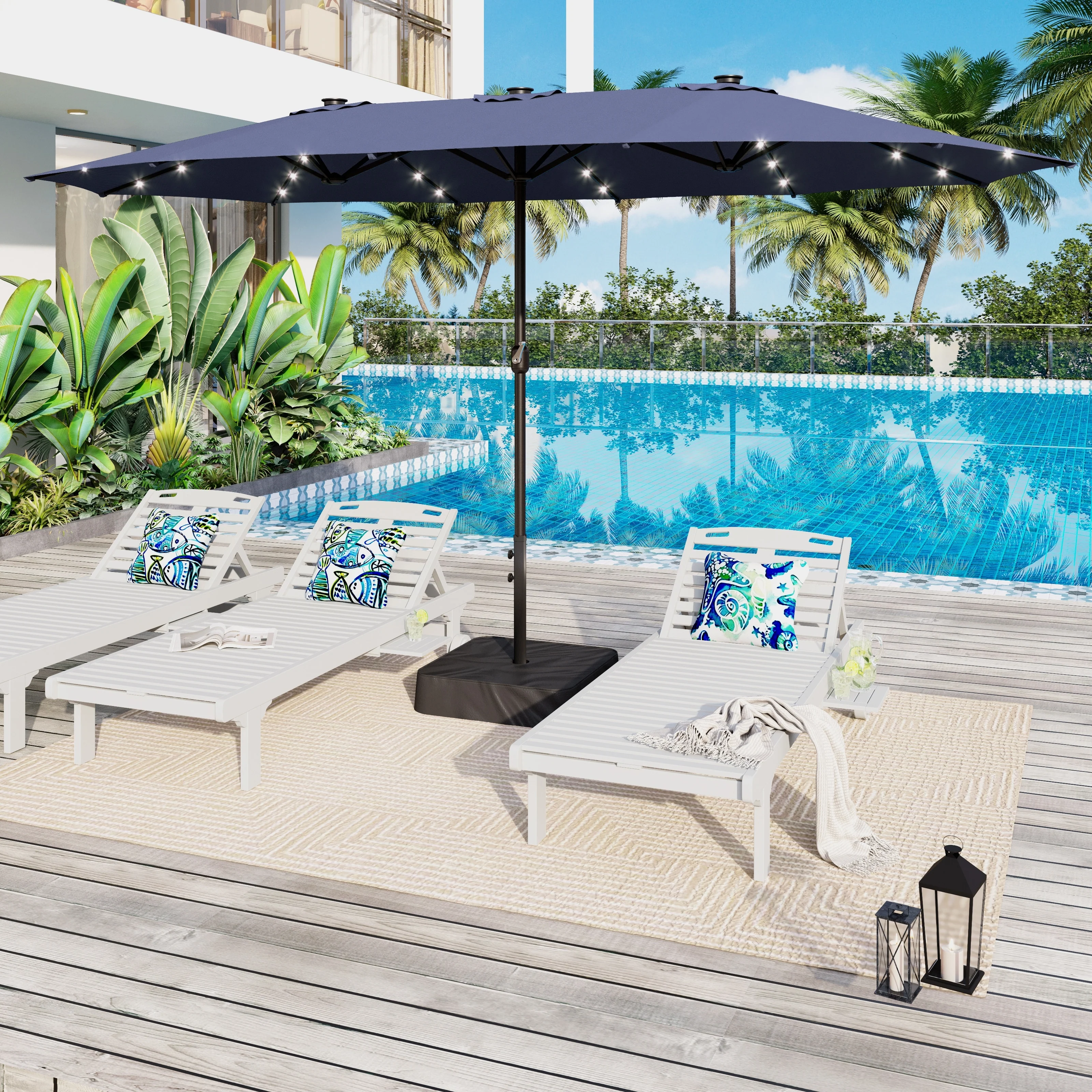15-foot Rectangular Crank Double-sided Outdoor Market Umbrella Solar LED Lighted Patio Umbrella with Base Included