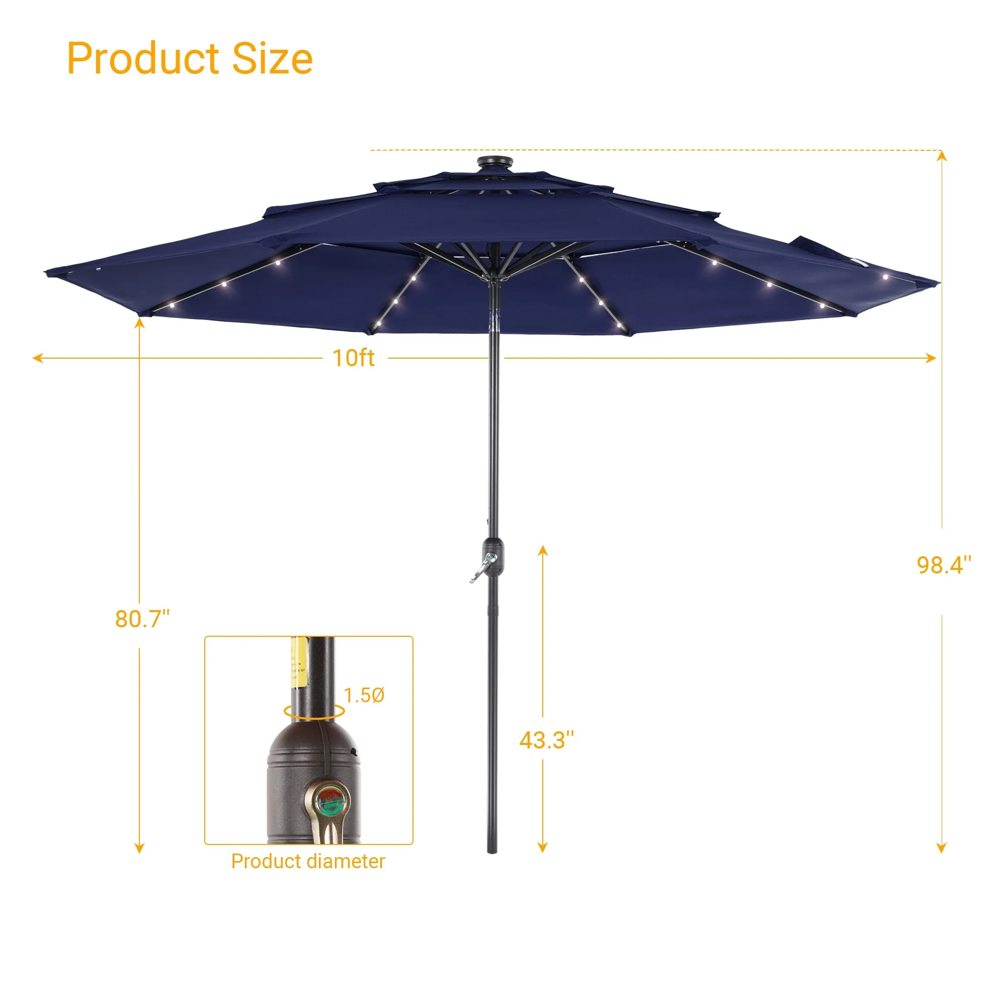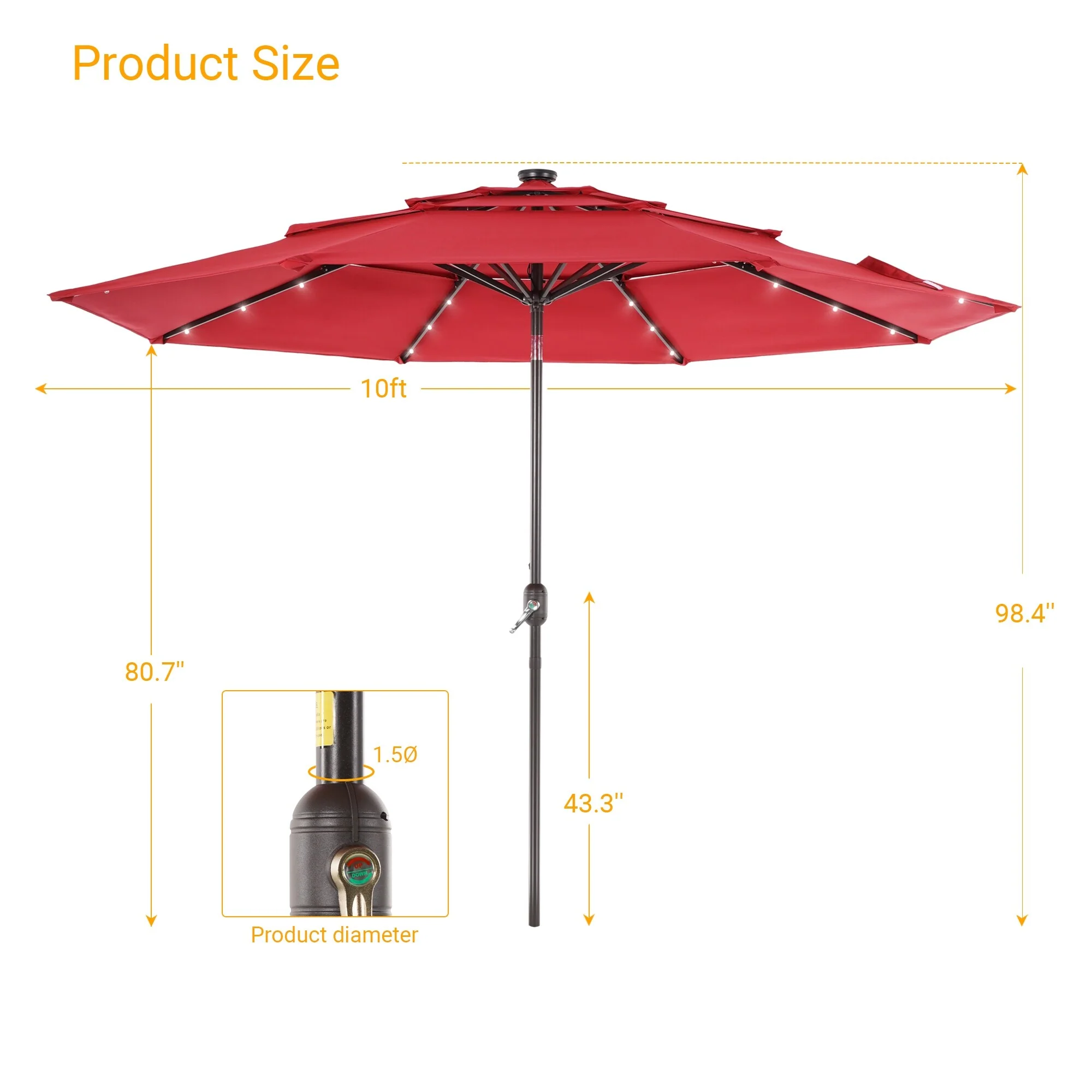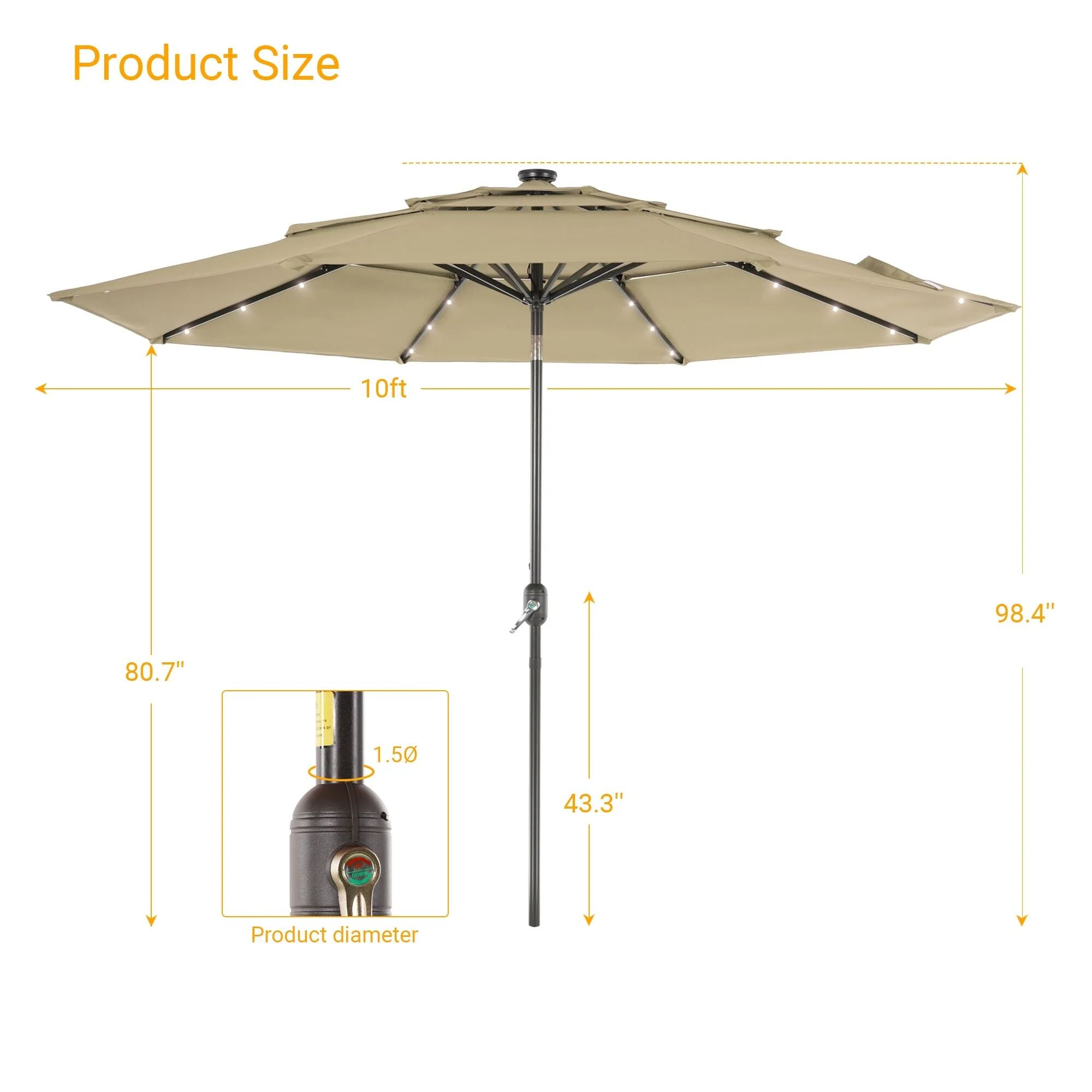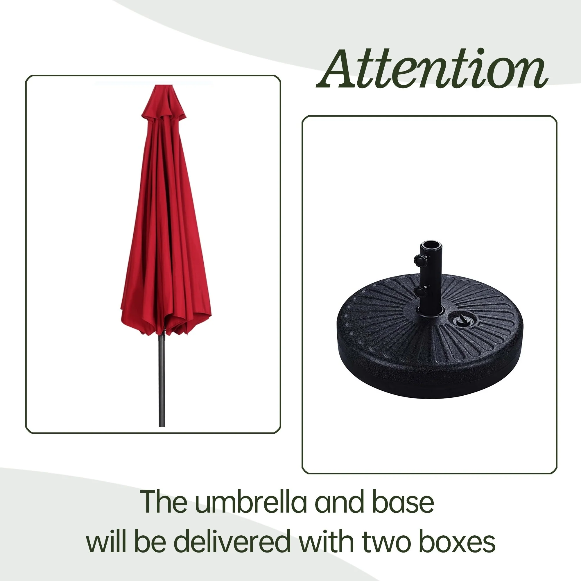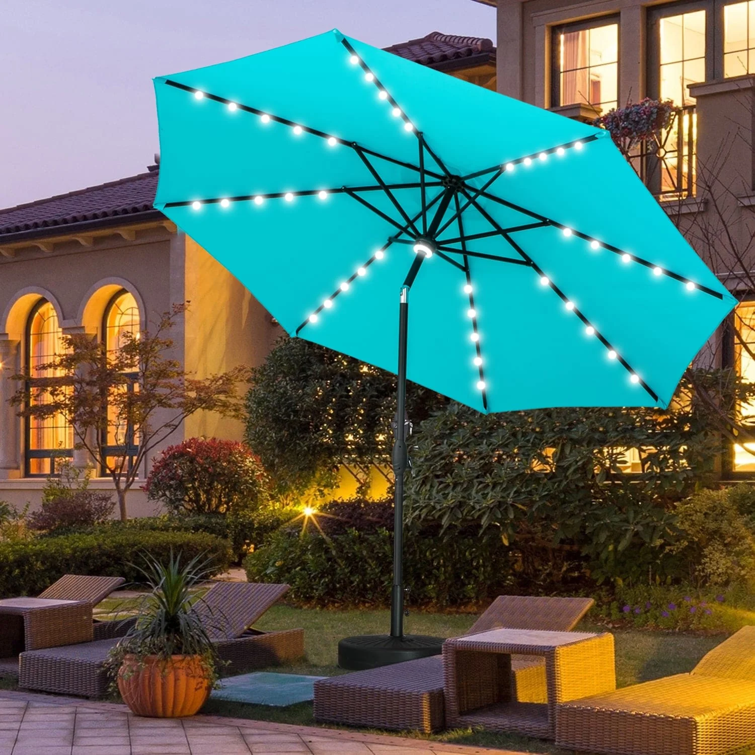 Outdoor Market Umbrella with Base and Solar Powered LED Lights