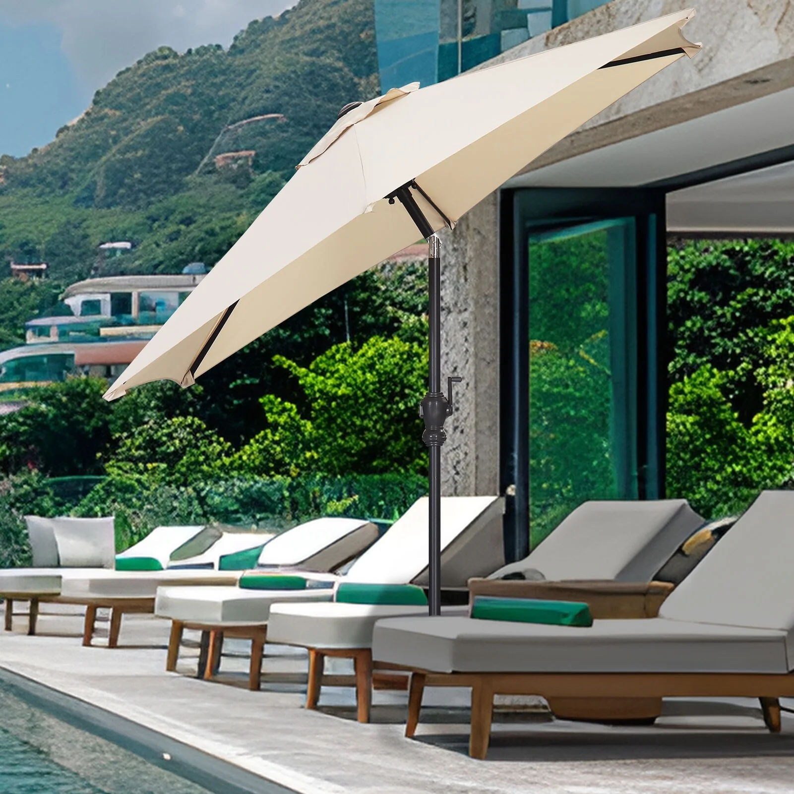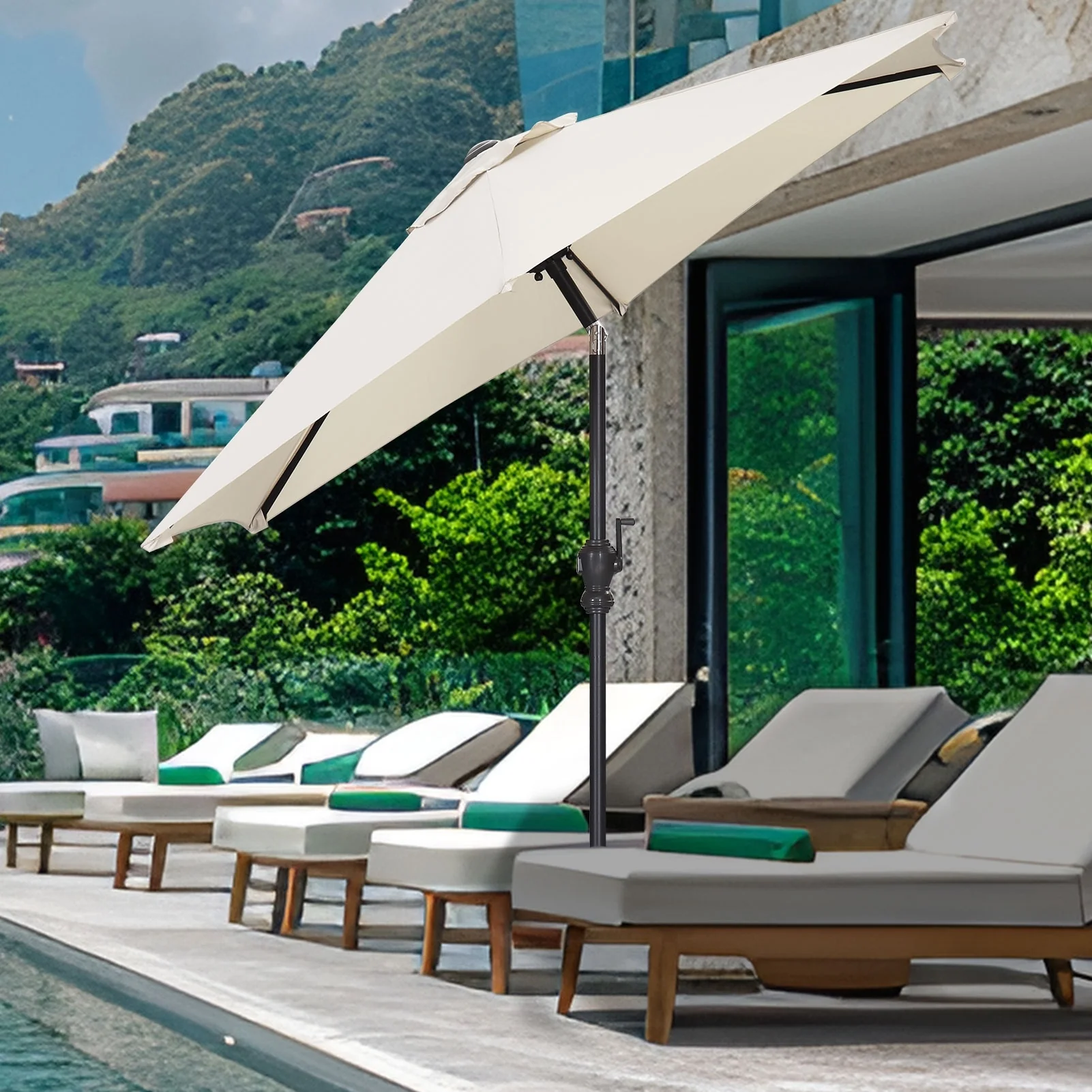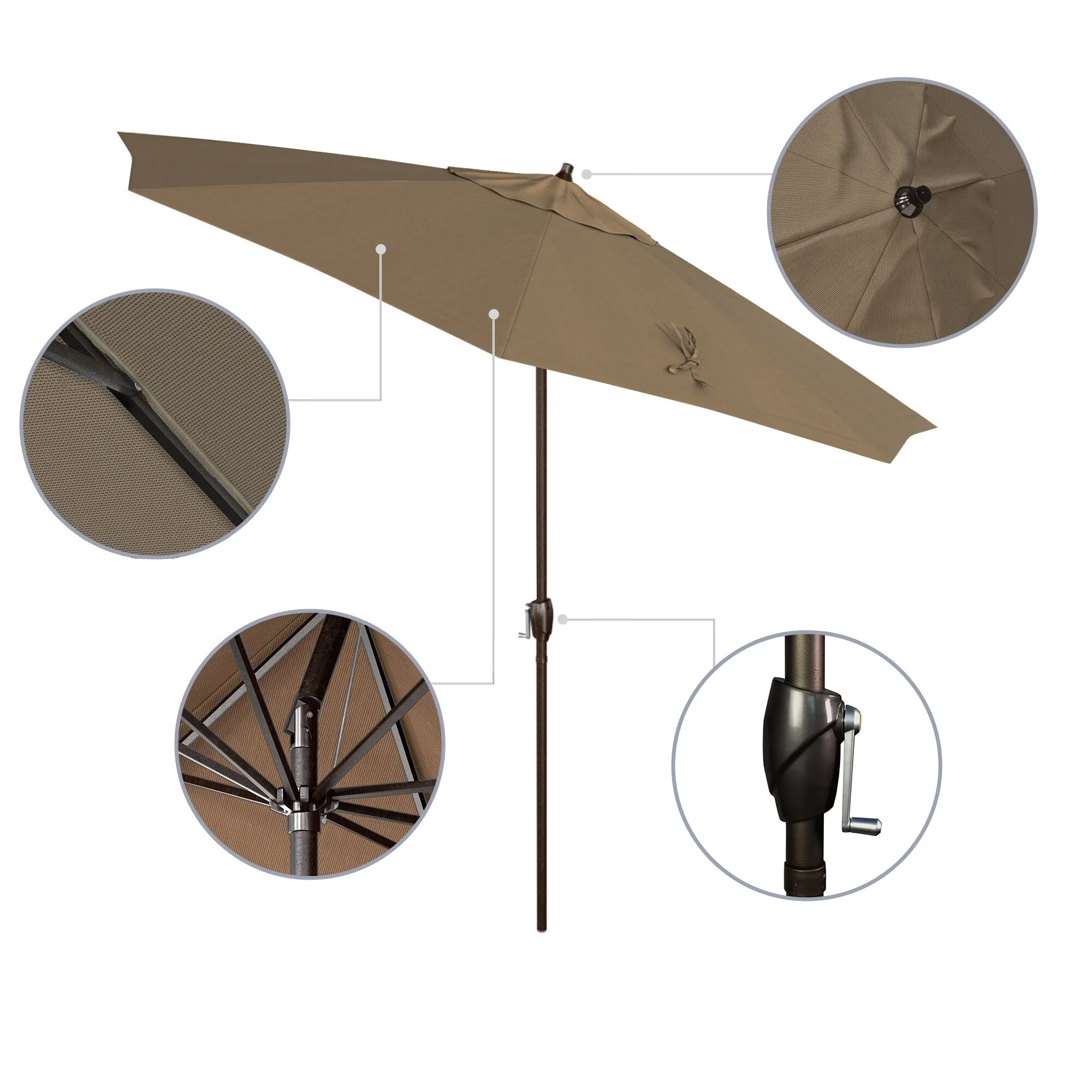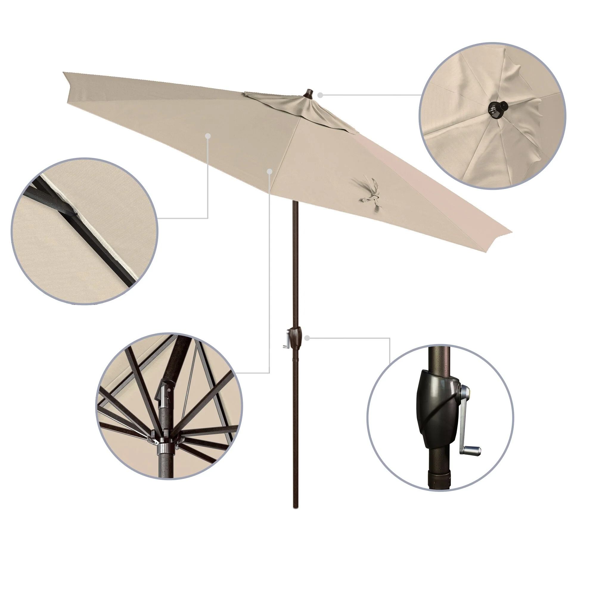SAFAVIEH Rieta Aluminum Tilt And Crank 9-Foot Patio Umbrella, Base Not Included