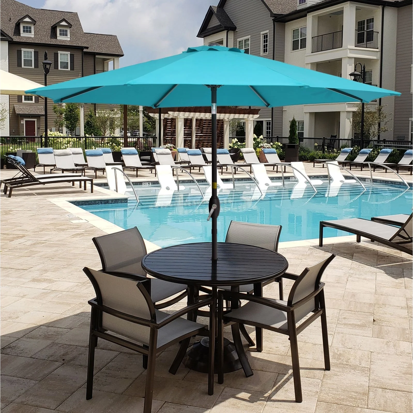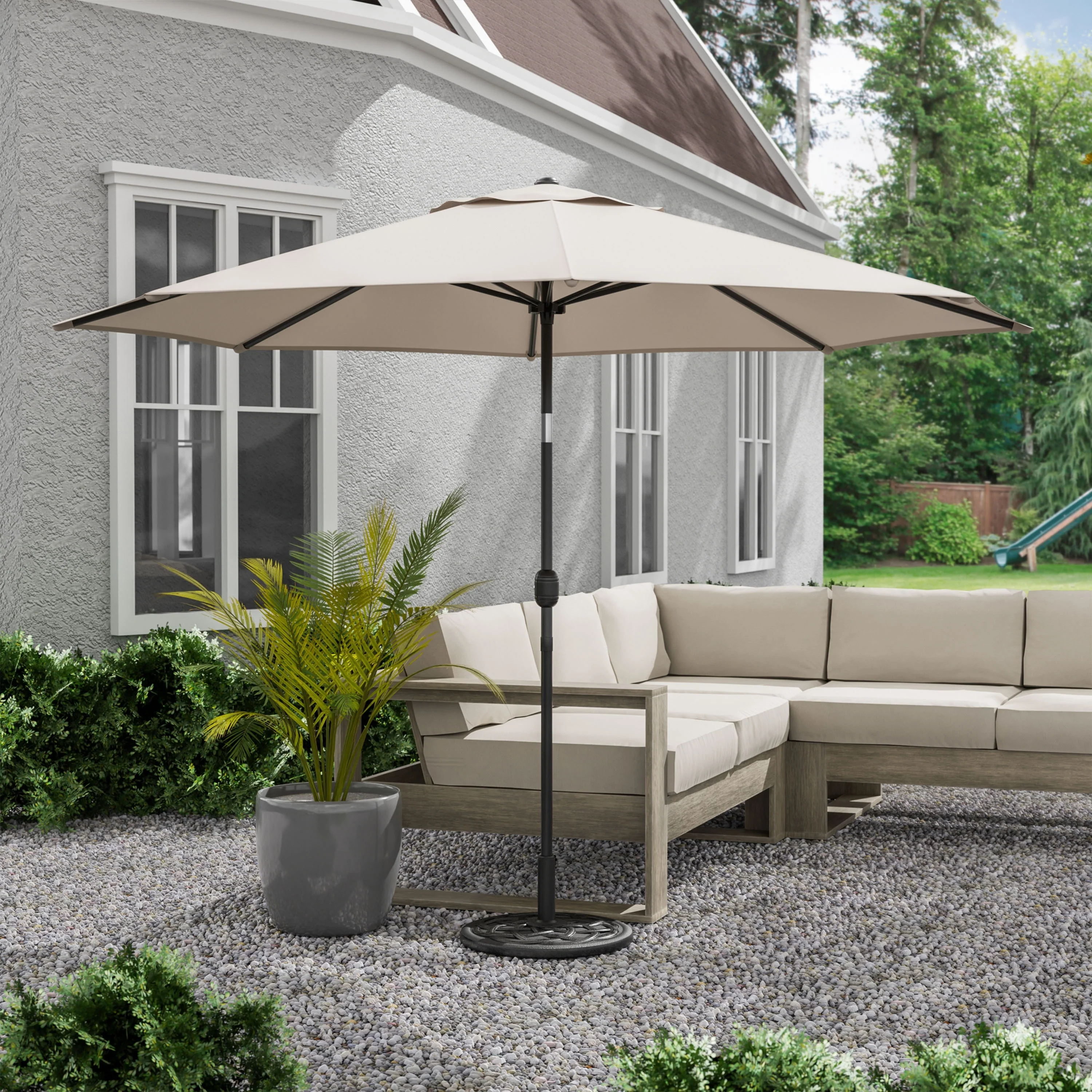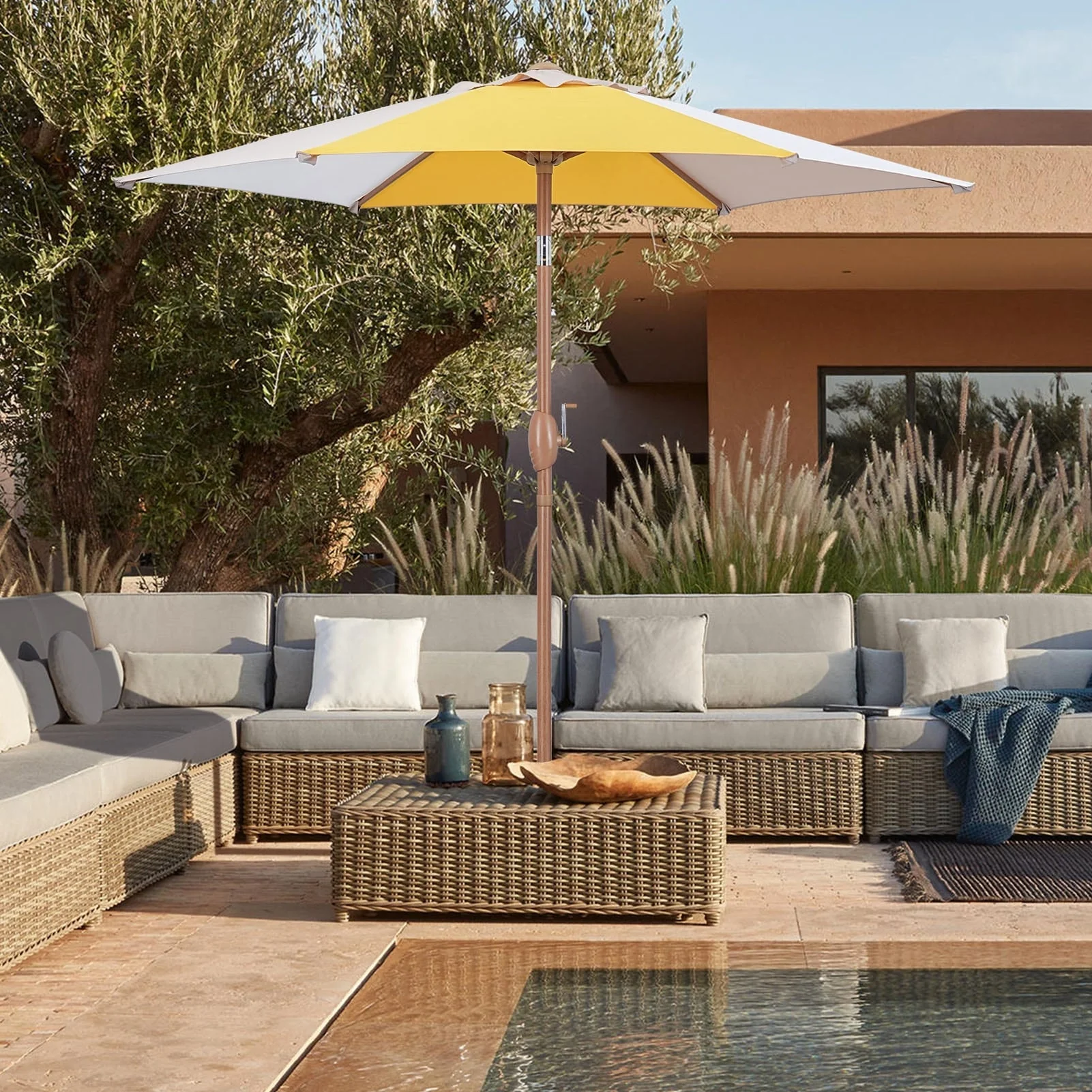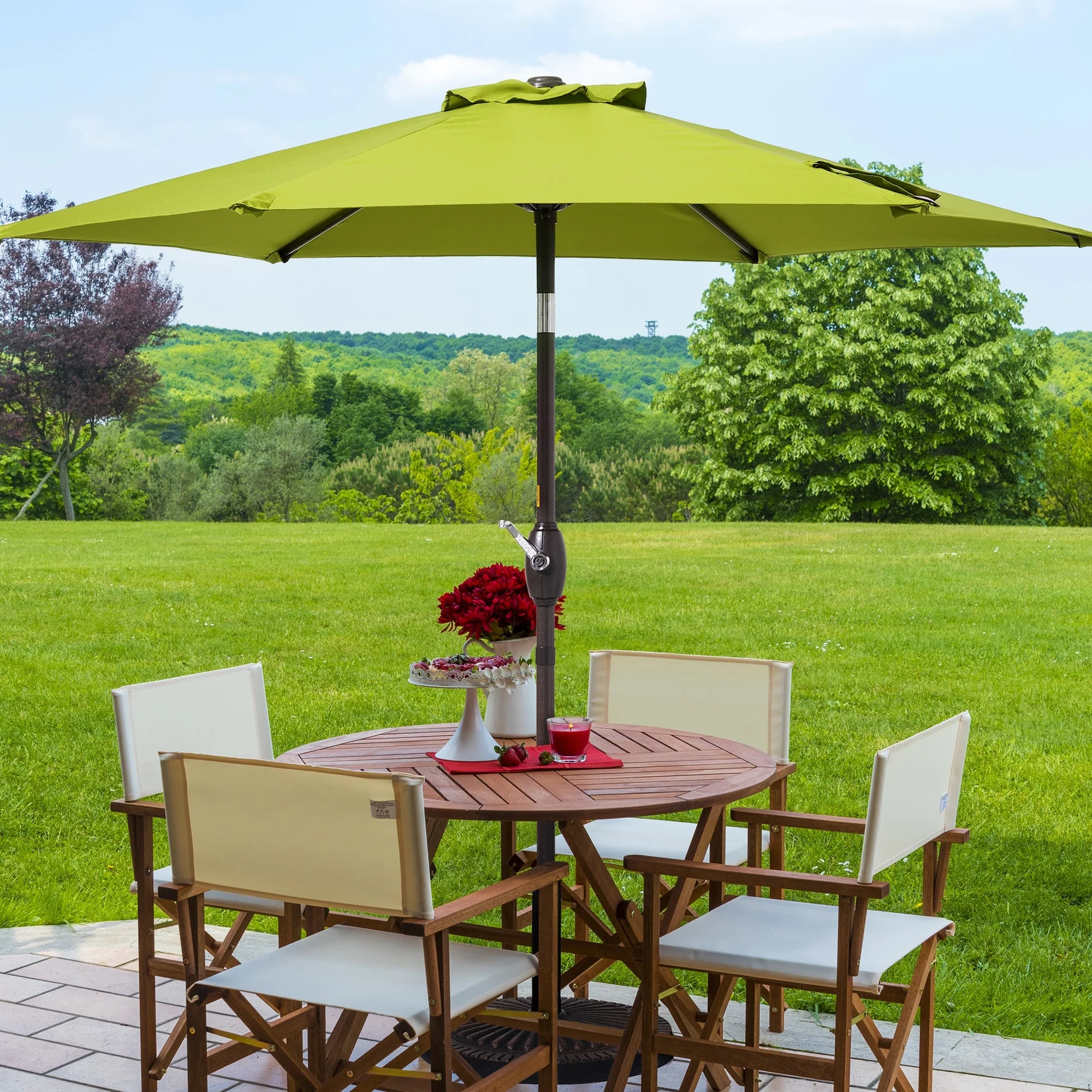 SAFAVIEH Rieta Aluminum Tilt And Crank 9-Foot Patio Umbrella, Base Not Included