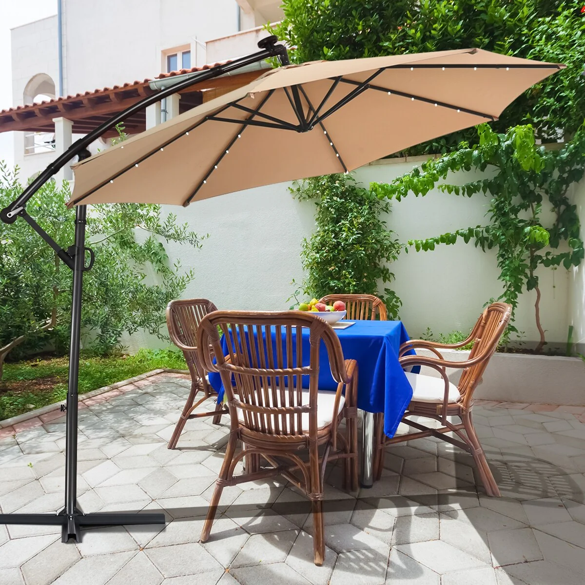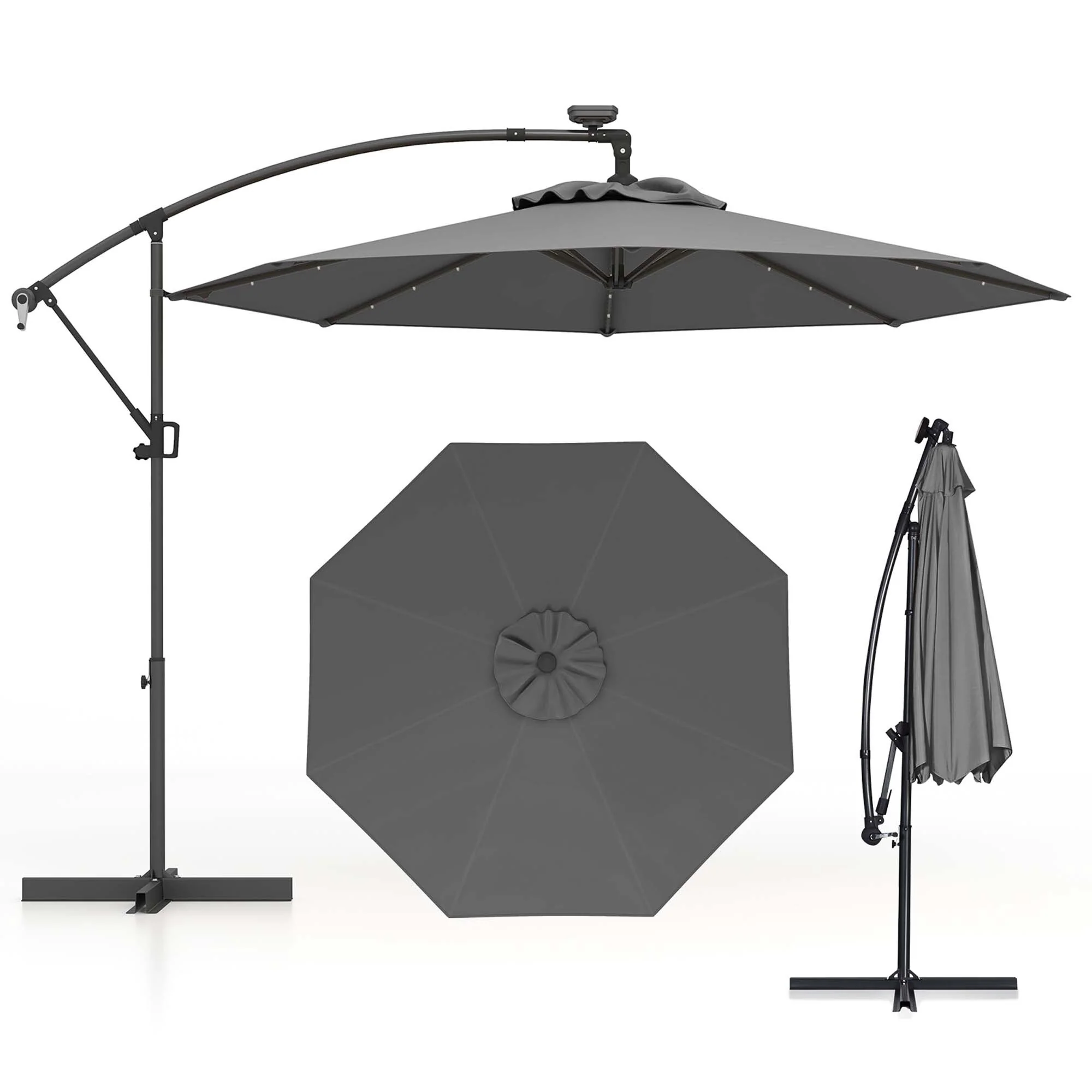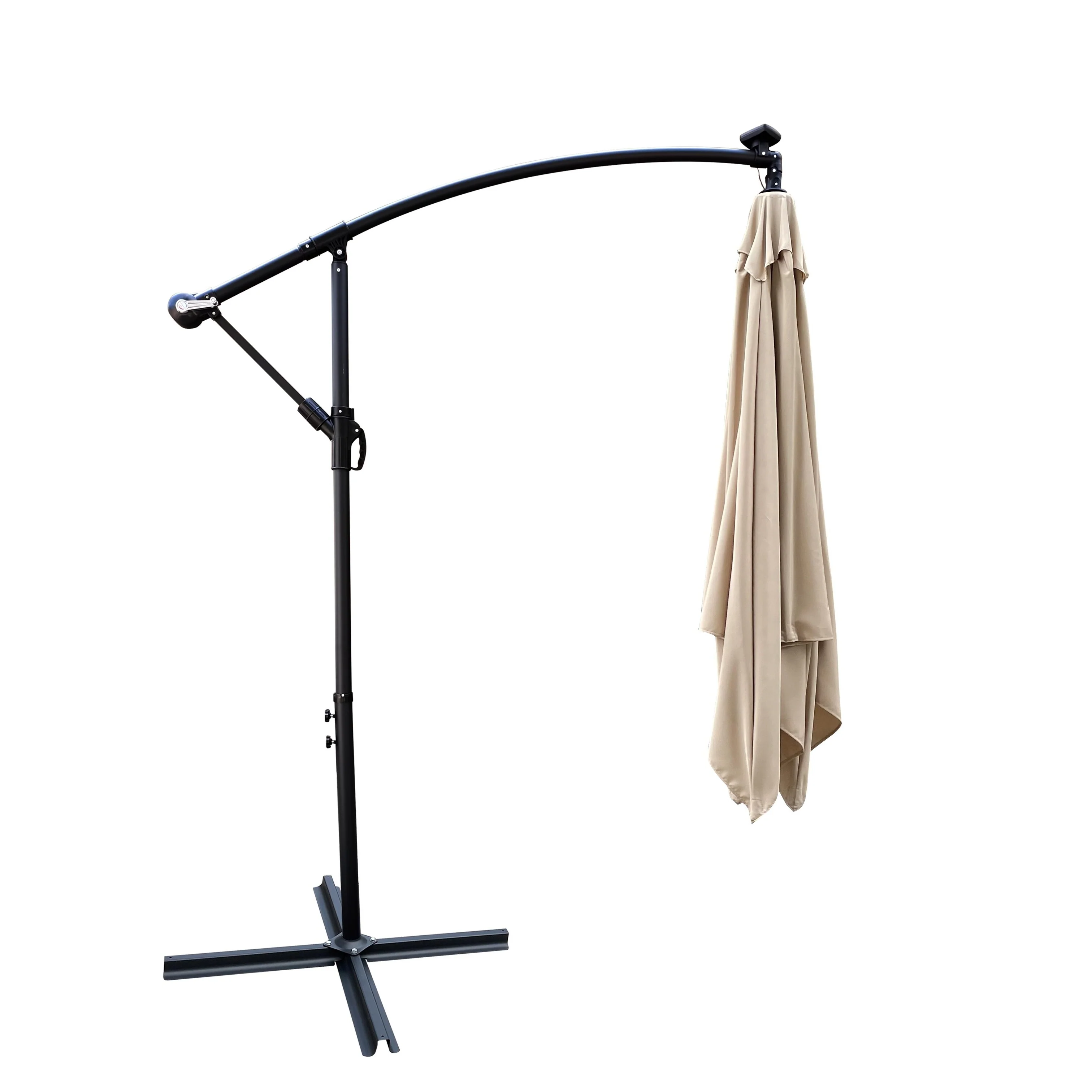 Costway 10FT Patio Offset Umbrella Solar Powered LED 360degrees