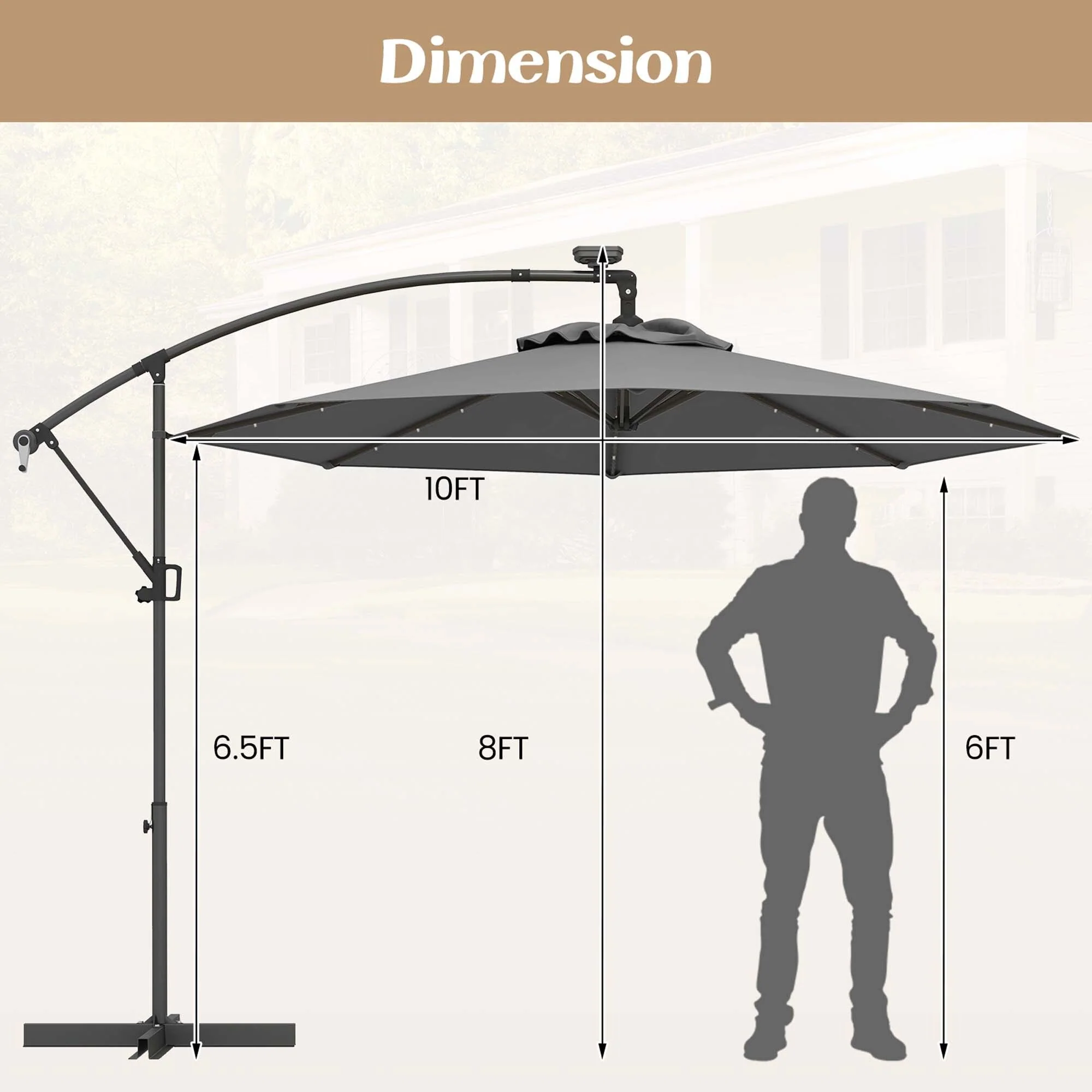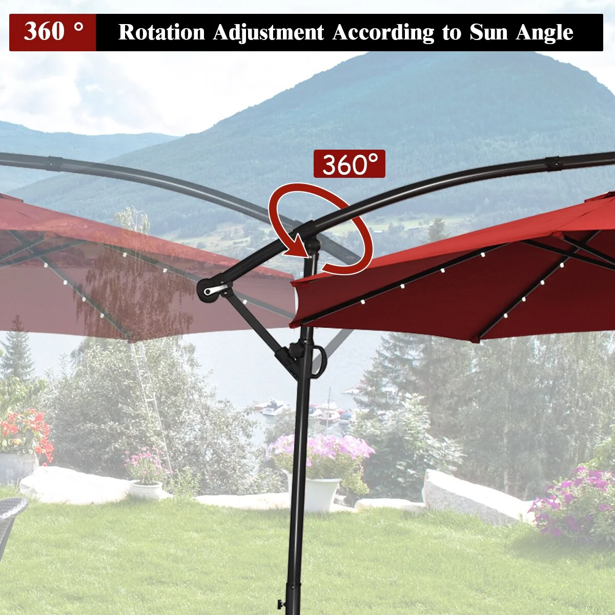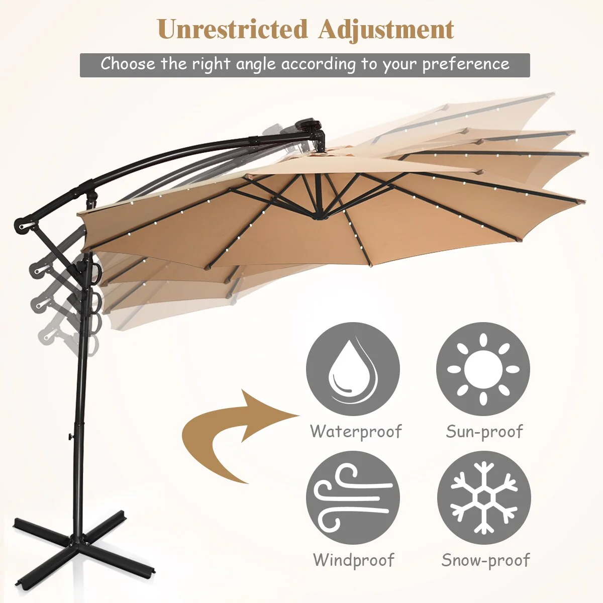 Costway 10FT Patio Offset Umbrella Solar Powered LED 360degrees