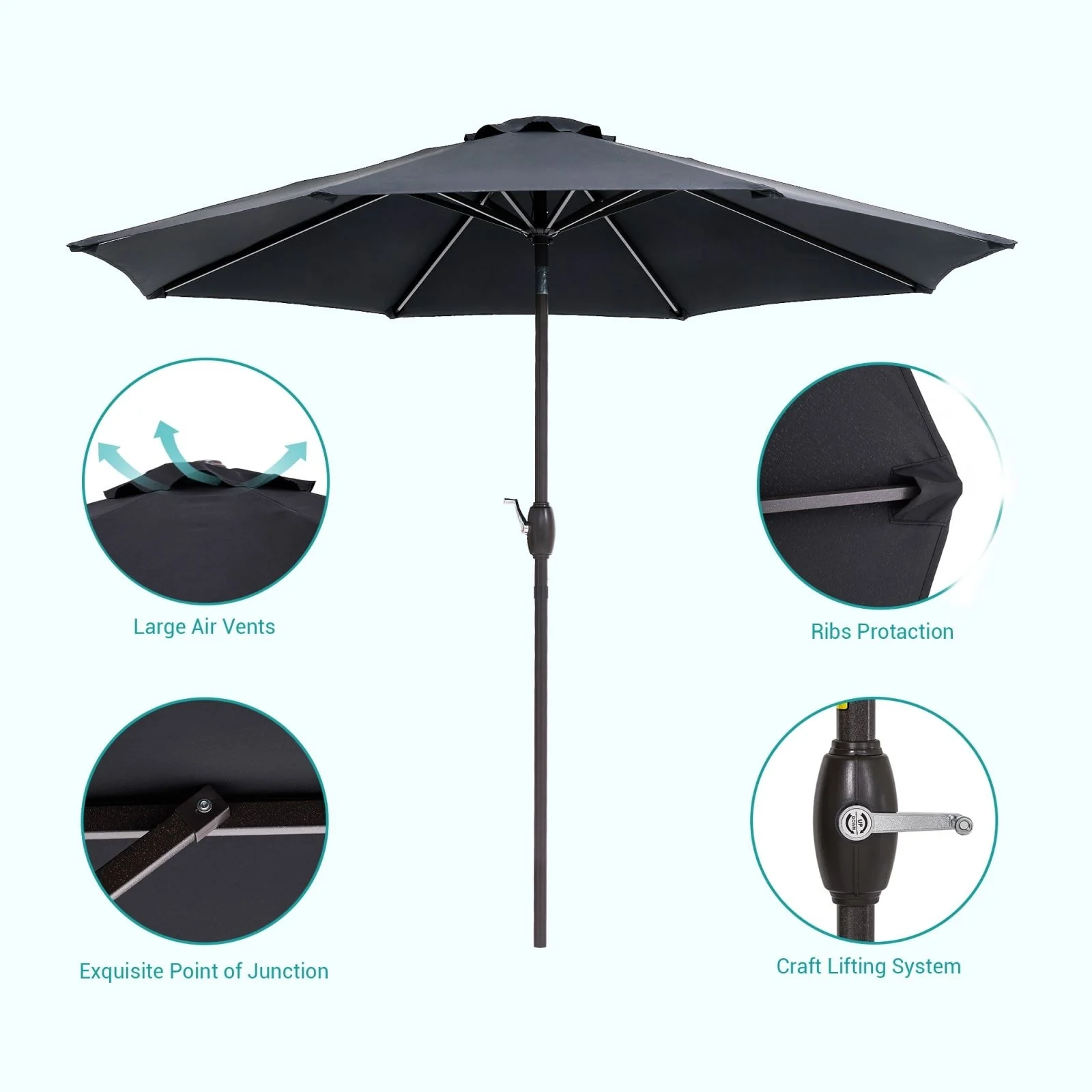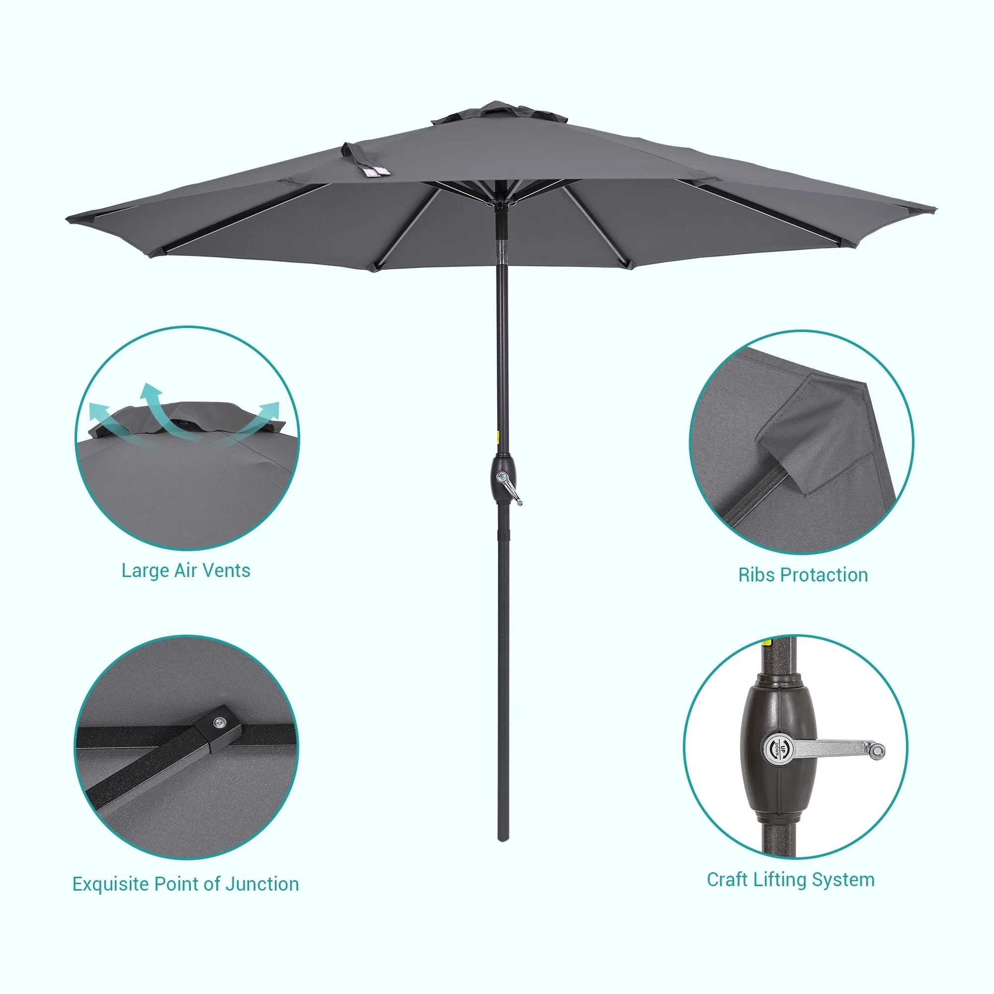 Ainfox 9ft Outdoor Patio Umbrella Multi-color Crank Lift Without Base