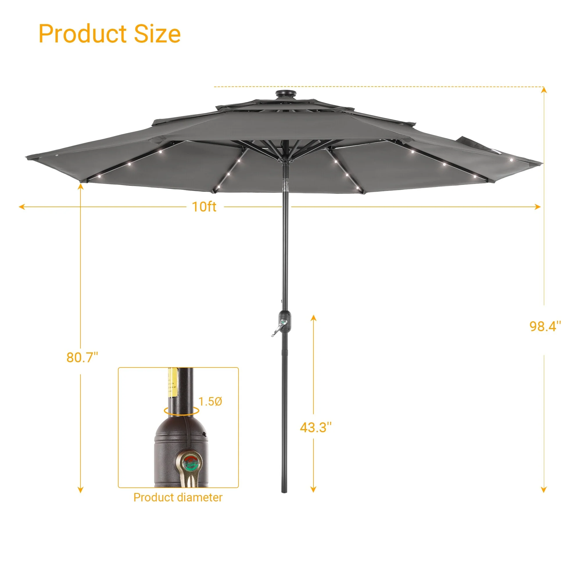 Ainfox 10ft Patio Umbrella with Lights Outdoor Umbrella with Base