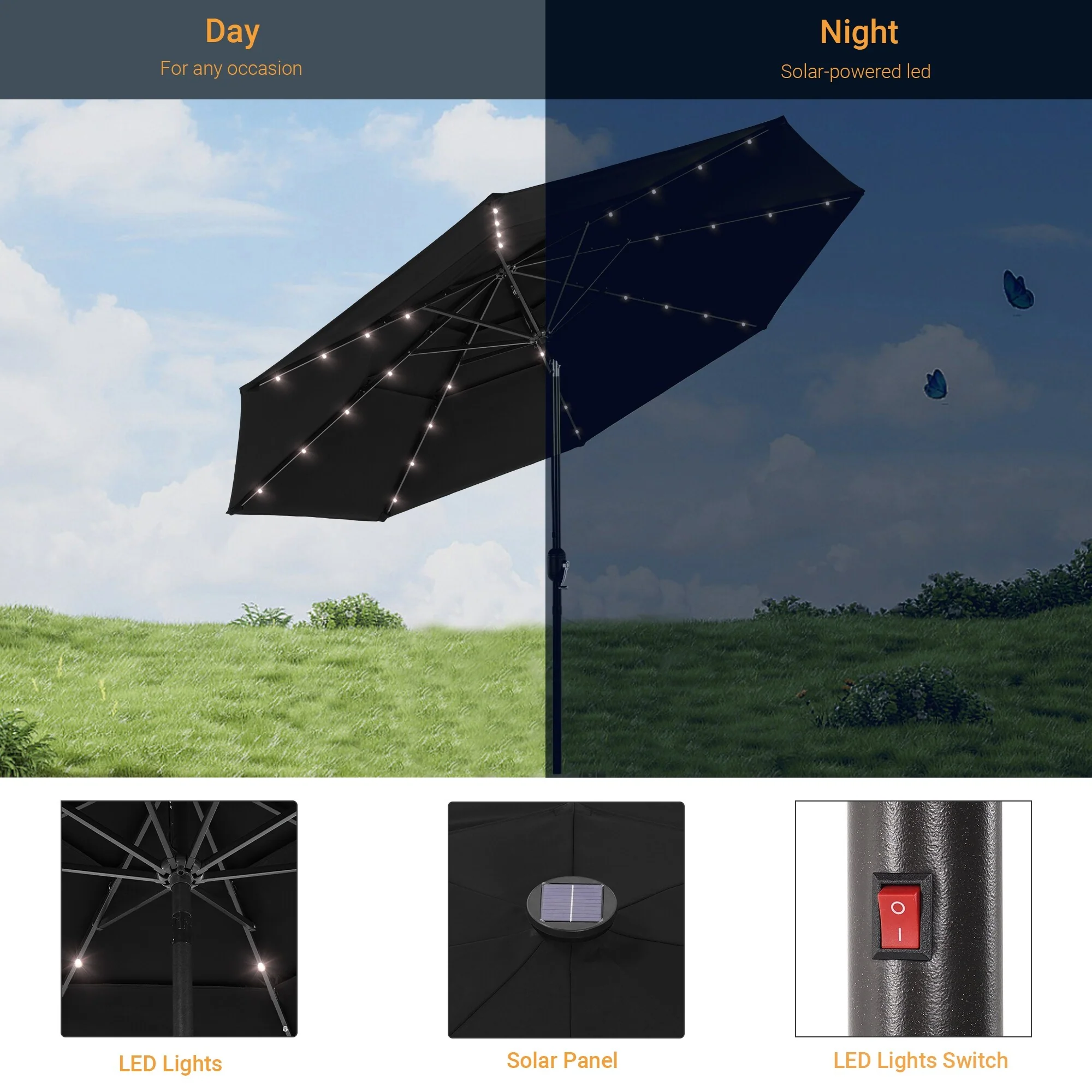 BONOSUKI LED 10 x 6.5ft Outdoor Umbrellas Patio Market Table Umbrellas
