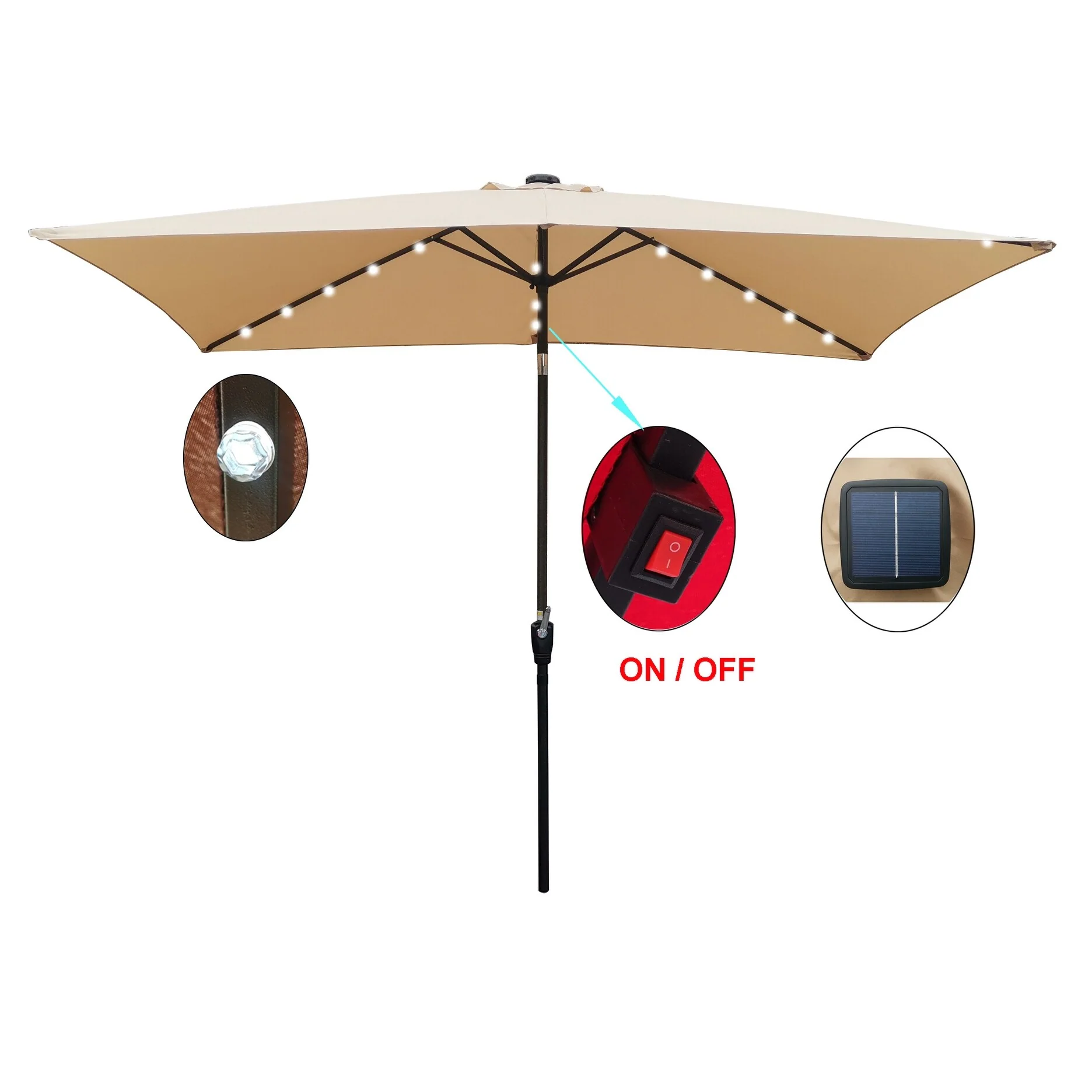 Rectangular Patio Solar LED Lighted Outdoor Market Umbrellas