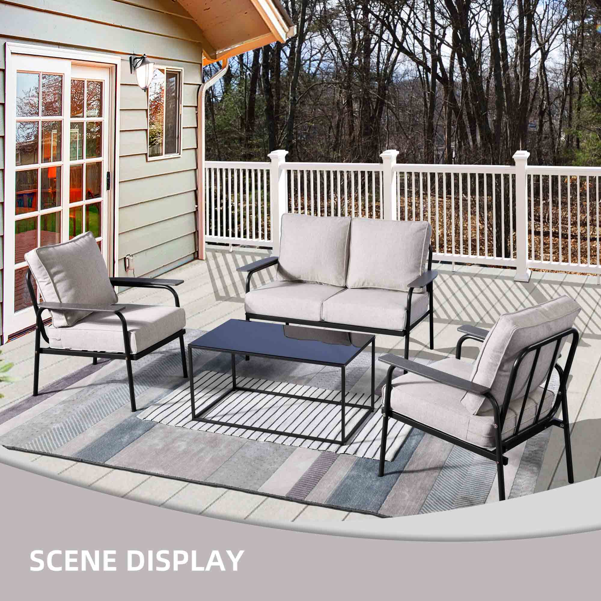 This patio set adds a comfortable and luxurious atmosphere to your outdoor space.