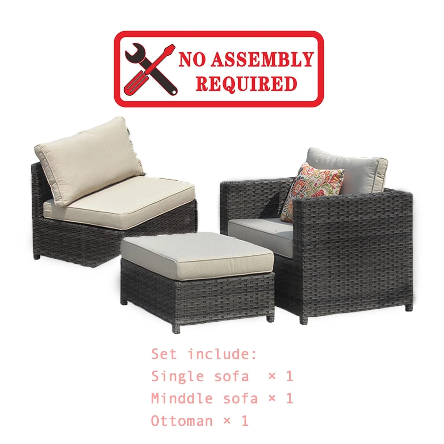 | Items Included | Sectional includes 3 PCS: Arm Chair x 1, Armless Chair x 1, Ottoman x 1 |