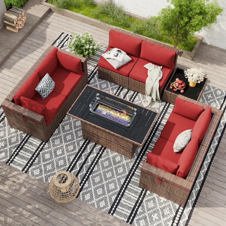 Mecayla 8 Piece Fire Pit & Rattan Sectional Seating Group with Cushions