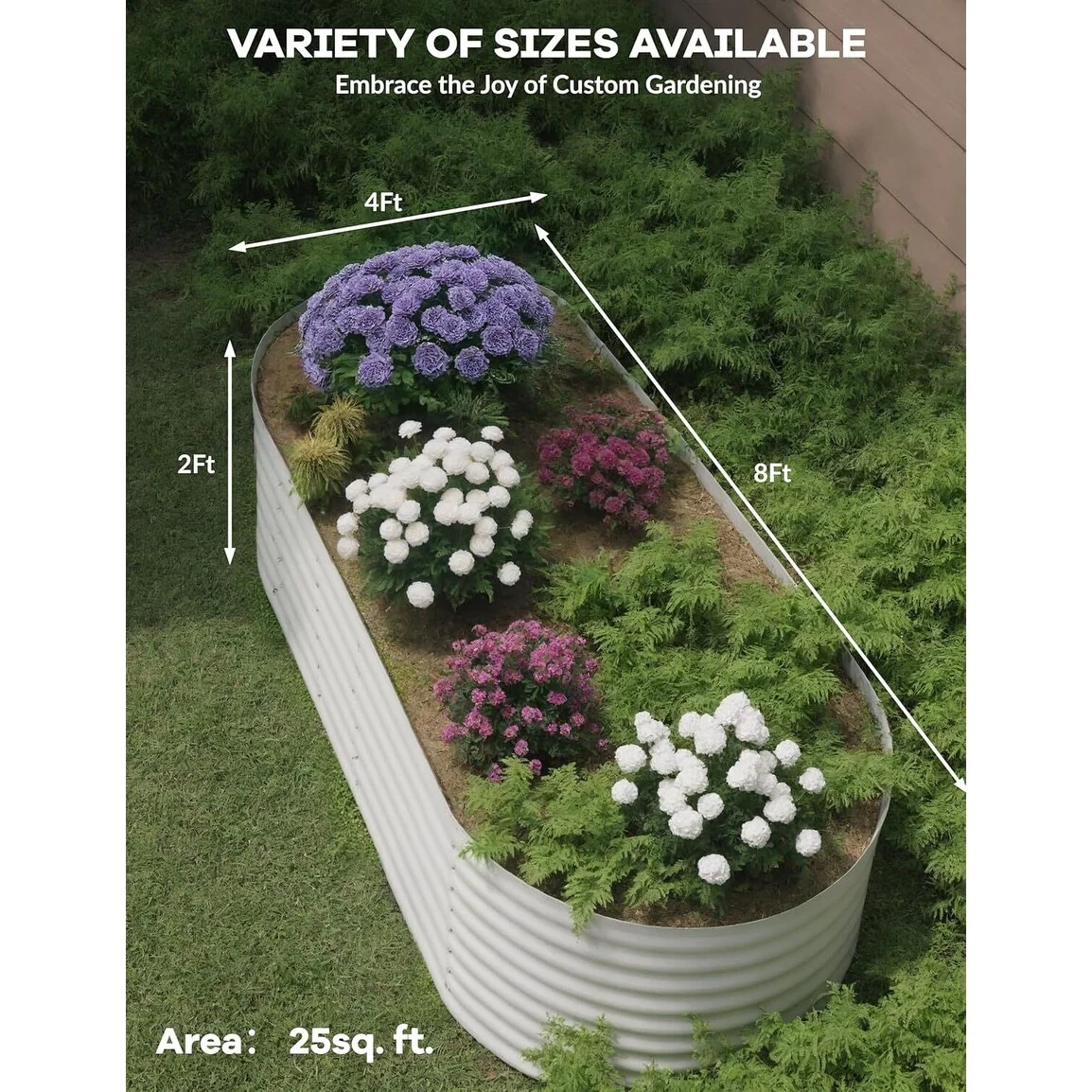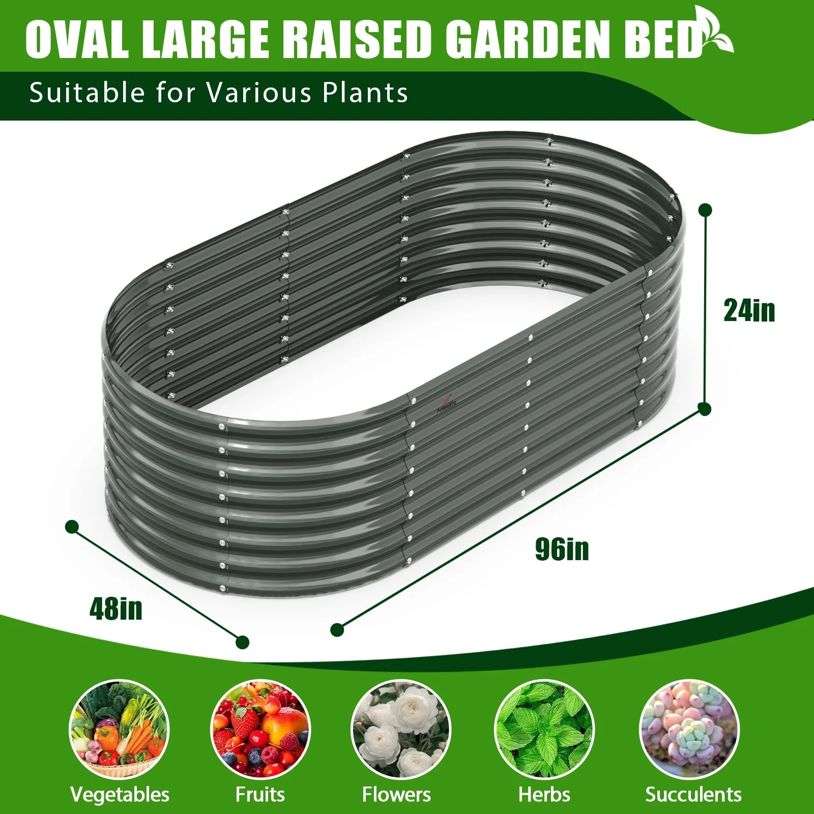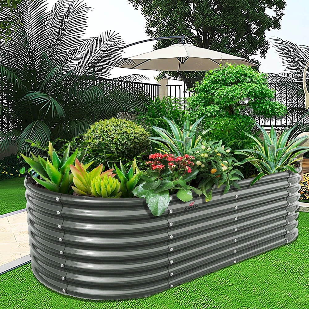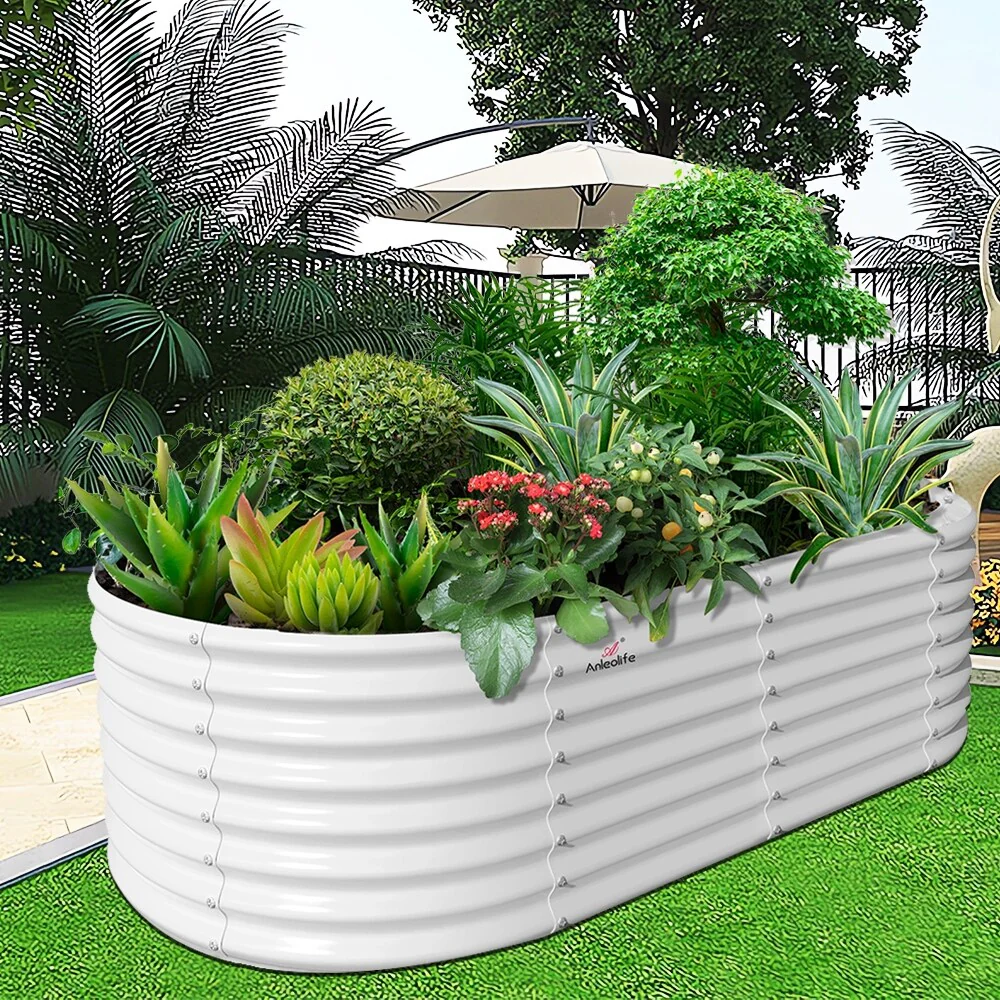 8X4X2 ft Oval Metal Raised Garden Bed for Vegetables and Flowers