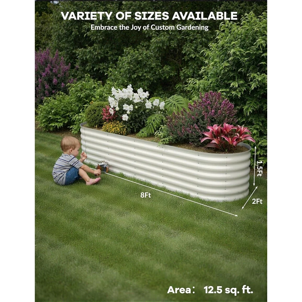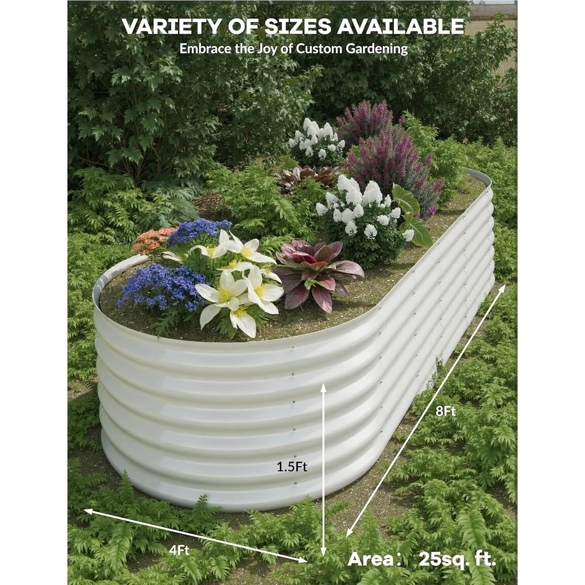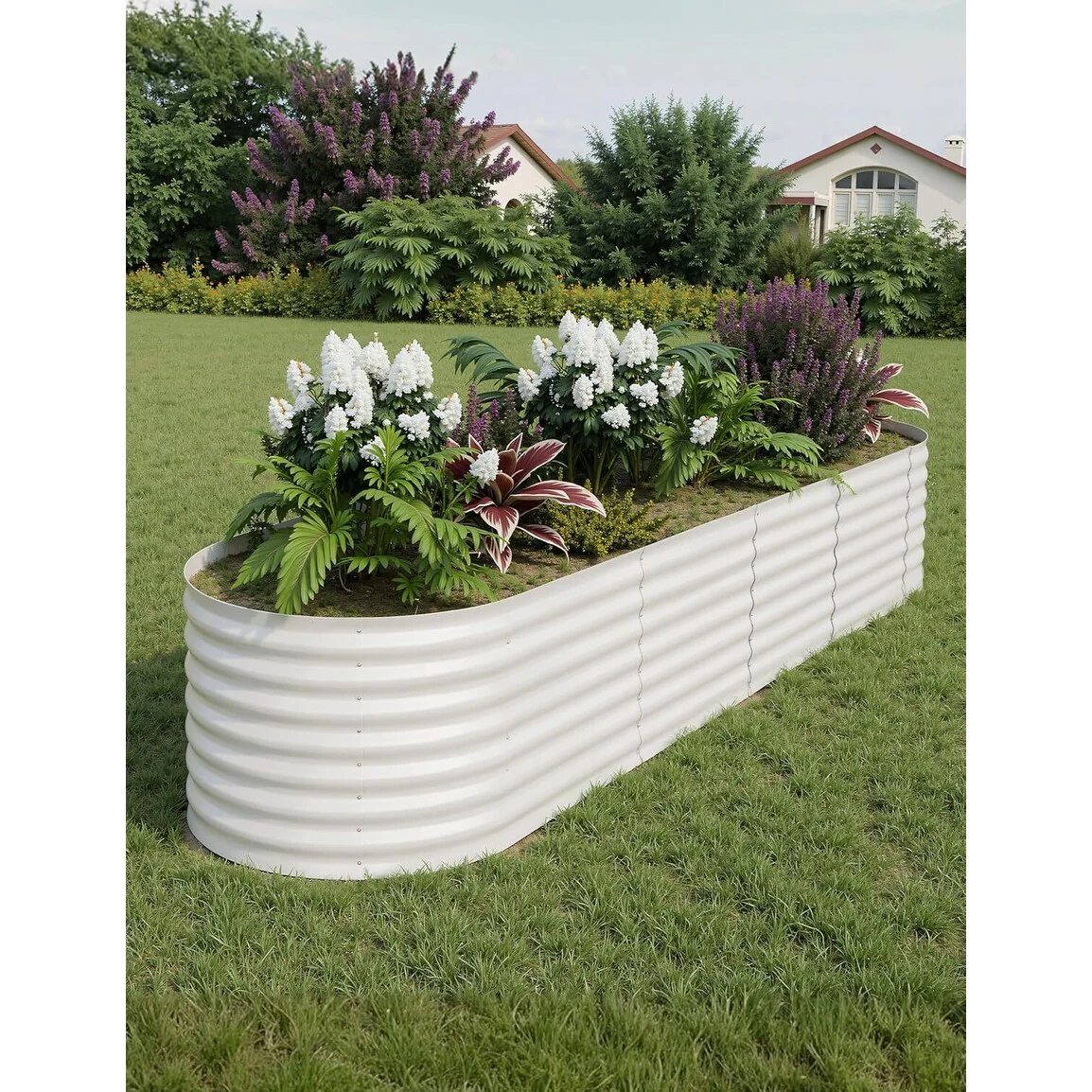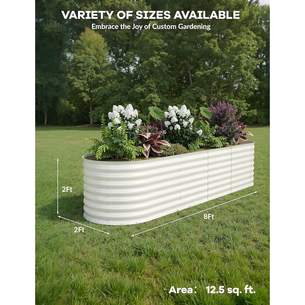 8X4X2 ft Oval Metal Raised Garden Bed for Vegetables and Flowers