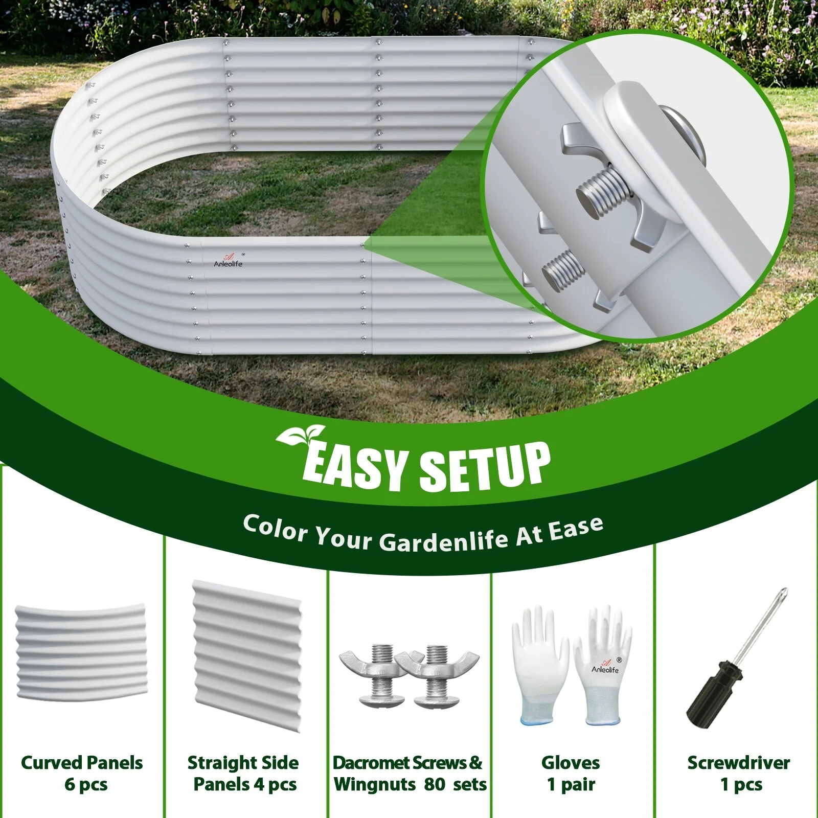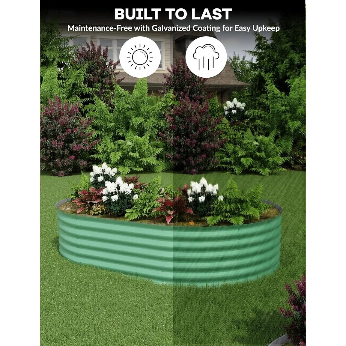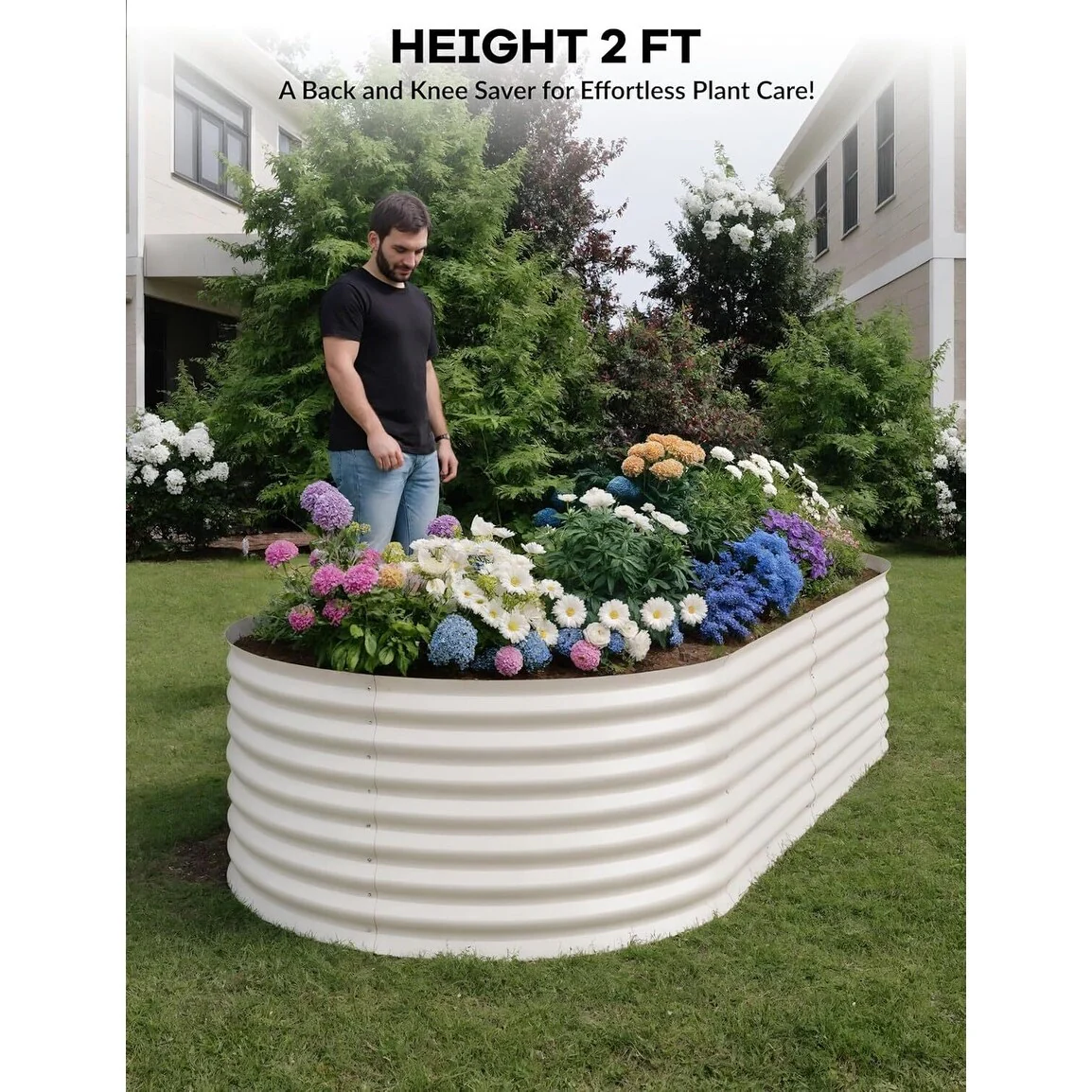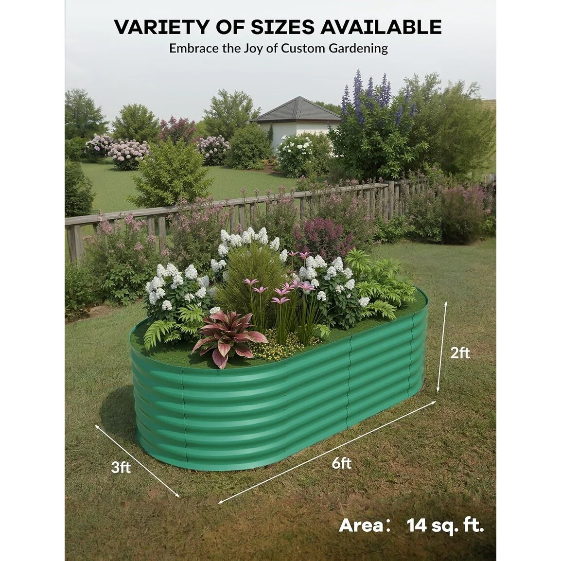 8X4X2 ft Oval Metal Raised Garden Bed for Vegetables and Flowers