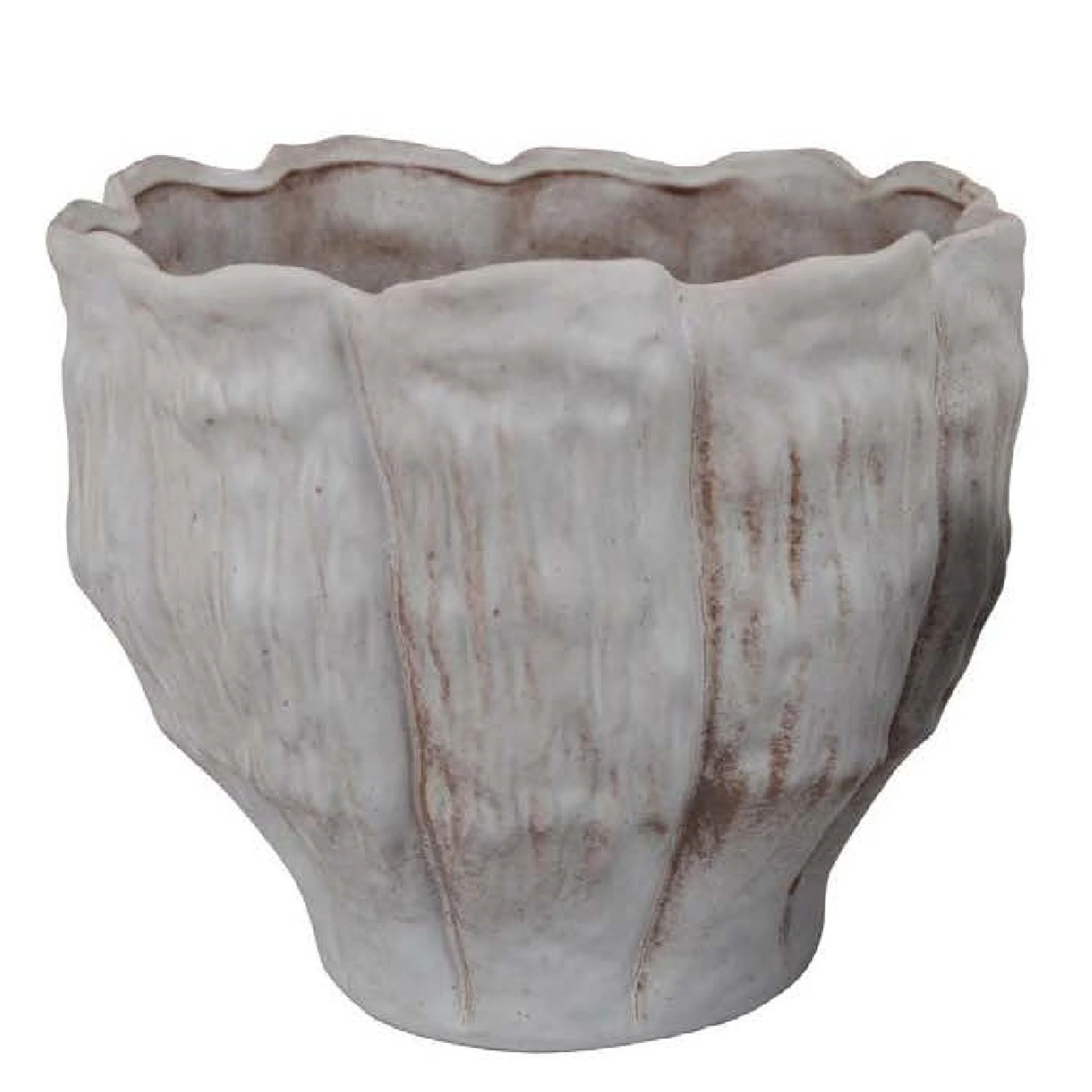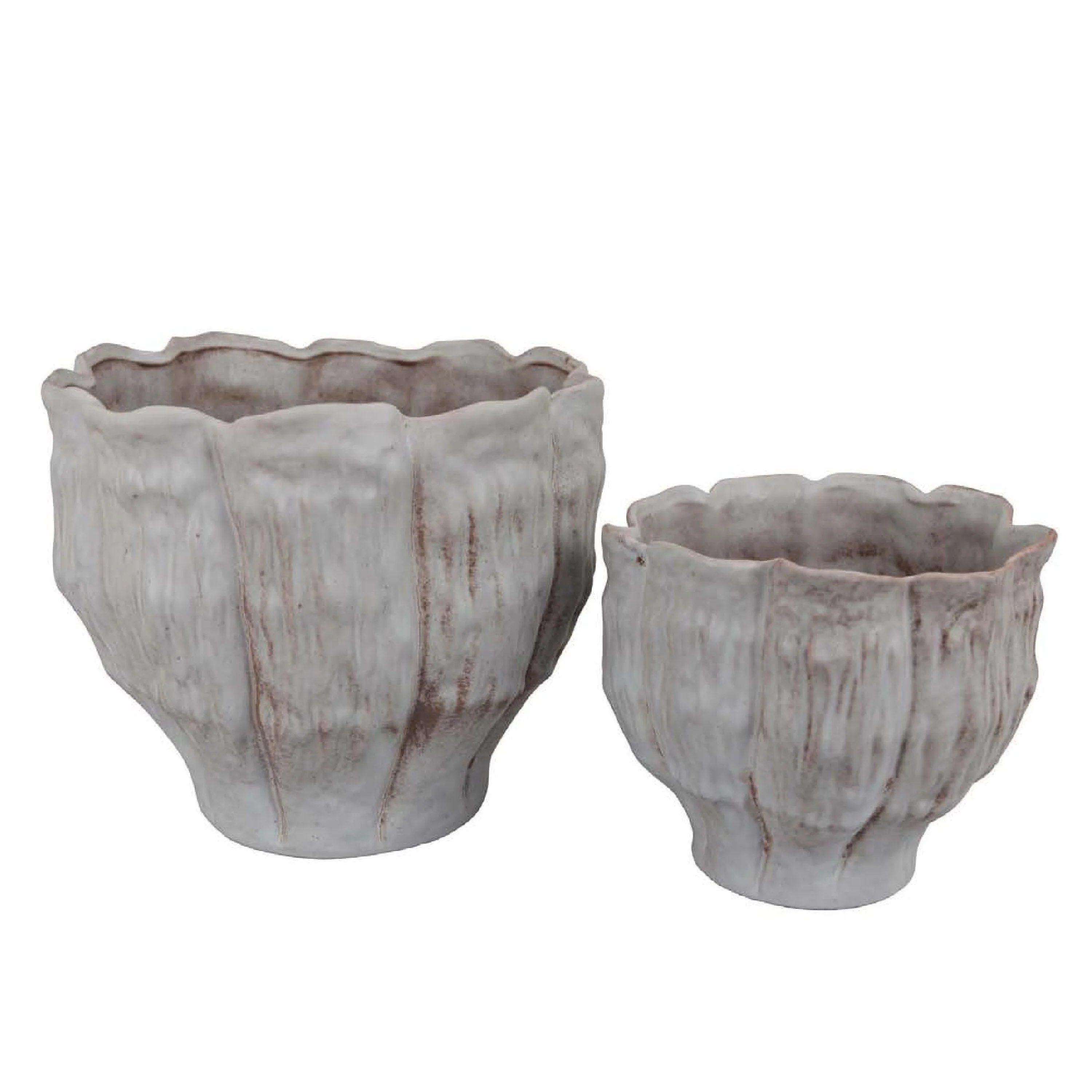 Maria Accent Planter Set of 2, Scalloped Rim, Gray Textured Ceramic