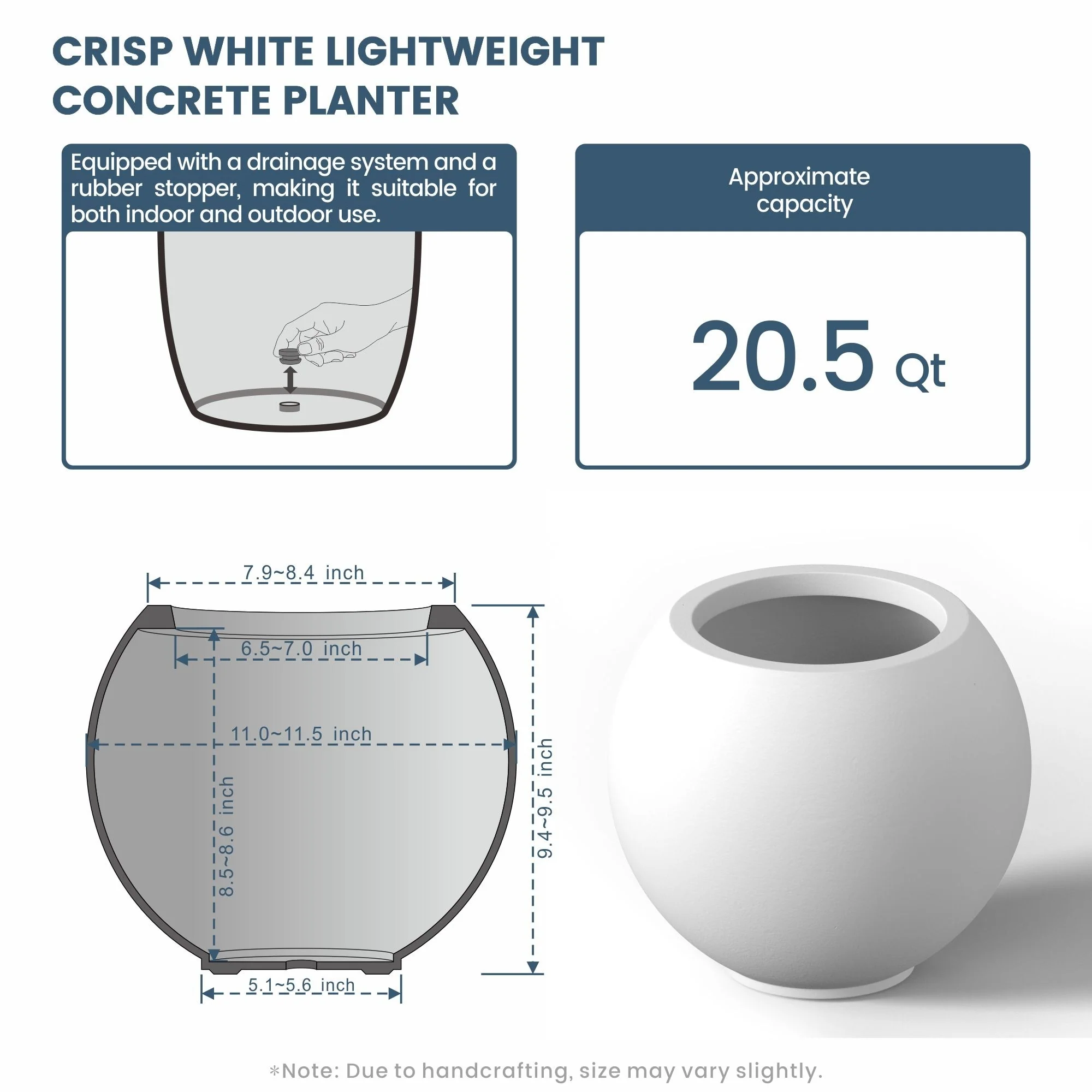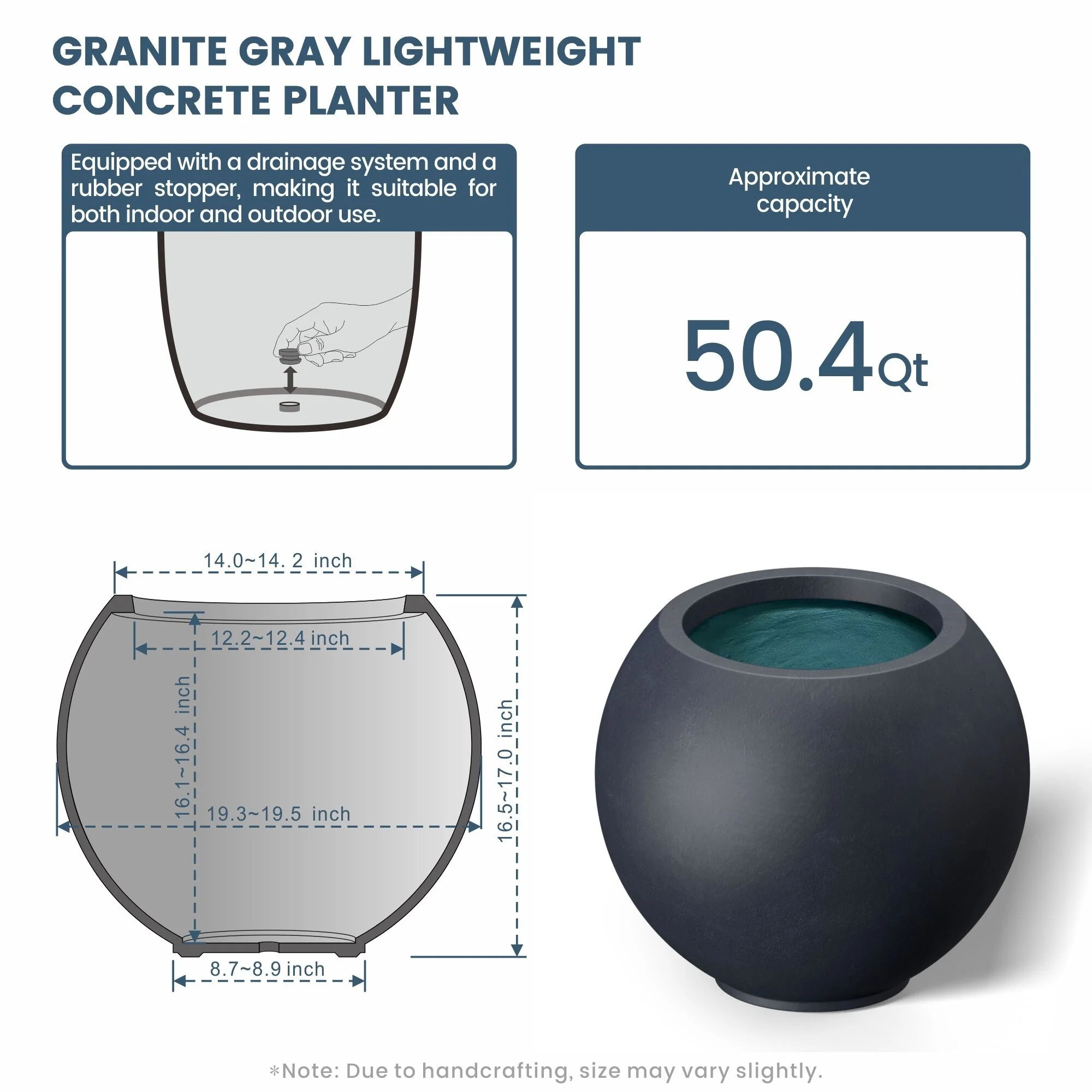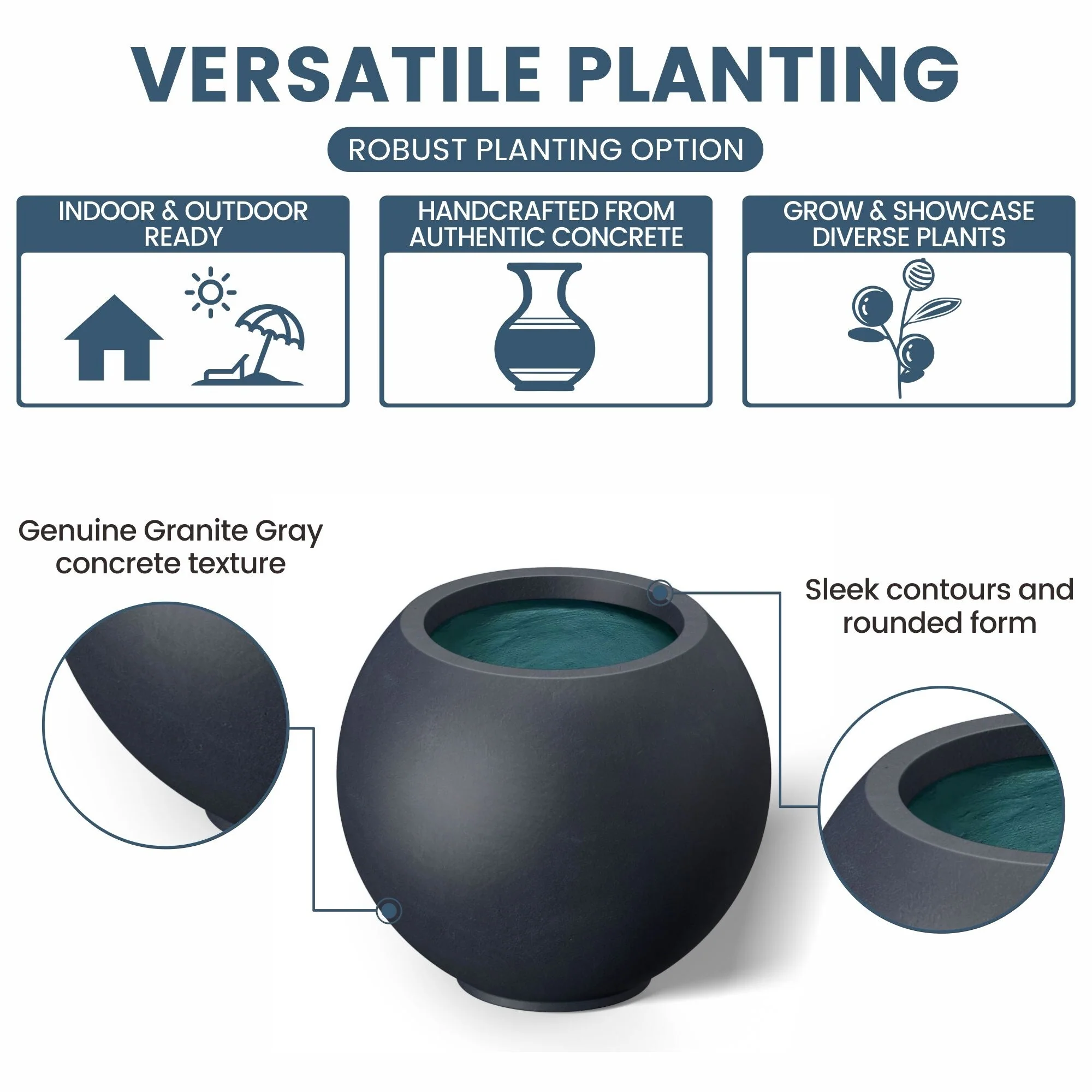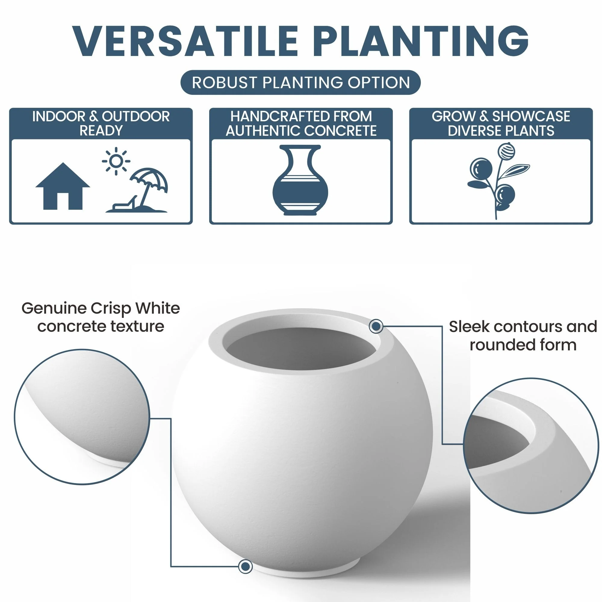 Tall Concrete Round Plant Pots / Large Indoor and Outdoor flower Planters with drainage holes