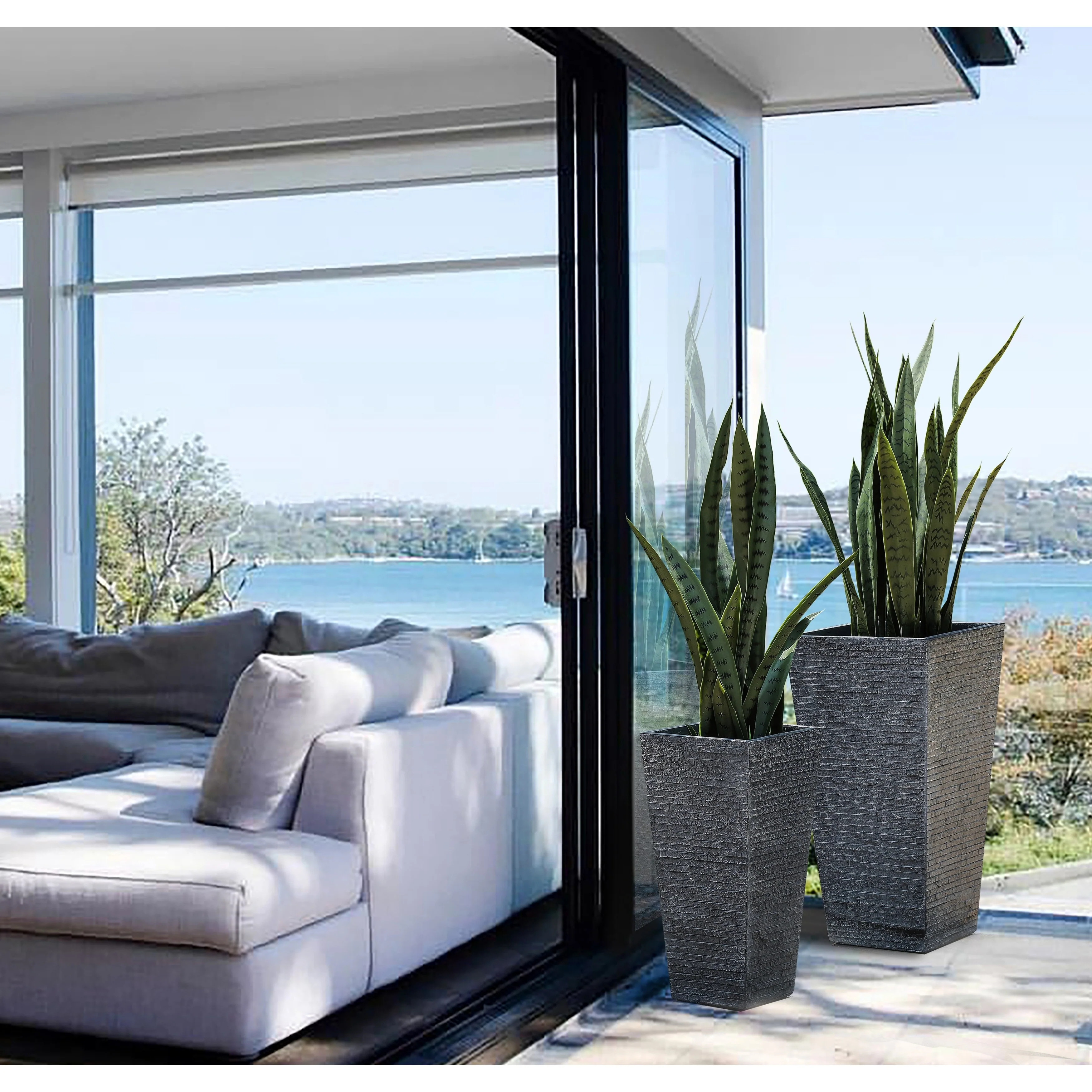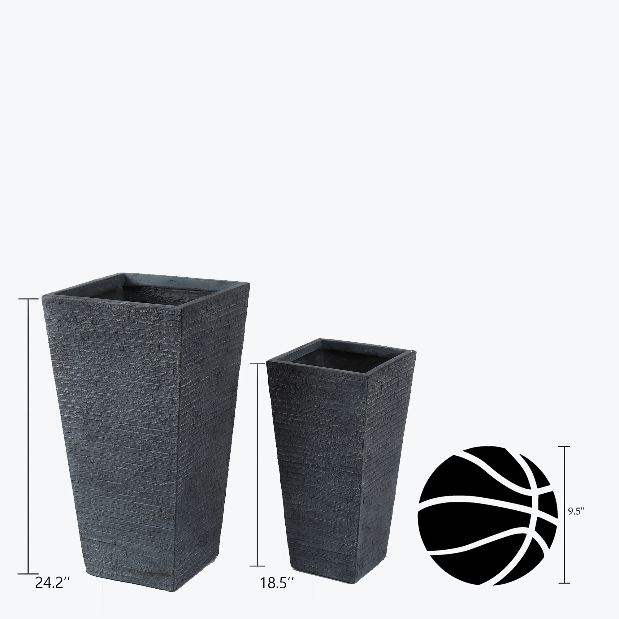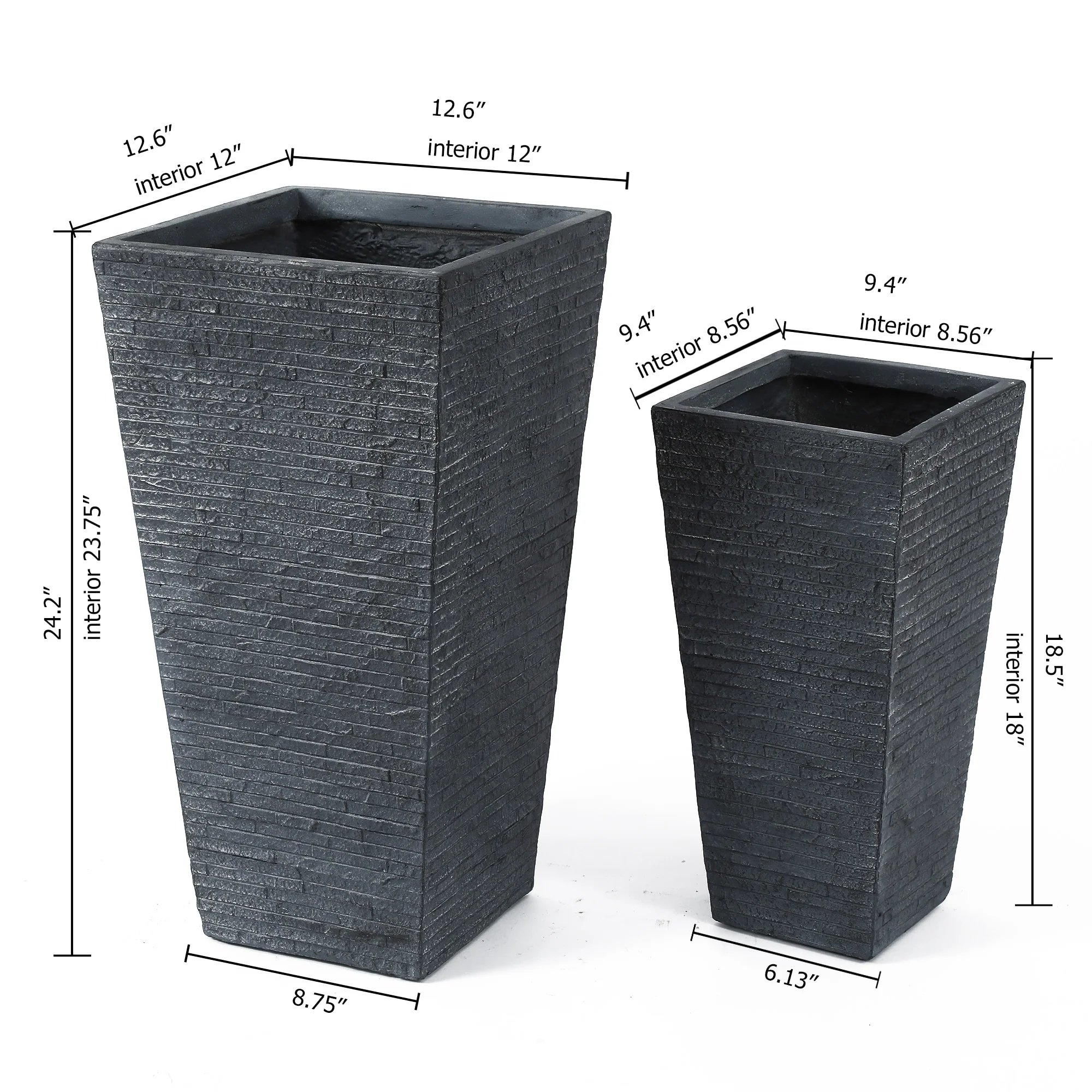 Grey Stone Finish Tall Tapered Square MgO Planter (Set of 2)