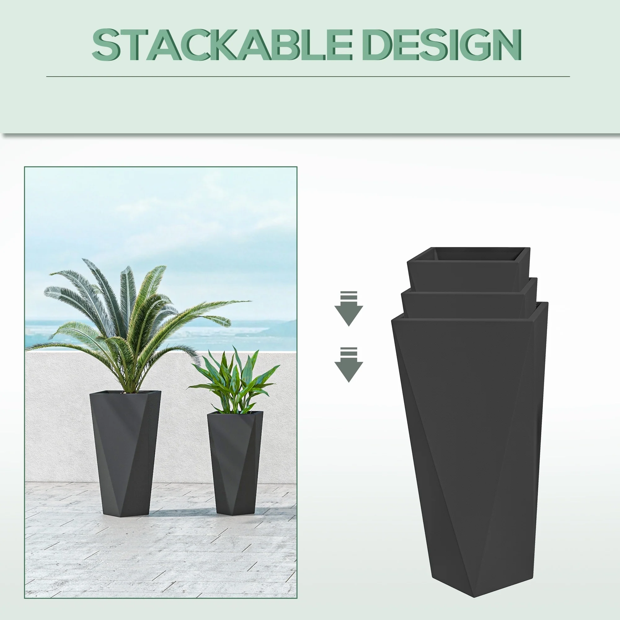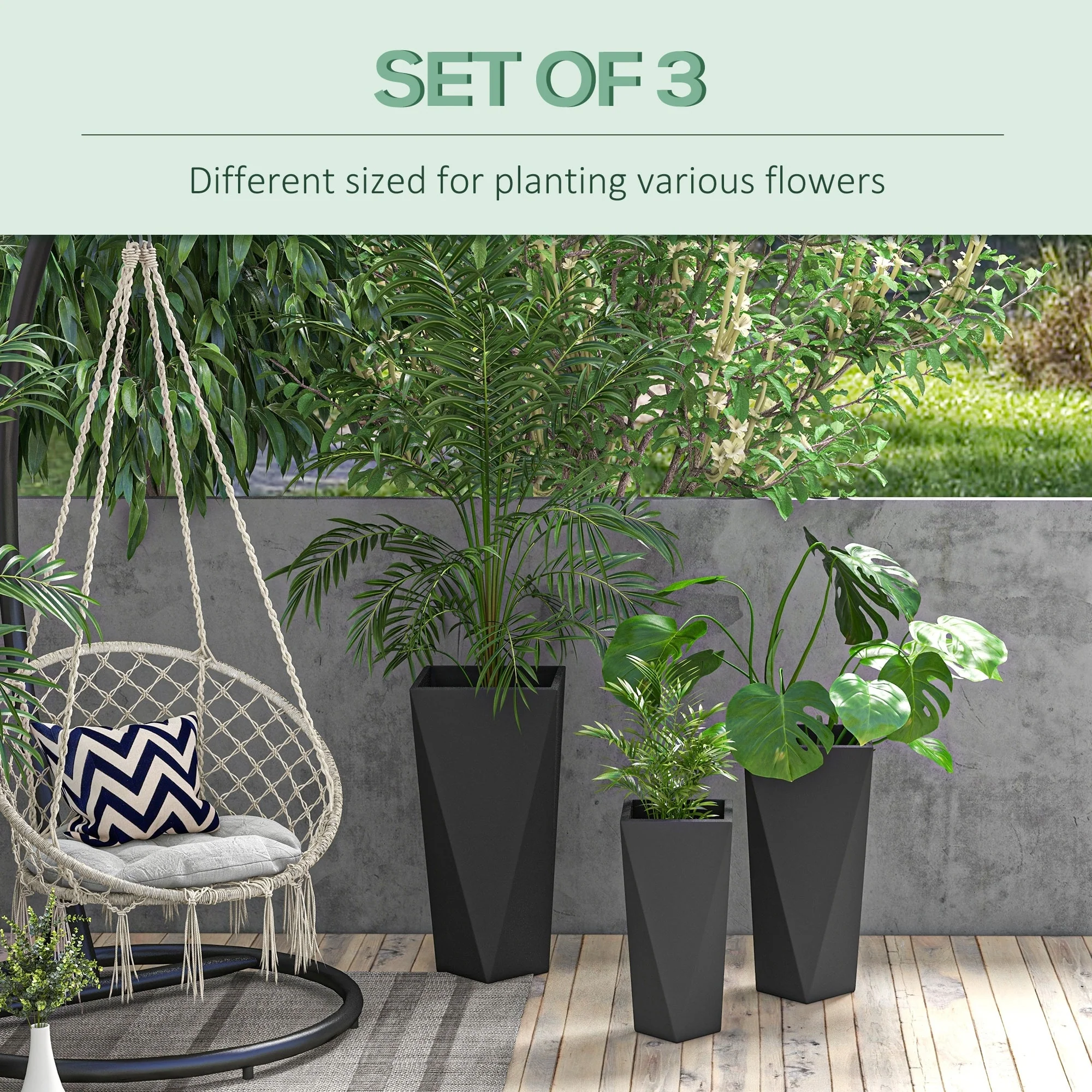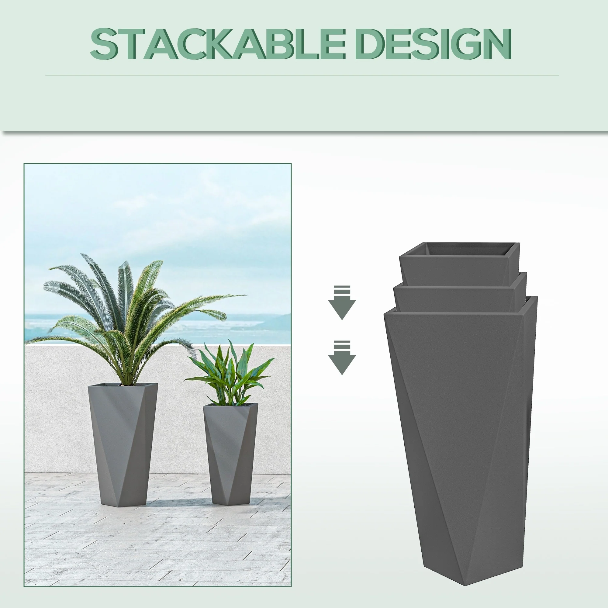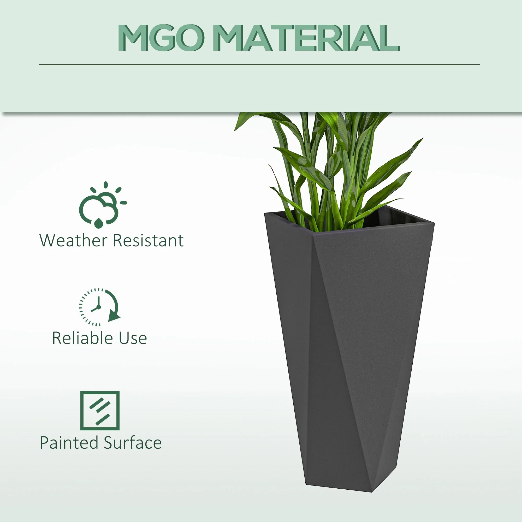 Grey Stone Finish Tall Tapered Square MgO Planter (Set of 2)