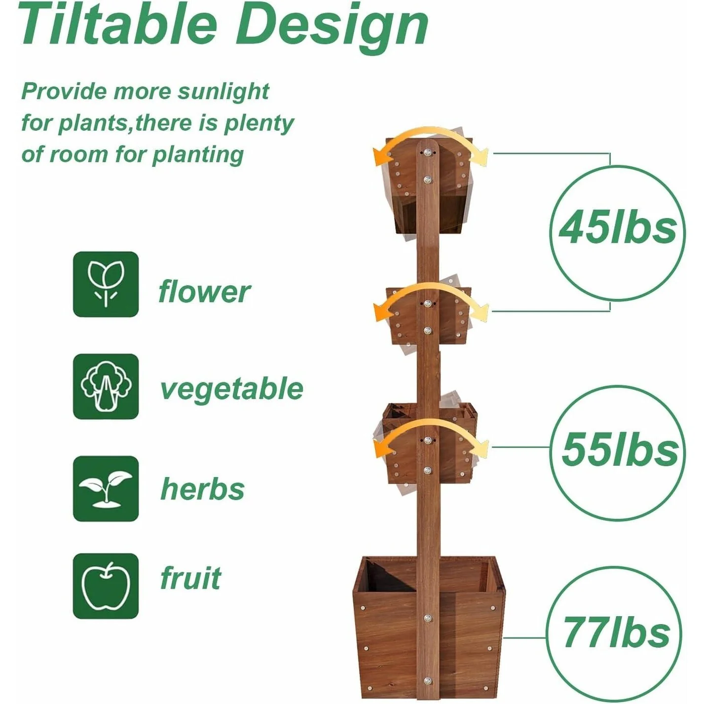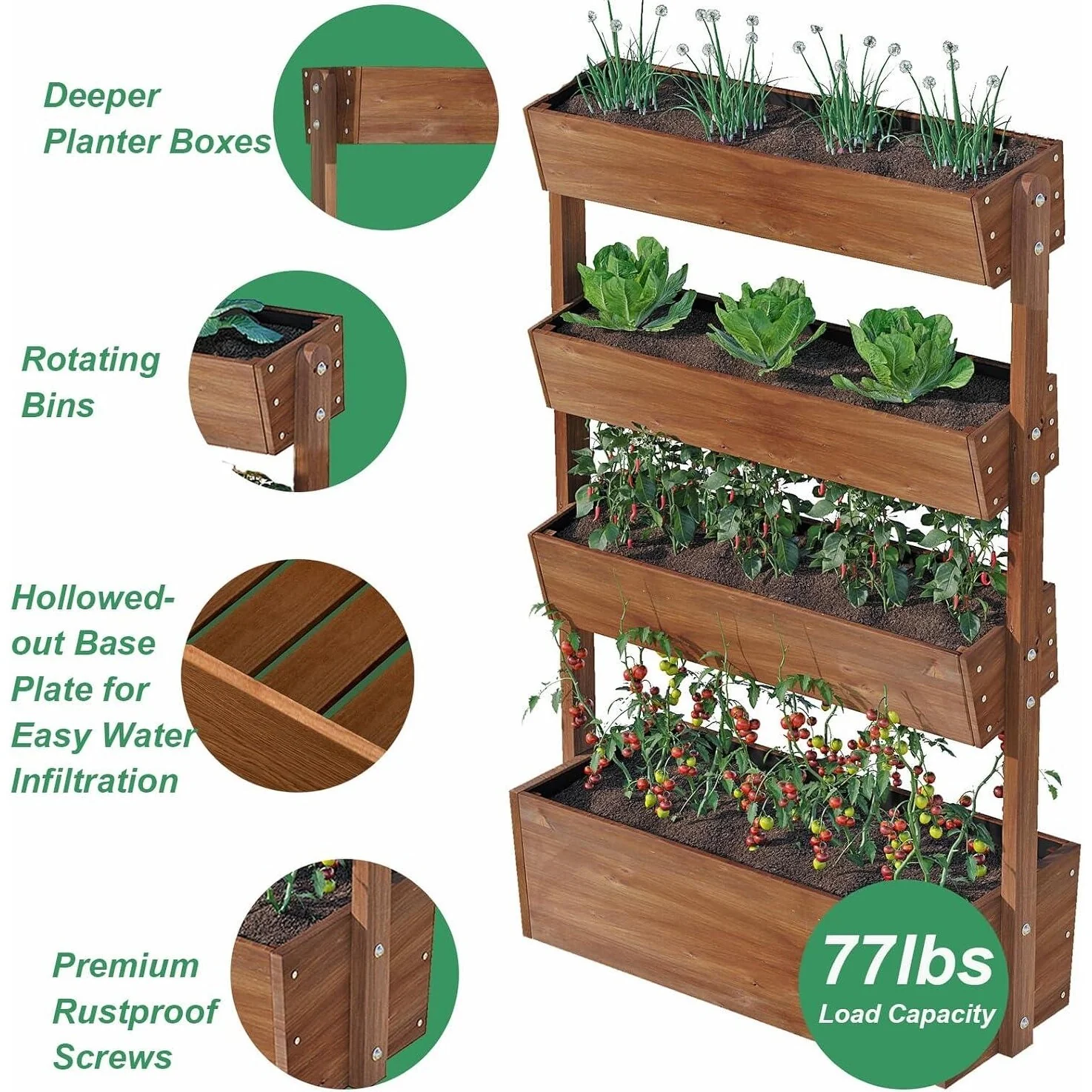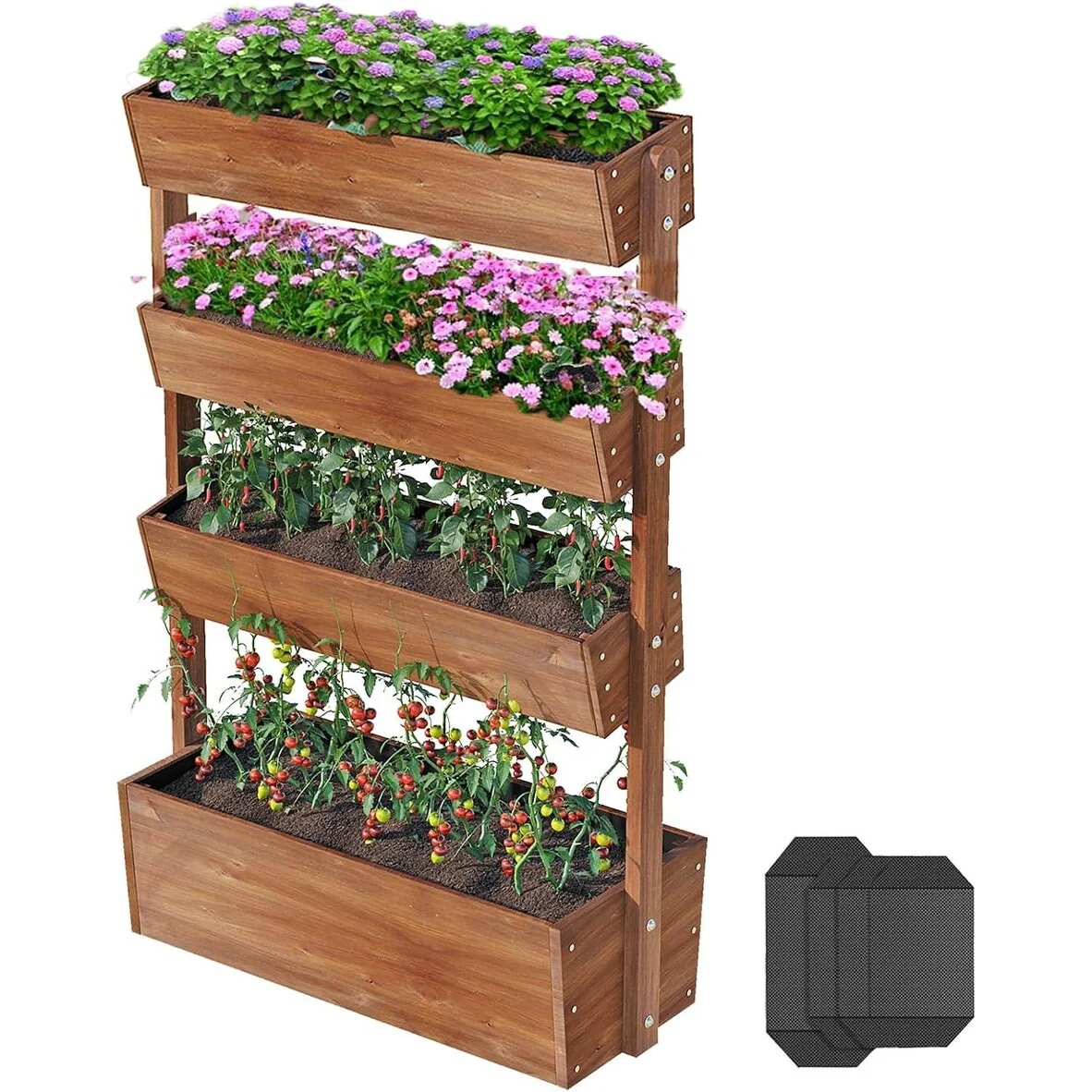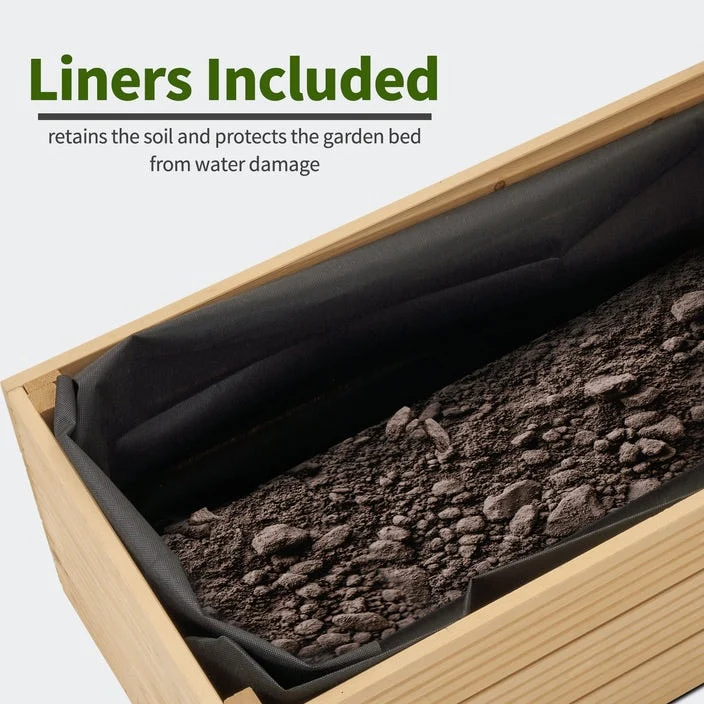 4 Tier Raised Garden Bed , Outdoor Wood Elevated Planter Box, w/Liner - 33.7''x17.7''x55.1''