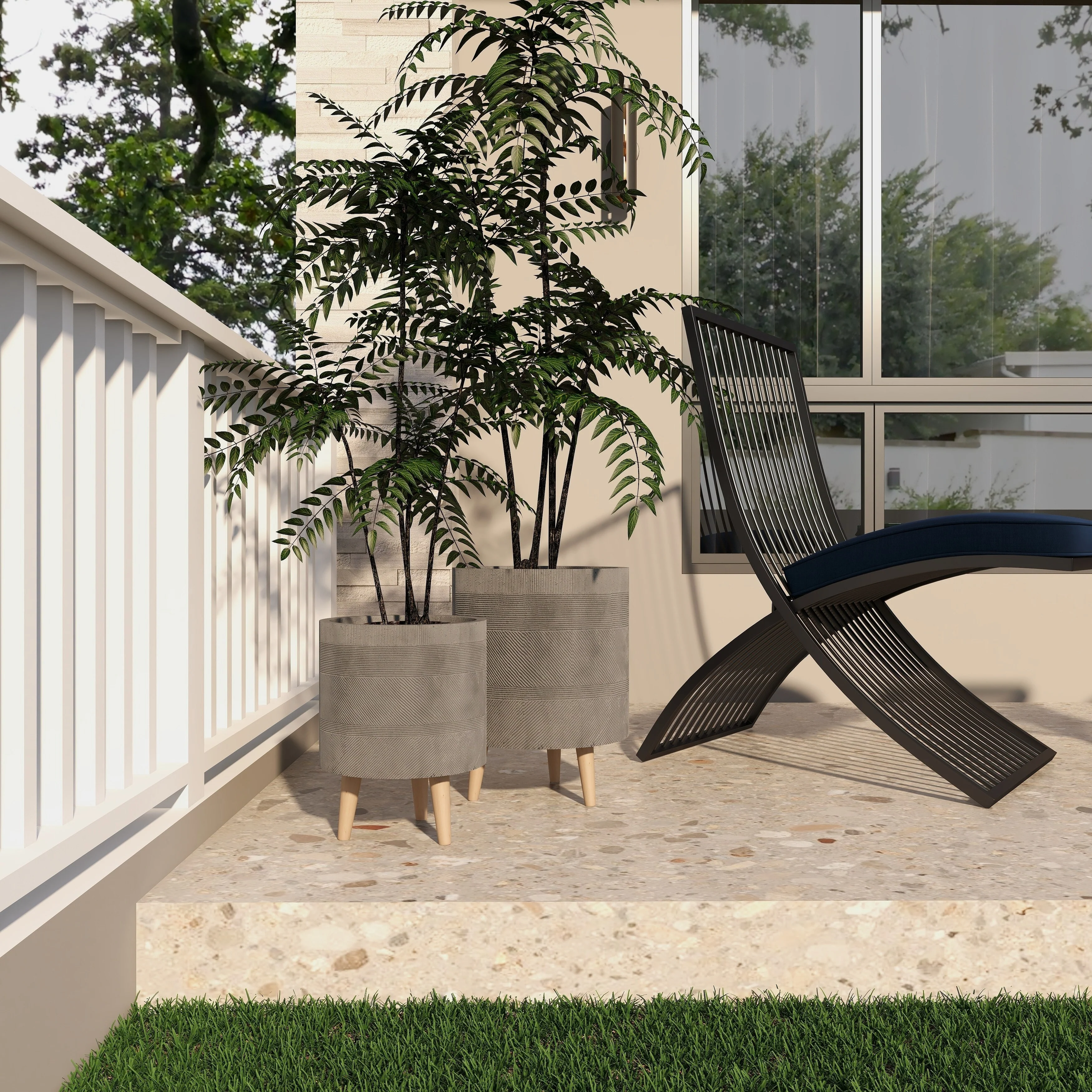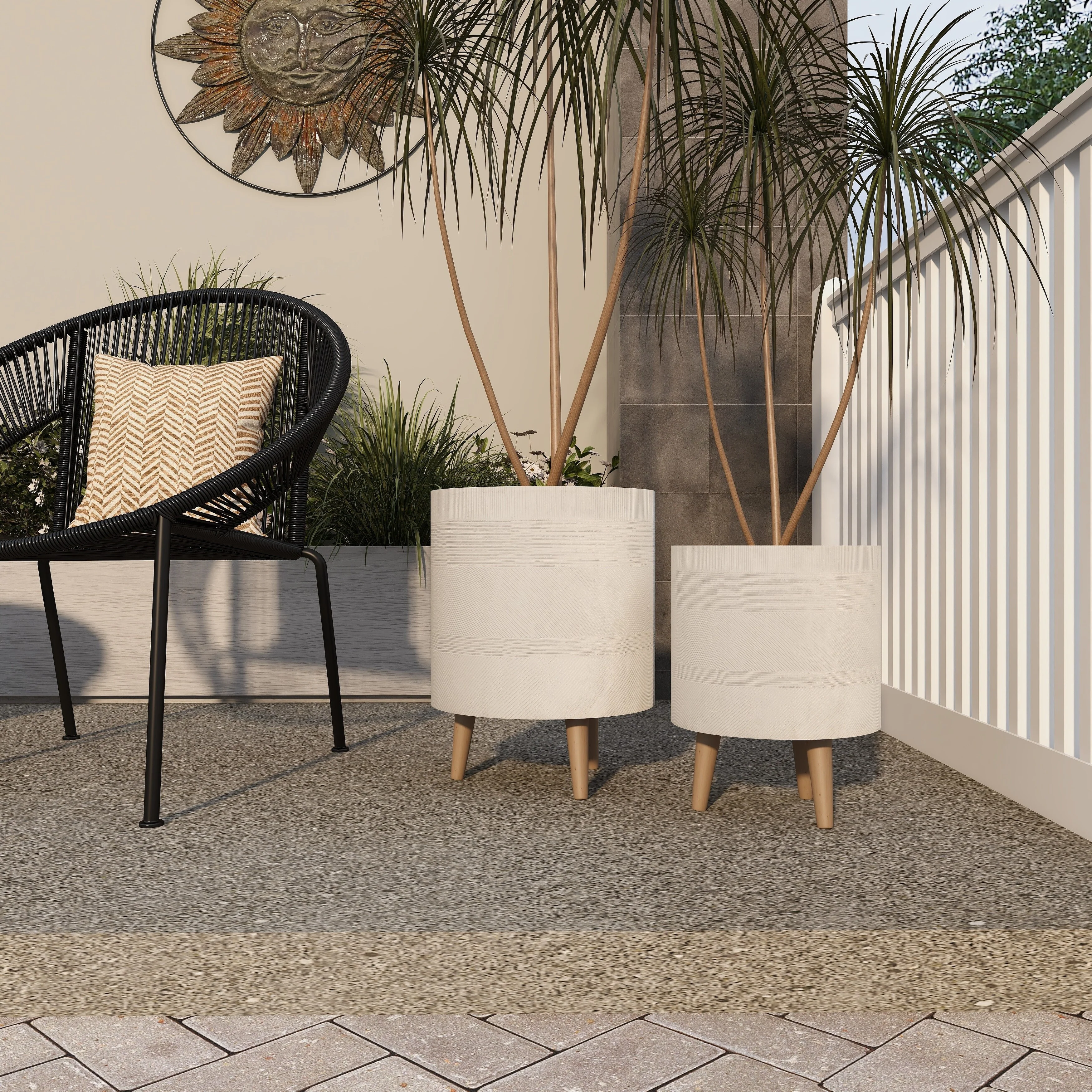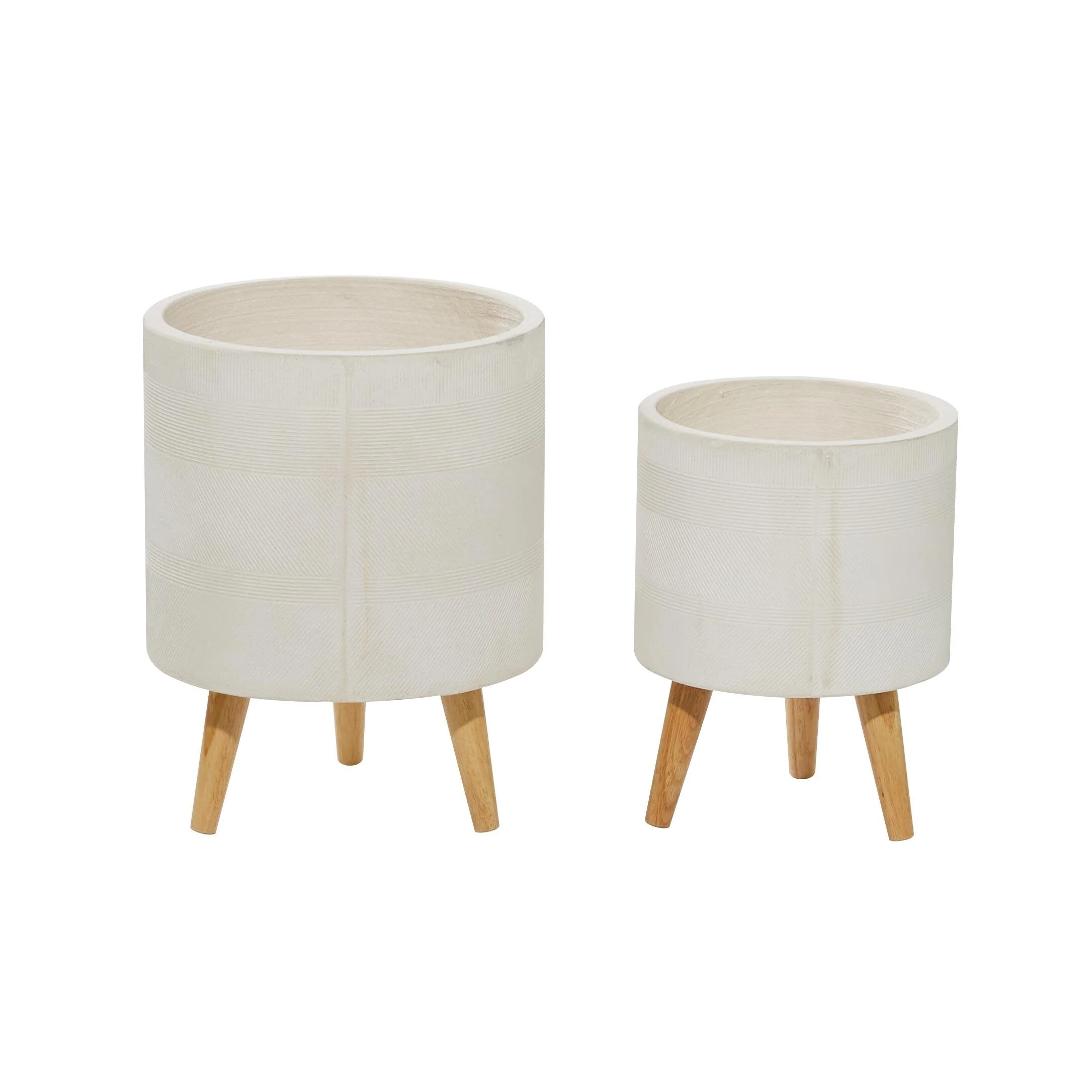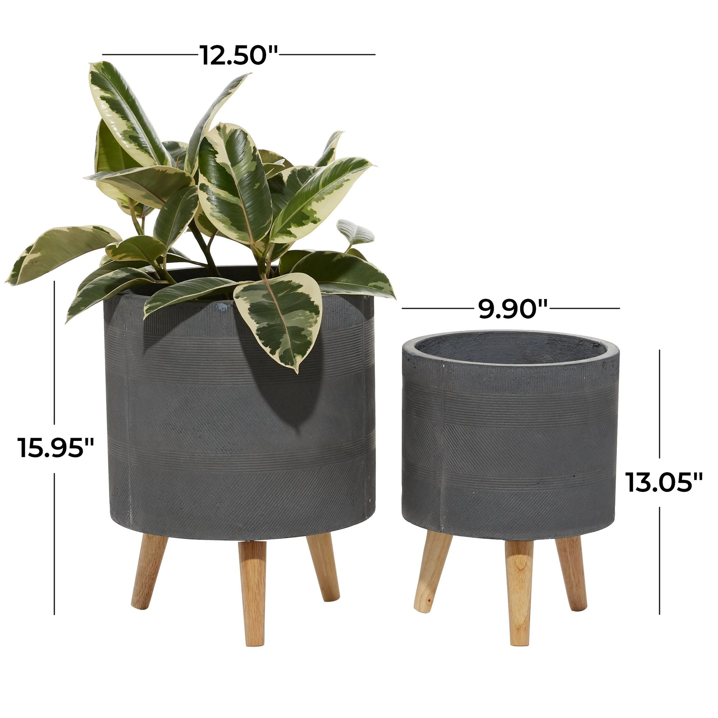 Magnesium Oxide Indoor Outdoor Planter with Wood Tripod Legs - Set of 2 White or Dark Gray - Roche River Decor