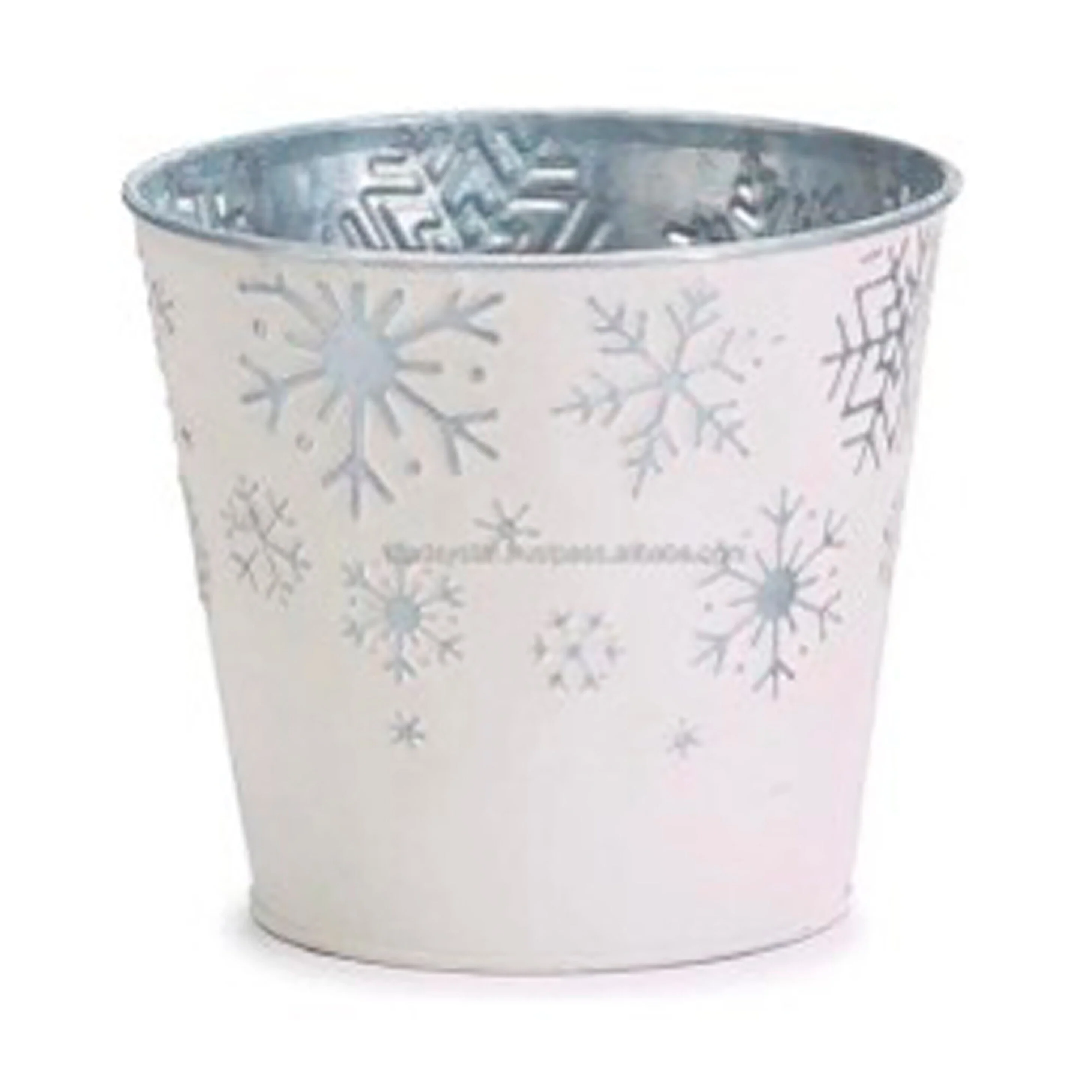 White Metal Galvanized Christmas Planter with Snowflakes, 10" Height, 12" Width, Set of 2