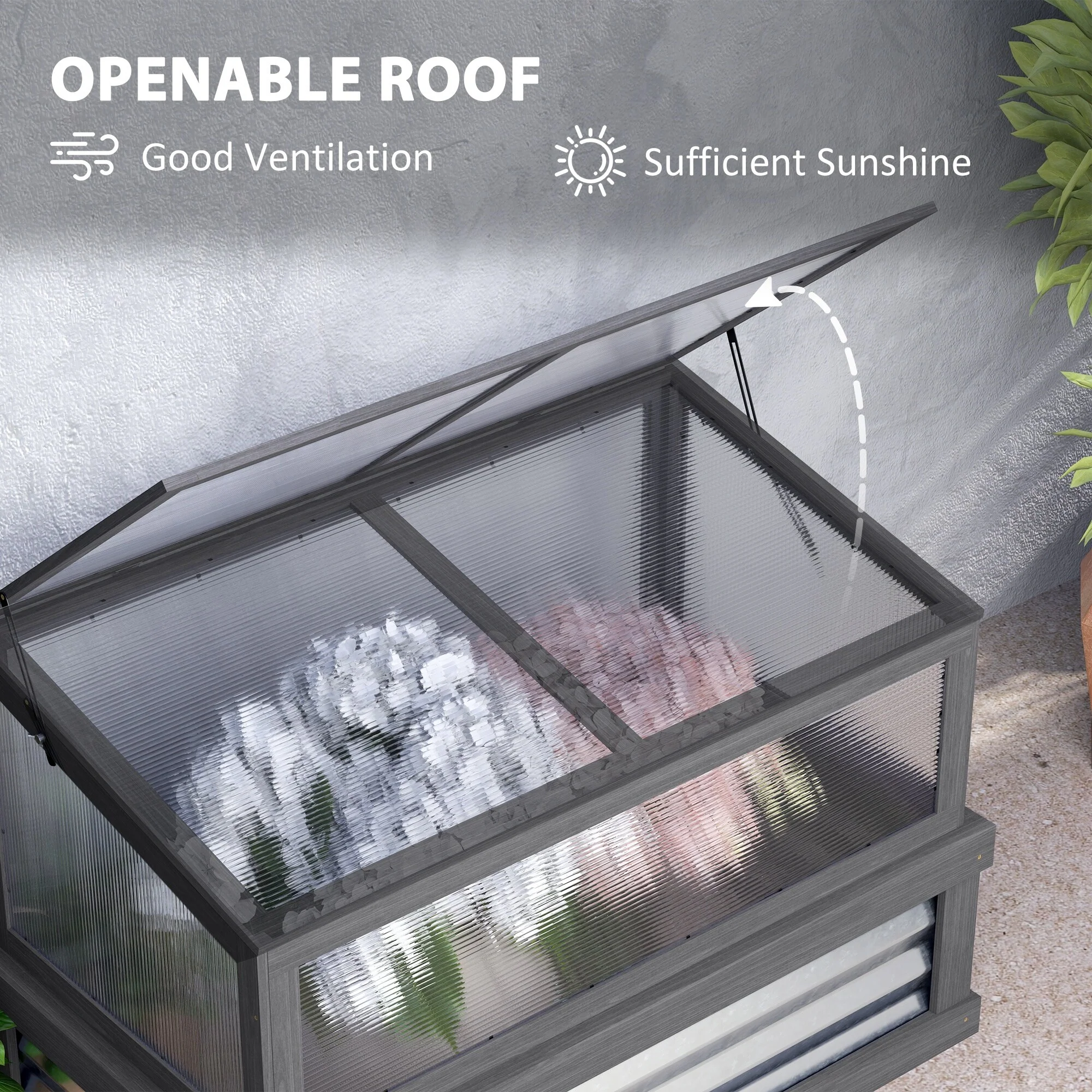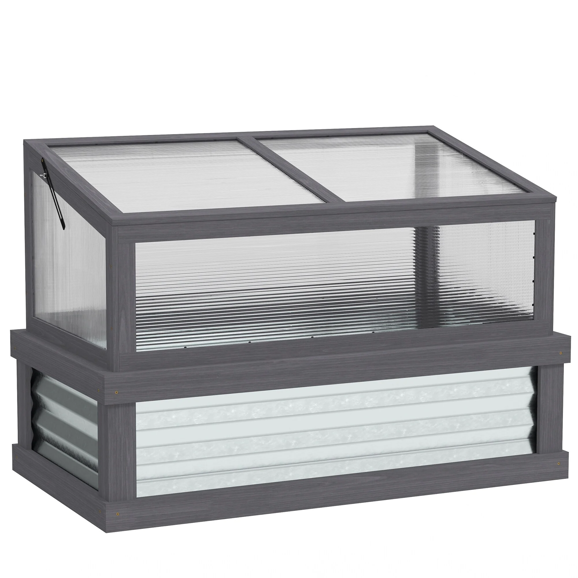 Outsunny Raised Garden Bed with Polycarbonate Greenhouse, Lean-to Garden Wooden Cold Frame Greenhouse