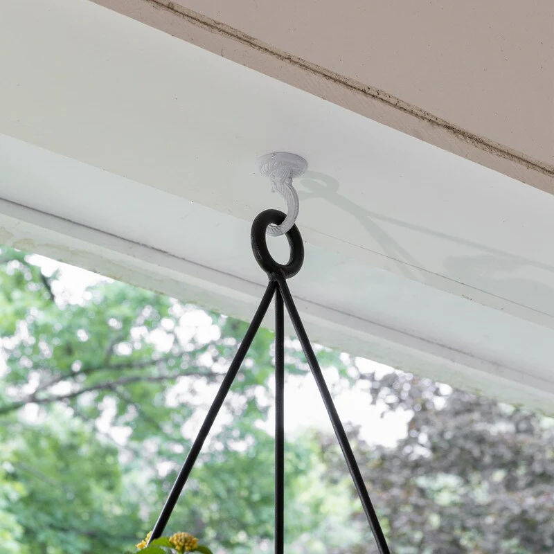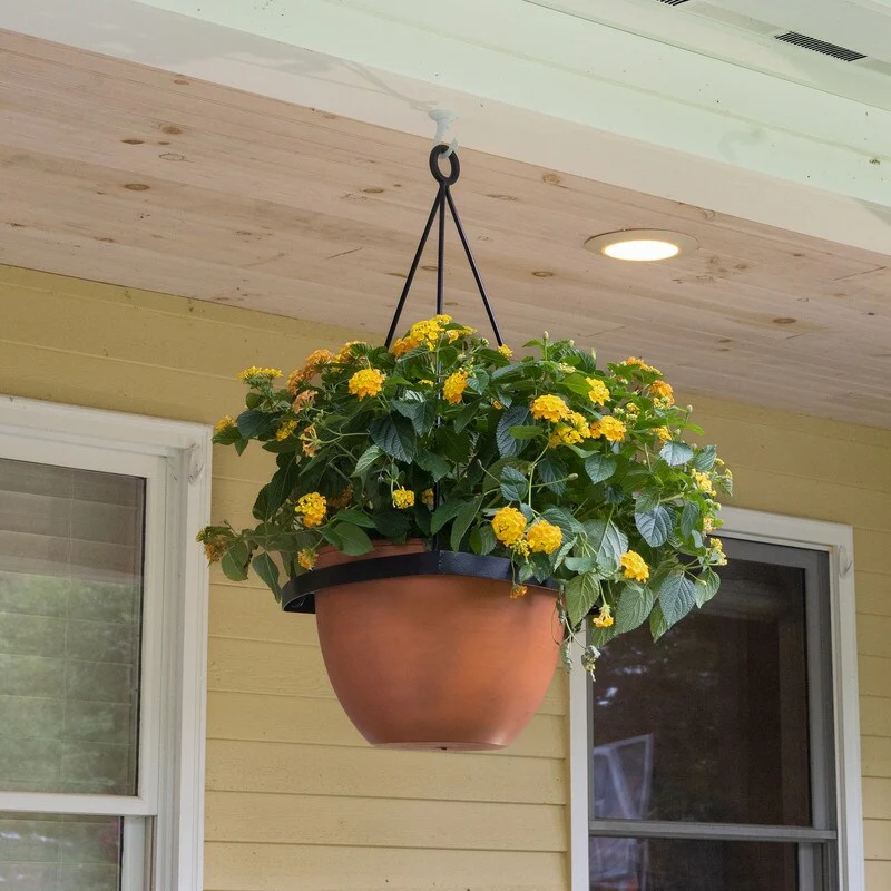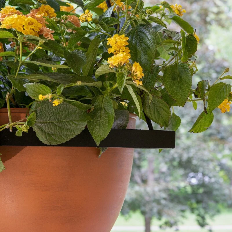 Achla Designs 28"H Black Wrought Iron Lina Hanging Planter w/ Burnt Sienna Galvanized Steel Pot