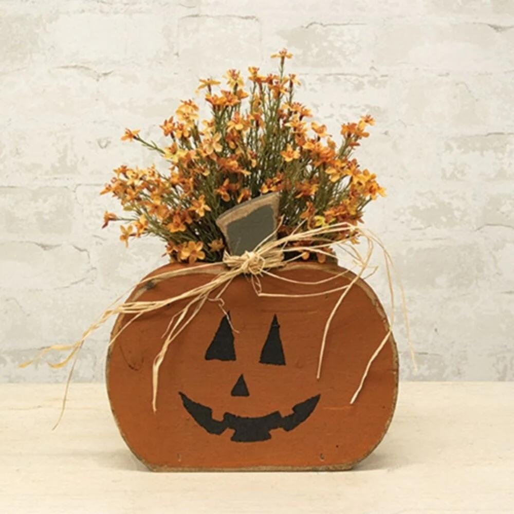 Rustic Wood Jack O Lantern Planter - 9.75"H - Multi