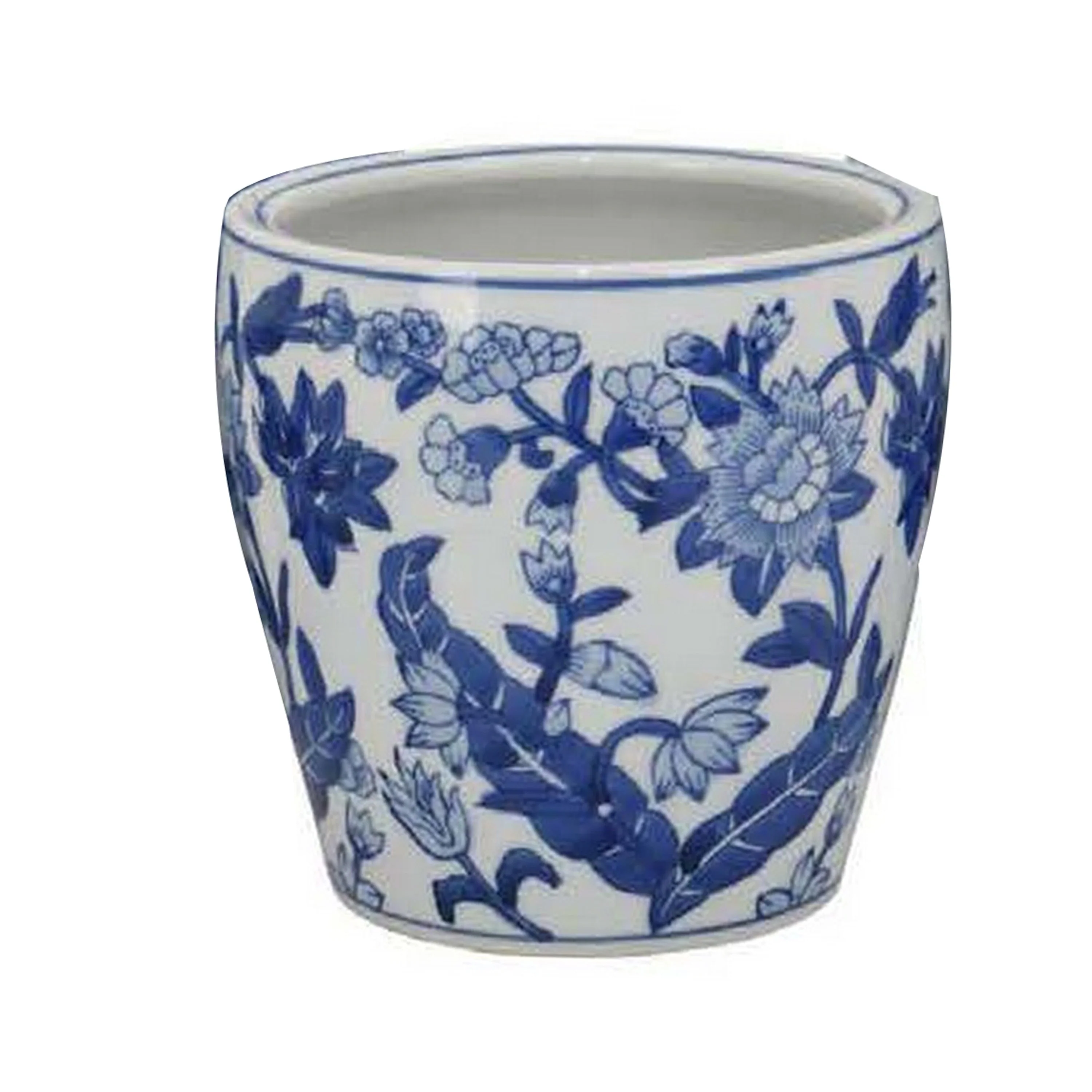 Kerry Accent Planter Pot Set of 4, Blue Floral Pottery, White Ceramic