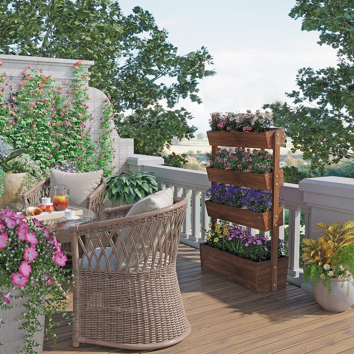 MCombo 2 Tier Corner Raised Garden Bed, Solid Wood 0213 - medium
